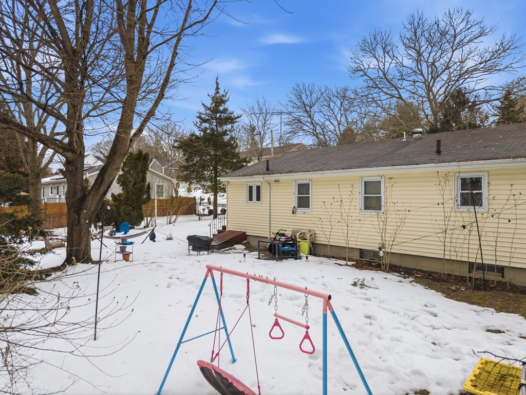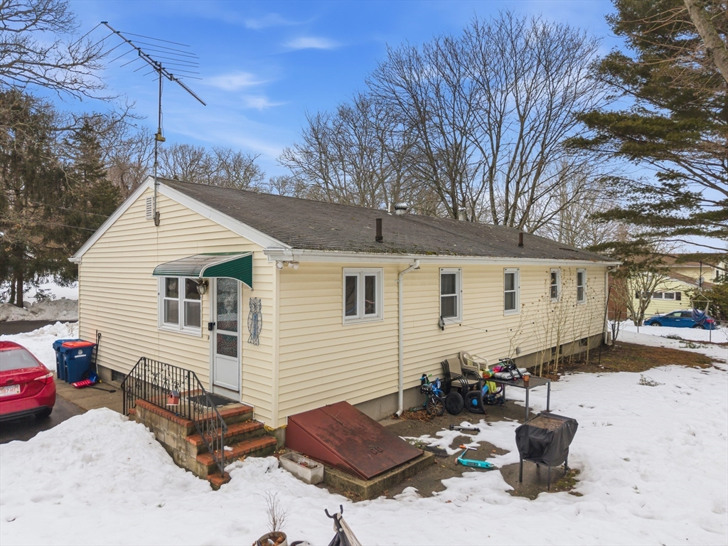 Enjoy the ease of single-level living in this well-located 3-bedroom, 1.5-bath ranch situated on a residential street. This home offers a comfortable layout with hardwood floors in the bedrooms and dining room, and a carpeted living room featuring a striking stone fireplace that creates a warm focal point for the space. The spacious kitchen and dining area provide plenty of room for everyday living and gatherings. Outside, the property features a large driveway with parking for up to six vehicles. In addition to the main house lot, the sale includes two additional lots located directly behind the home, creating a combined 24,756 sq ft of land (approximately 0.57 acres) offering added privacy and extended outdoor space. The unfinished basement provides excellent potential for future expansion, storage, or additional living area. A rare opportunity to own a single-level home with a generous amount of land and long-term flexibility.
