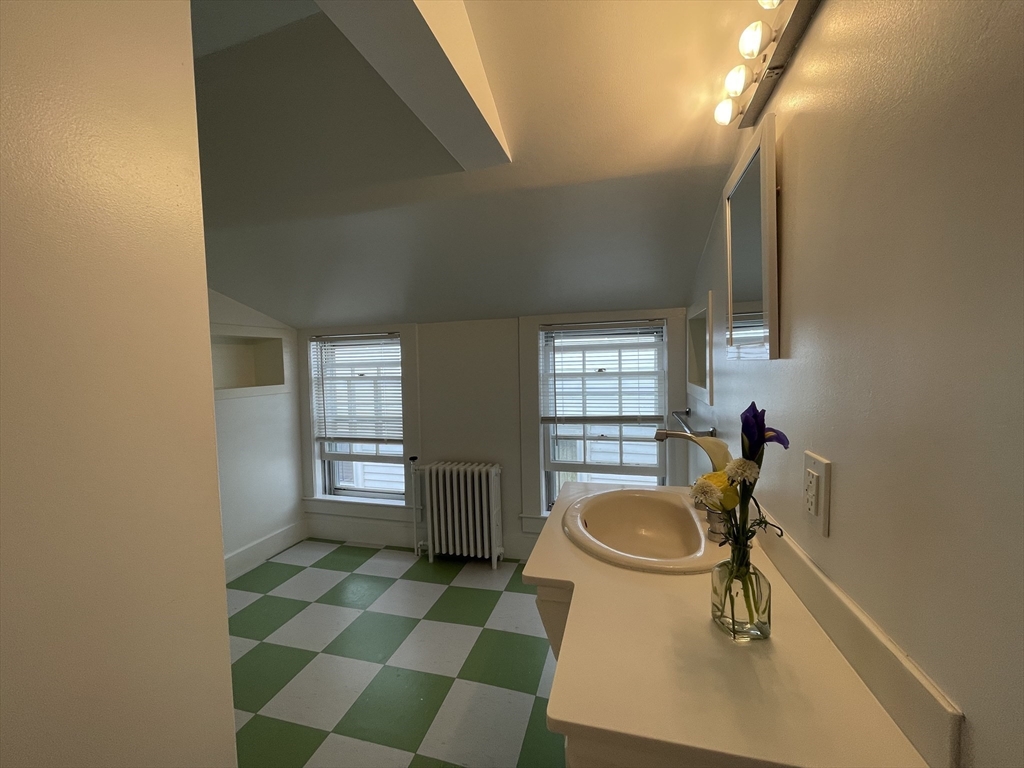 Set in town above Flores Mantilla flower shop, & across the street from the Lee Mansion & the gardens, this 1,010 sq. ft. One bedroom, one bath, with an office & in unit laundry is an ideal location for those people that like to be in the heart of it all. 164 Washington St is close to shops, restaurants, parks, Boston Yacht Club, & Marblehead Harbor. This second floor walk up has a generous sized living room w/dining area in the front of the building. There is laundry off of the Eat in Kitchen in the back of the house with views of roof tops, and in the warmer months, some of Marblehead's charming gardens. The third floor has a primary bedroom with views of the Lee Mansion garden as well as spires from some of the churches, roof tops, and down Washington Street. Also on the third floor is the full bath with a tub and shower, and an office. The owners are also providing a rented parking space around the corner at the Philanthropic Masonic Temple. Application fee tenant responsibility.