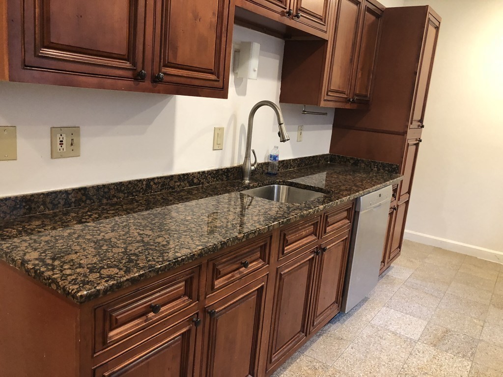 FOR RENT - 3 bedrooms, 2 baths located near Lawrence School, Longwood Medical and train to downtown Boston. Spacious open floor plan with living room and dining room, sprawling chef's kitchen with granite countertops and stainless steel appliances, wood floors throughout, recessed lights throughout, in unit washer/dryer and central air conditioning. South facing balcony. One outdoor rental parking included. Storage in basement. Sorry no smoking and no pets, Available July 1