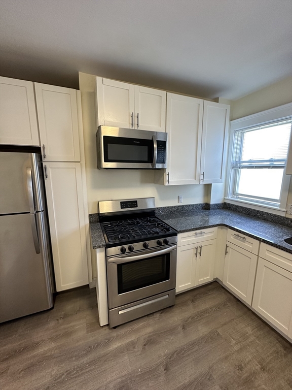 Large Updated 3 bedroom 1.5 bath unit in Everett Ma. Updated kitchen with lots of cabinets, granite countertops, stainless steel appliances.In unit laundry washer and dryer. Hardwood floors throughout, private rear porch. Gas heating with high efficiency heating system. Pets negotiable. Easy to show