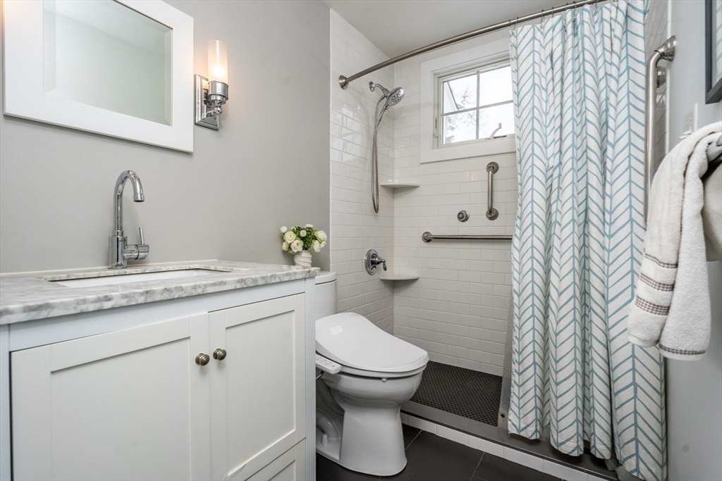 Thoughfully appointed, artfully designed. 121 Eileen Street is the renovated northside Cape you've been searching for. Just a short distance to Mayflower Beach or the boardwalk at Gray's, this Yarmouth Port property is an ideal spot to enjoy all four seasons. High-quality finishes throughout, including quartz countertops, hardwood floors and an inviting bluestone patio out back for spending summer evenings with friends. Open-concept kitchen and dining area, complete with wood burning fireplace. This five bedroom, two and a half bath home makes one floor living possible with its stunning primary bedroom and ensuite bath, featuring a newly designed shower. First floor laundry and an additional first floor bedroom serves as a nearby study. Three bedrooms and full bath upstairs. The lower level is not to be missed, offering space to expand your business or design studio. Built-in shelving and custom cabinetry for organized storage. Don't let this one get away!