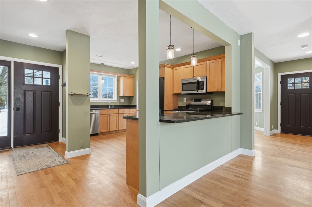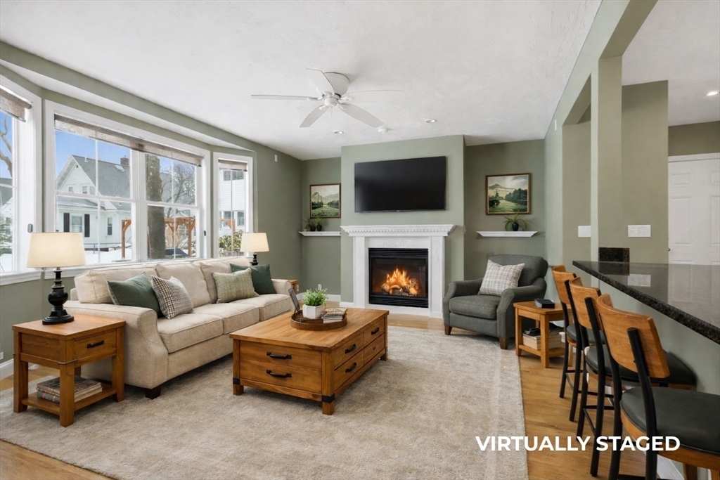 Welcome to 5 Reynolds Avenue, a well-maintained home located on a residential street just minutes from downtown Natick. Featuring freshly refinished hardwood floors and bright new paint, this home offers both comfort and flexibility for everyday living. The kitchen showcases warm wood cabinetry and a breakfast peninsula overlooking the living space, complete with an gas fireplace for cozy evenings. Enjoy meals in the designated dining room filled with natural light from the charming bay window. The second floor includes two spacious bedrooms, a primary suite, additional full bath, and convenient second-floor laundry. The expansive walk-up third floor provides incredible bonus space perfect for a home office, guest area, or playroom. Central air, a one-car garage, and a five-car driveway complete the package. Close to shopping, dining, and commuter routes… Come see all this home has to offer!Attached structure but fully independent (no shared utilities or expenses).