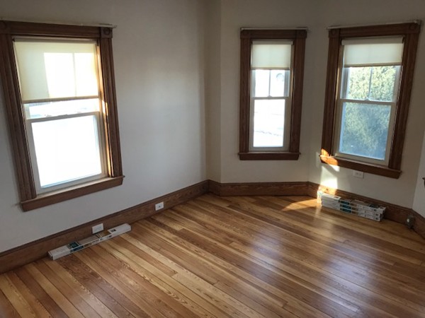 RENOVATED 1st FLOOR 3 BEDROOM WITH IN-UNIT LAUNDRY!! Conveniently located across from the COMMUTER RAIL with easy access to all major routes. This unit has been renovated. Hardwood floors, updated bath, updated appliances, washer dryer in the unit, 3 off street parking spaces, large master bedroom with MASTER BATH, formal dining room leads into large living room, all new blinds, and updated fixtures!! GAS COOKING AND GAS HEAT. UNIT IS BEING FRESHLY PAINTED THROUGHOUT AND NEW FLOORING IN MASTER. Direct access storage in the basement.