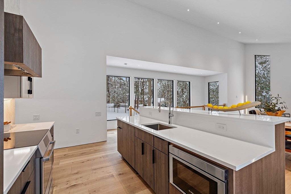 A NEW CONSTRUCTION HOME that could be featured in DWELL MAGAZINE! THIS REFRESHING PIECE OF ARCHITECTURE offers A ONE-OF-A-KIND FLOOR PLAN WITH SOARING CEILINGS, OVERSIZED WINDOWS & LIGHT FILLED SPACES! Attached 2 car garage offers an ENORMOUS GLASS ENTRY DOOR & could serve as an ART STUDIO or CREATIVE SPACE! Upon entry a DRAMATIC WHITE OAK STAIRCASE GLOWS WITH NATURAL LIGHT FROM THE WALLS OF GLASS ABOVE. The LOBBY OFFERS LIGHT STONE FLOORING, above average ceiling height & serves as a MUSEUM-LIKE ENTRY. This level features a finished living area that could serve as a MEDIA OR GUEST ROOM with a full bath. The main floor is a DRAMATIC OPEN LOFT SPACE WITH KITCHEN, DINING & FAMILY ROOM, a half bath & a SPECTACULAR PRIMARY SUITE WITH EN-SUITE BATH. LIVE IN AN INSPIRING PIECE OF ART THAT FEELS LIKE NO OTHER HOME! ENERGY EFFICIENT & SOLAR READY. DEEDED ACCESS TO WHITE POND! Enjoy year round rights to go swimming, kayaking & cold plunging in one of CONCORD'S BEST KEPT SECRETS!