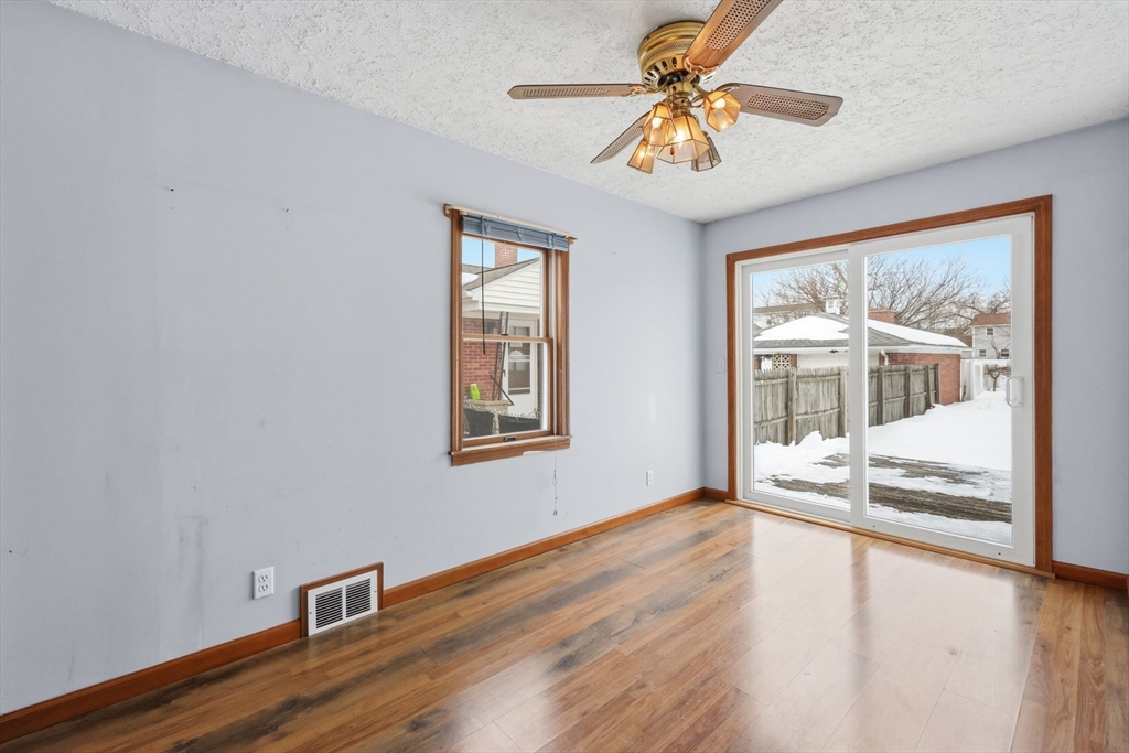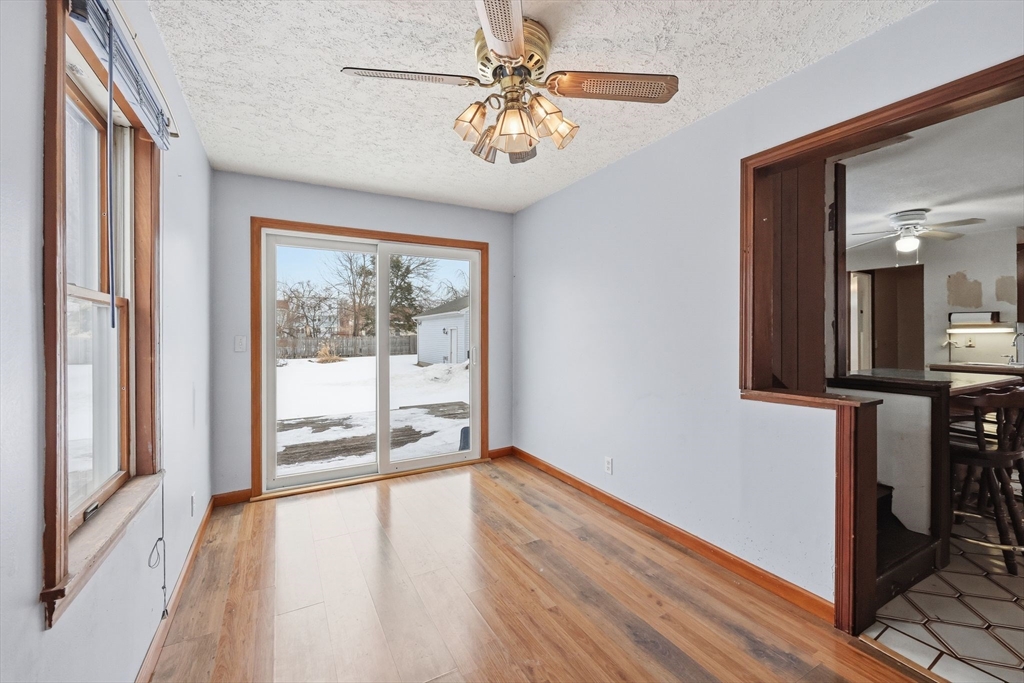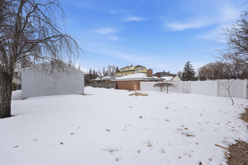 Tucked into the desirable Aldenville section of Chicopee, this 3-bedroom home offers comfort, convenience, and thoughtful updates. Centrally located with quick access to major highways, shopping, dining, and everyday amenities, the location makes commuting and daily errands a breeze.The first floor features an open kitchen and living room layout that creates a welcoming space for relaxing or entertaining. Enjoy the added convenience of first-floor washer hookup and a rear slider that leads to a deck overlooking the fully fenced backyard—perfect for outdoor gatherings, pets, or play. Recent updates include an oversized 1.5-car detached garage built in 2010, updated electrical service and panel, a new oil tank (2022), six Andersen windows installed in 2024 with a transferable warranty, and a new hot water tank in 2025. A coil is already in place for an easy upgrade to central A/C. Move-in ready with key improvements already done—this home blends practicality with everyday