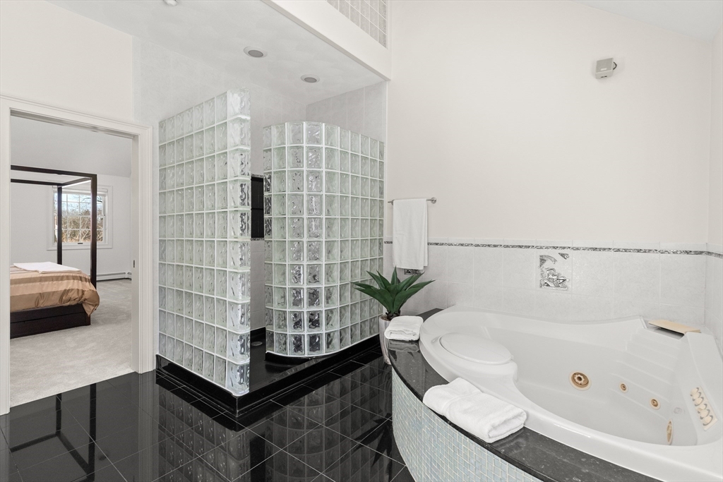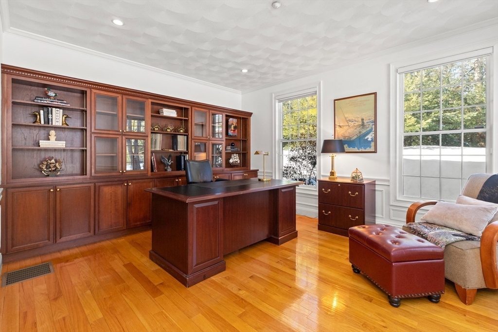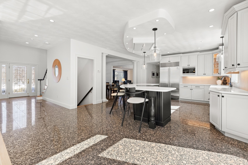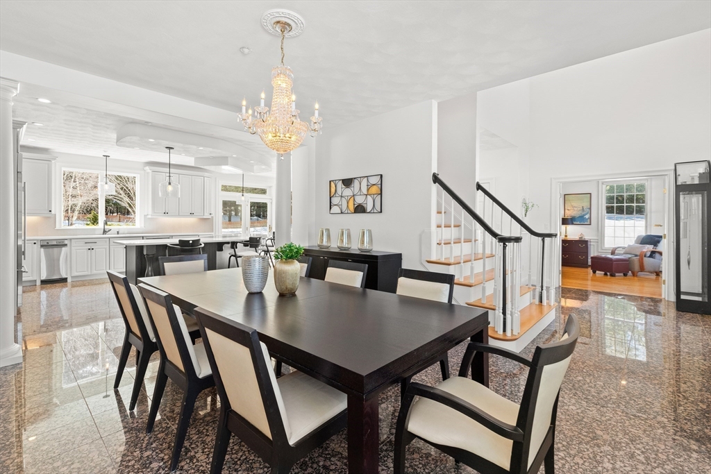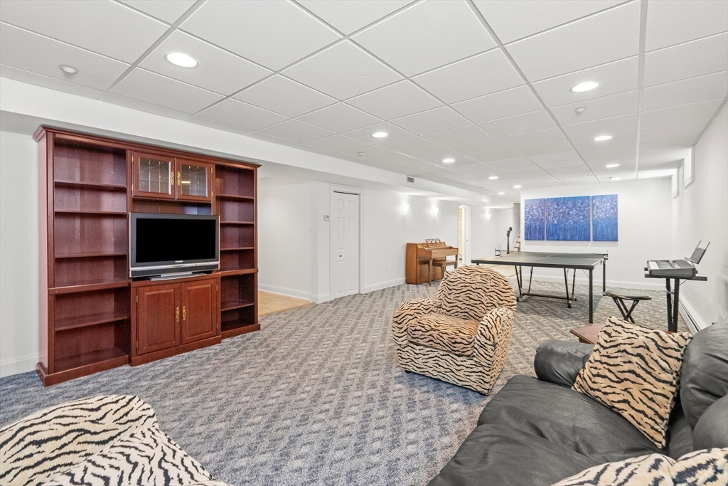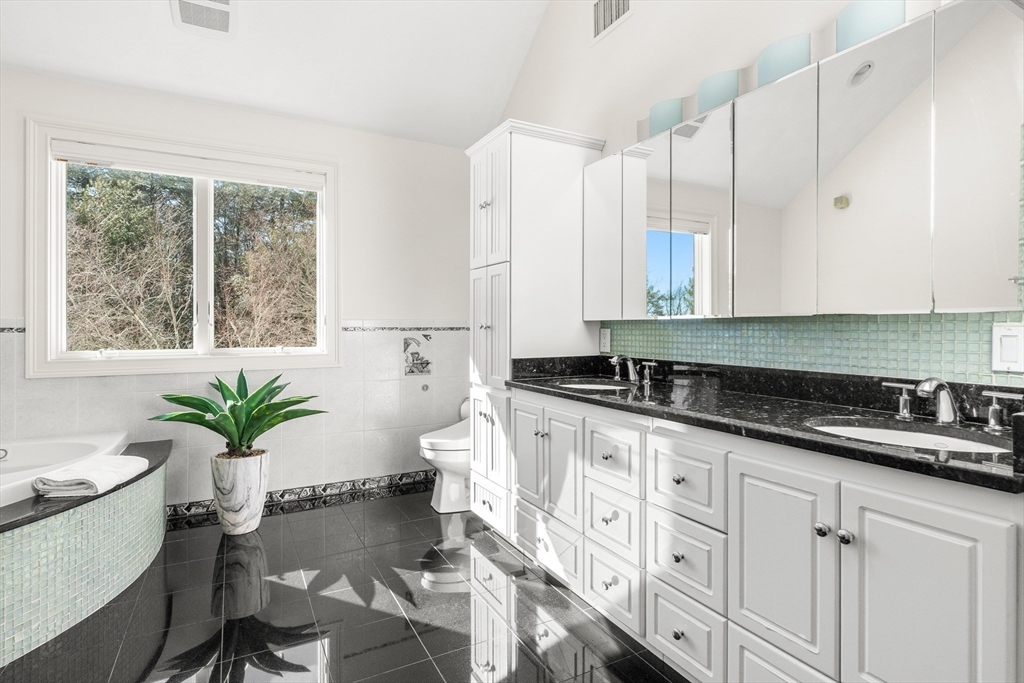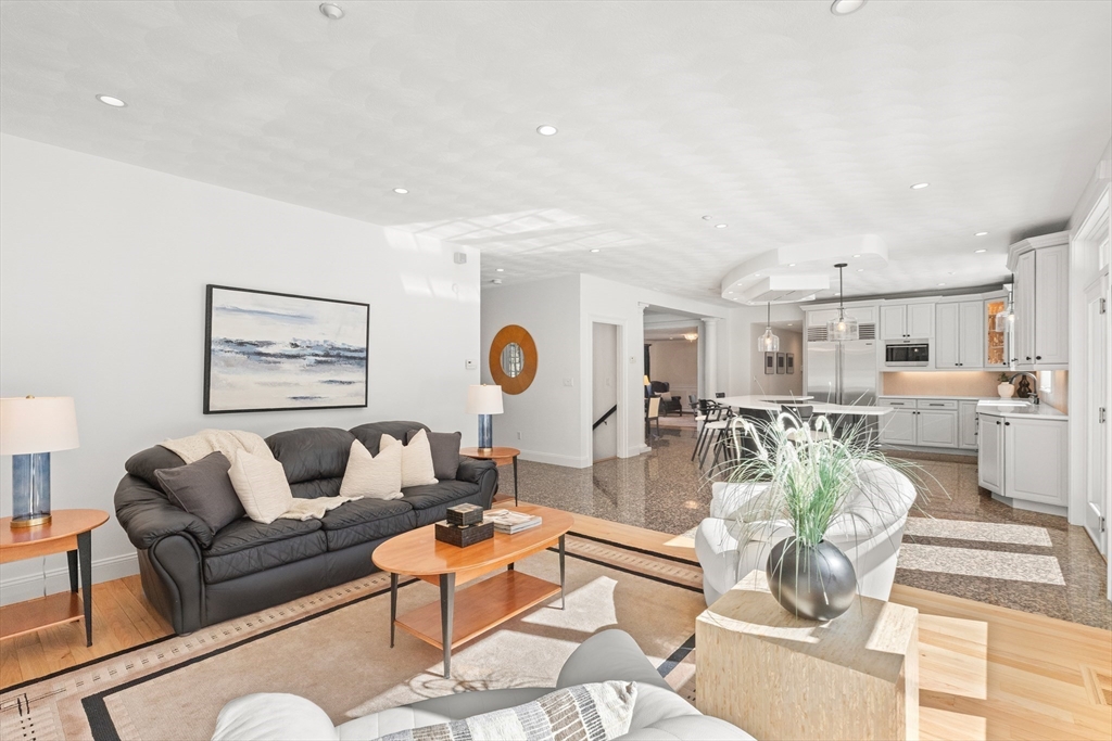 Welcome to your private oasis! This stunning, custom-built Contemporary sits at the end of a private cul-de-sac on the neighborhood's largest lot, perfectly framed by protected conservation land. Step inside to discover a freshly renovated 2024 kitchen boasting high-end appliances, seamlessly flowing into a cozy family room with a fireplace and custom built-ins. Entertain in style in the spacious media room featuring vaulted ceilings and a fireplace, or take the gathering outside to the new deck and spacious stone patio overlooking serene nature. Relax in the expansive primary suite, complete with vaulted ceilings, a gas fireplace, and a large walk-in dressing room. The finished lower level boasts a versatile in-law suite, game room, and exterior access. Enjoy modern peace of mind with new hardwood floors, fresh exterior paint, added insulation, and a heated 3 car garage. Perfectly situated near hiking trails, beaches, Route 128, MBTA, and elite schools (Brookwood, Landmark, Shore).