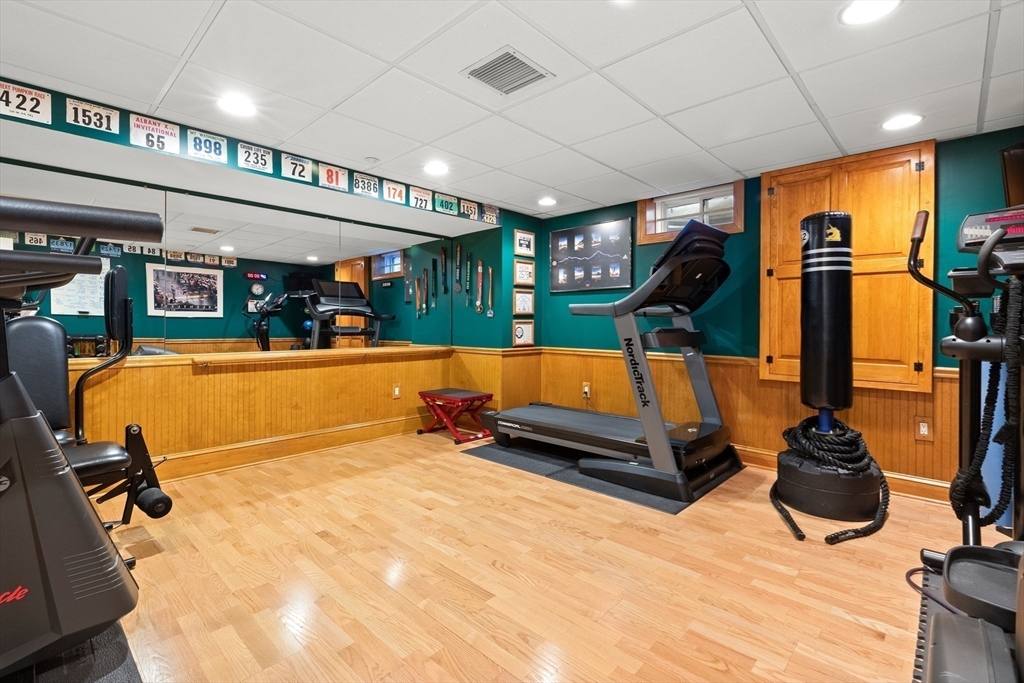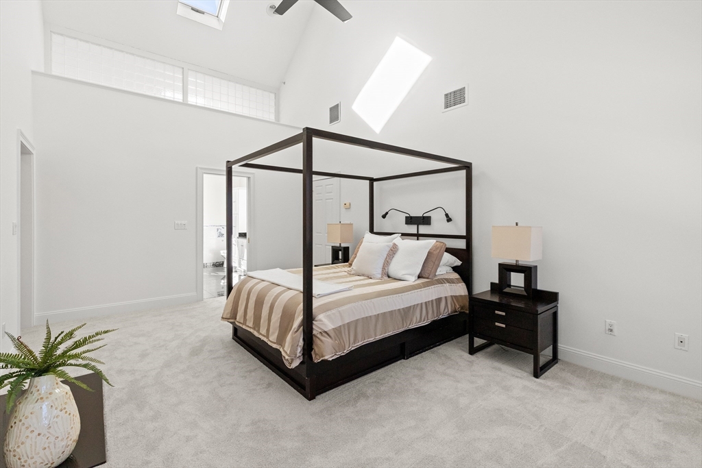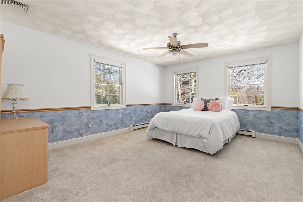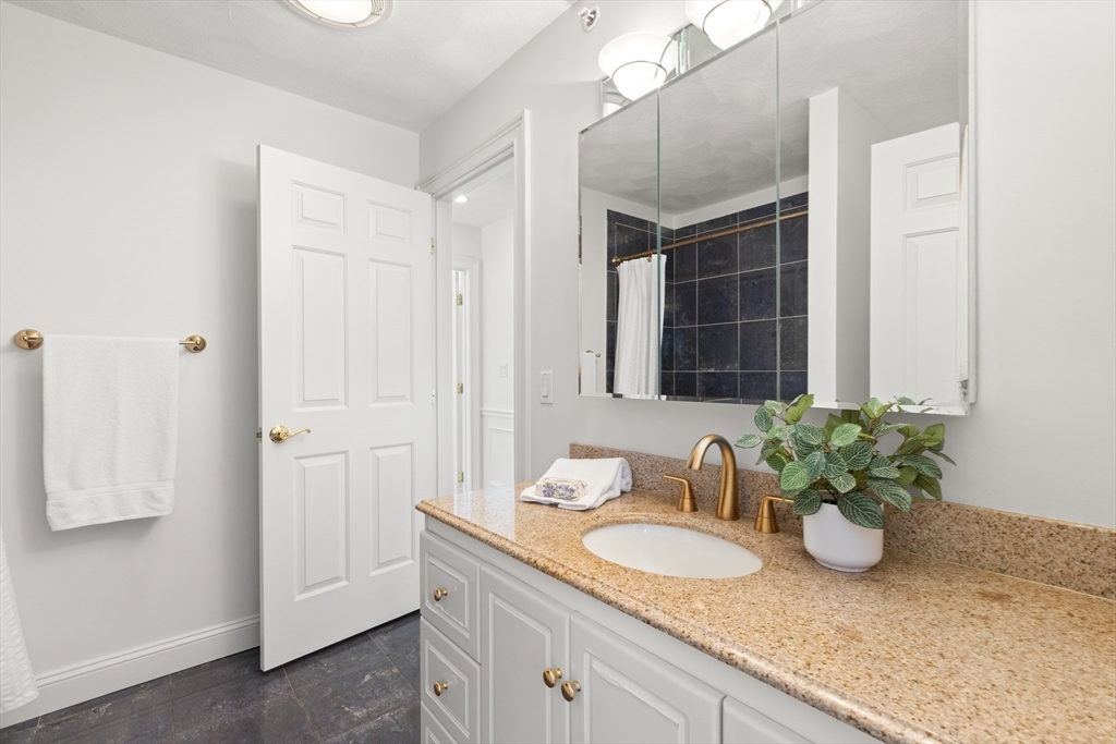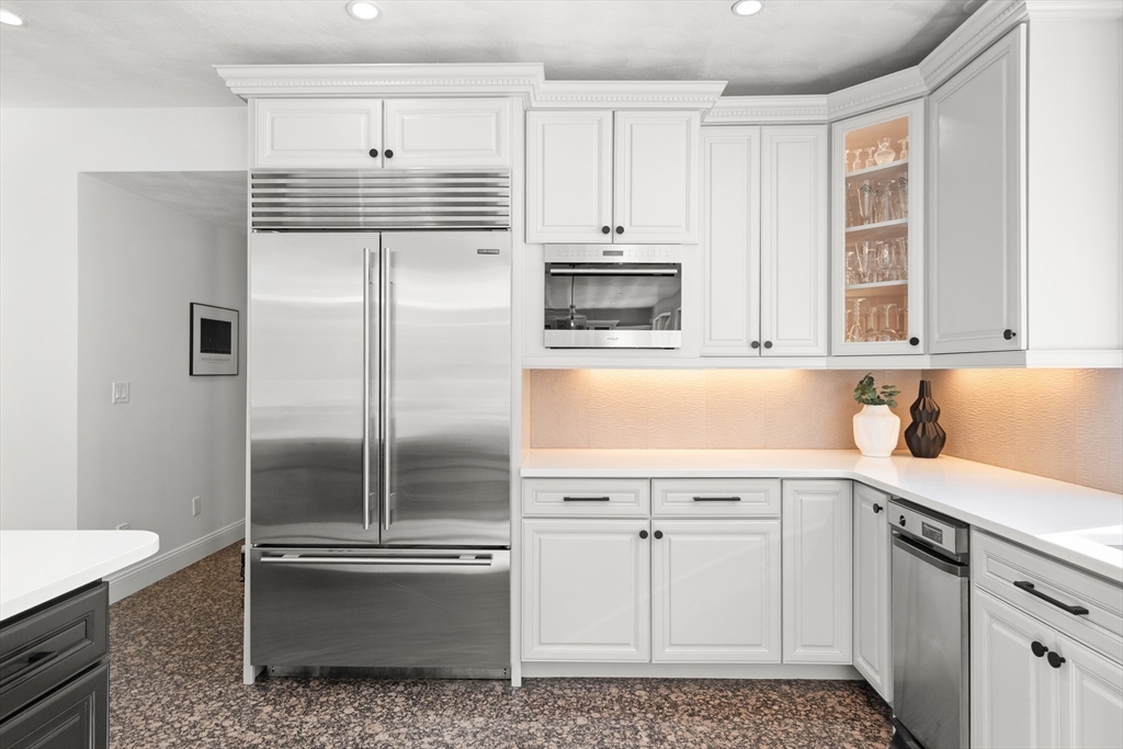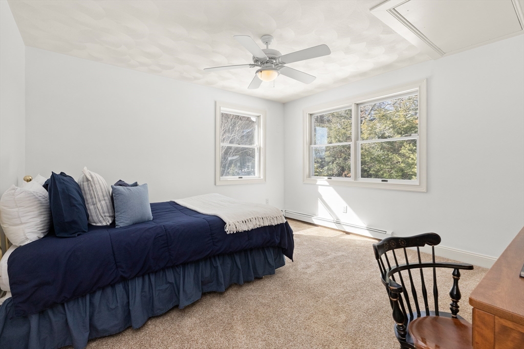 Welcome to your private oasis! This stunning, custom-built Contemporary sits at the end of a private cul-de-sac on the neighborhood's largest lot, perfectly framed by protected conservation land. Step inside to discover a freshly renovated 2024 kitchen boasting high-end appliances, seamlessly flowing into a cozy family room with a fireplace and custom built-ins. Entertain in style in the spacious media room featuring vaulted ceilings and a fireplace, or take the gathering outside to the new deck and spacious stone patio overlooking serene nature. Relax in the expansive primary suite, complete with vaulted ceilings, a gas fireplace, and a large walk-in dressing room. The finished lower level boasts a versatile in-law suite, game room, and exterior access. Enjoy modern peace of mind with new hardwood floors, fresh exterior paint, added insulation, and a heated 3 car garage. Perfectly situated near hiking trails, beaches, Route 128, MBTA, and elite schools (Brookwood, Landmark, Shore).