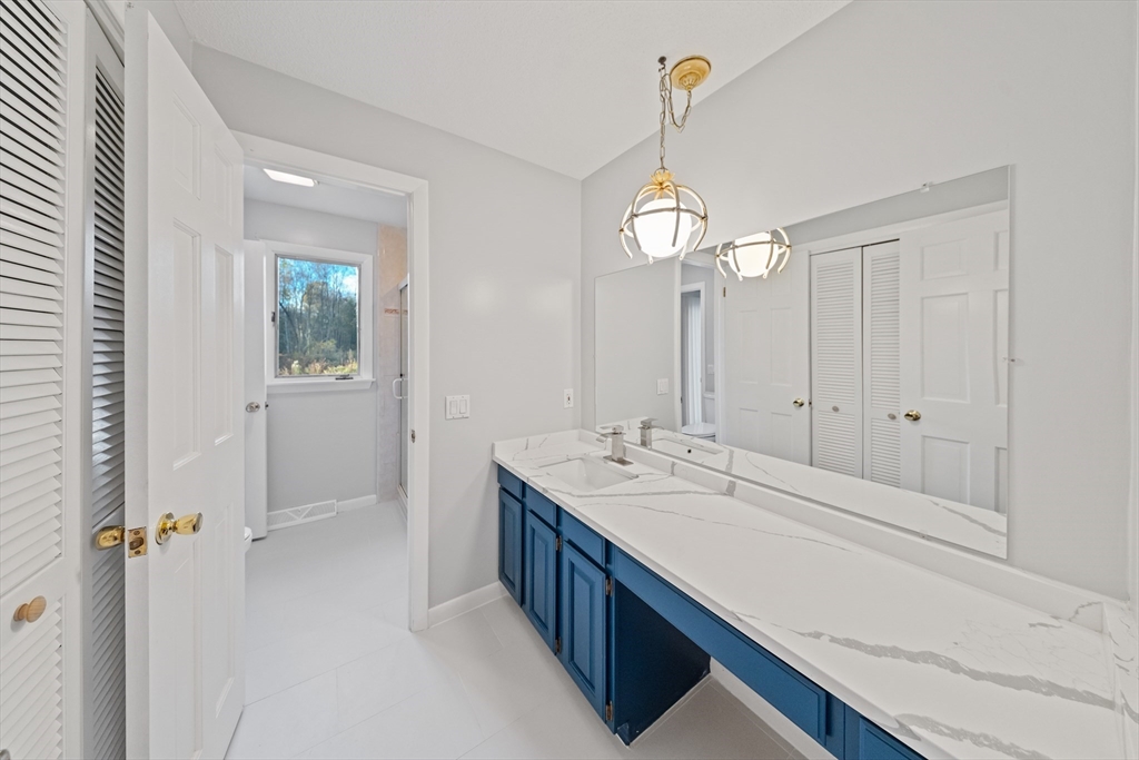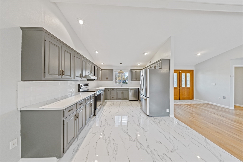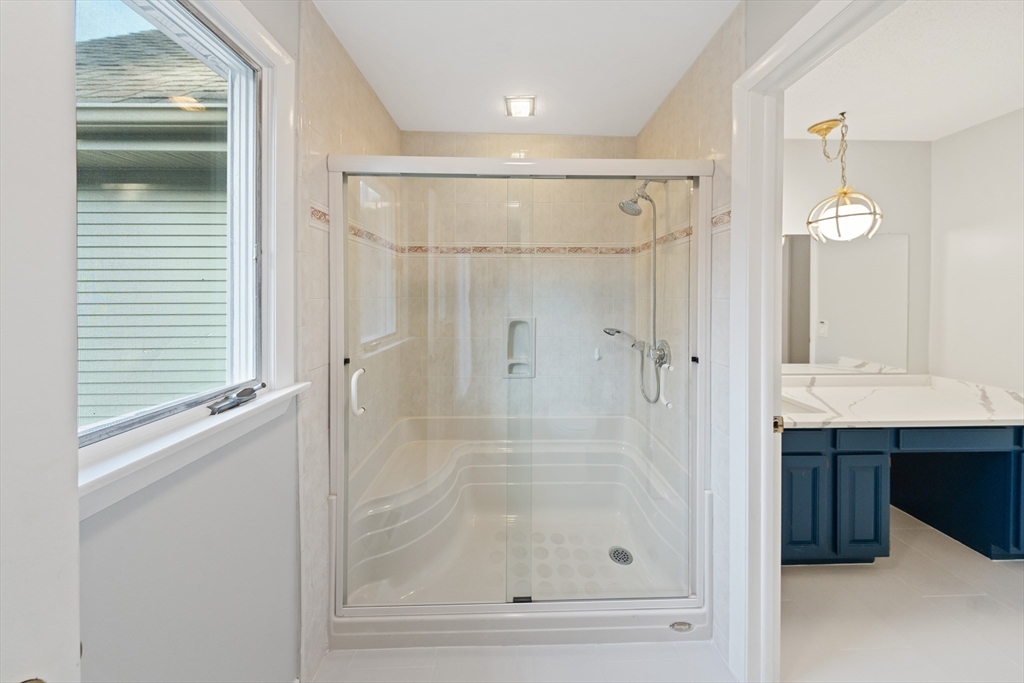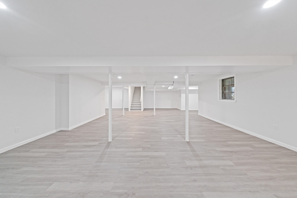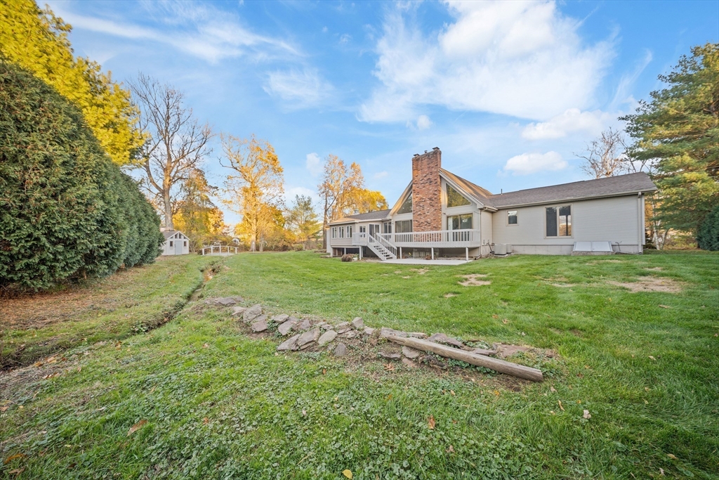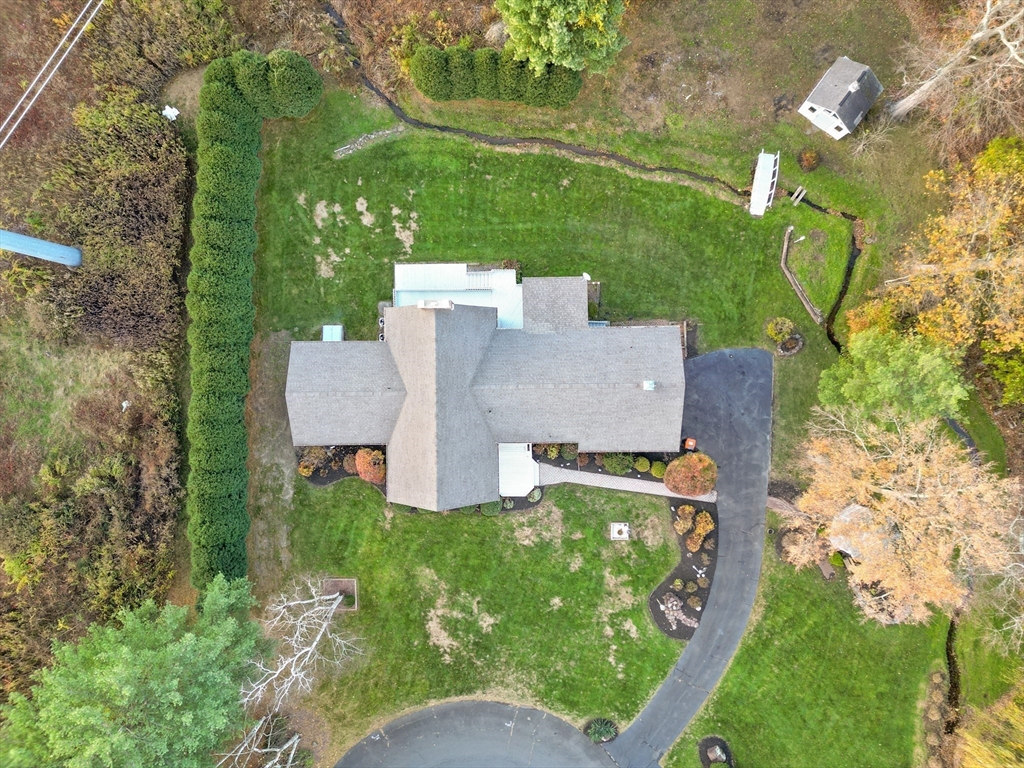Stunning Custom-Built Contemporary Ranch! Set on a private 0.78-acre double lot, this stone-front home offers 3,494 sq. ft. of beautifully designed living space just minutes from Route 57 and Bradley International Airport. The open floor plan features a spacious kitchen with quartz countertops, new stainless steel appliances, and ceramic floors overlooking a serene brook. The sunken living room boasts floor-to-ceiling windows, a wood fireplace, and double sliders to the deck. The primary suite includes a sitting area, walk-in closet, and Jacuzzi shower. Two additional bedrooms share a Jack & Jill bath. The finished basement offers a full bath, and brand-new hardwood floors run throughout. A rare opportunity to own a private, one-of-a-kind home combining comfort, luxury, and natural beauty!