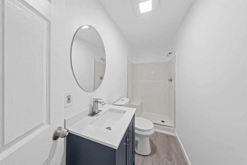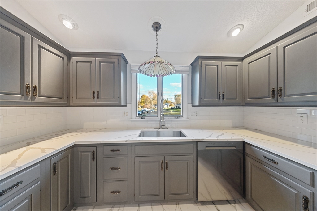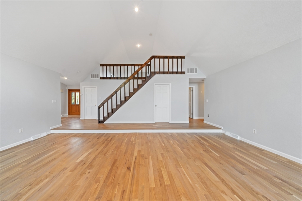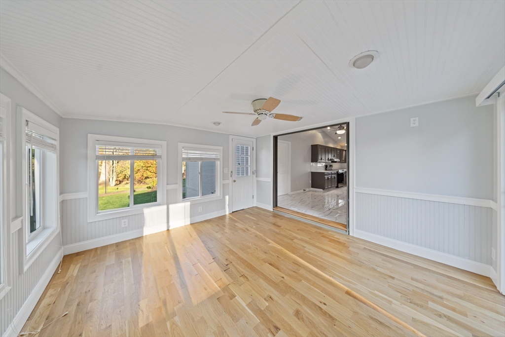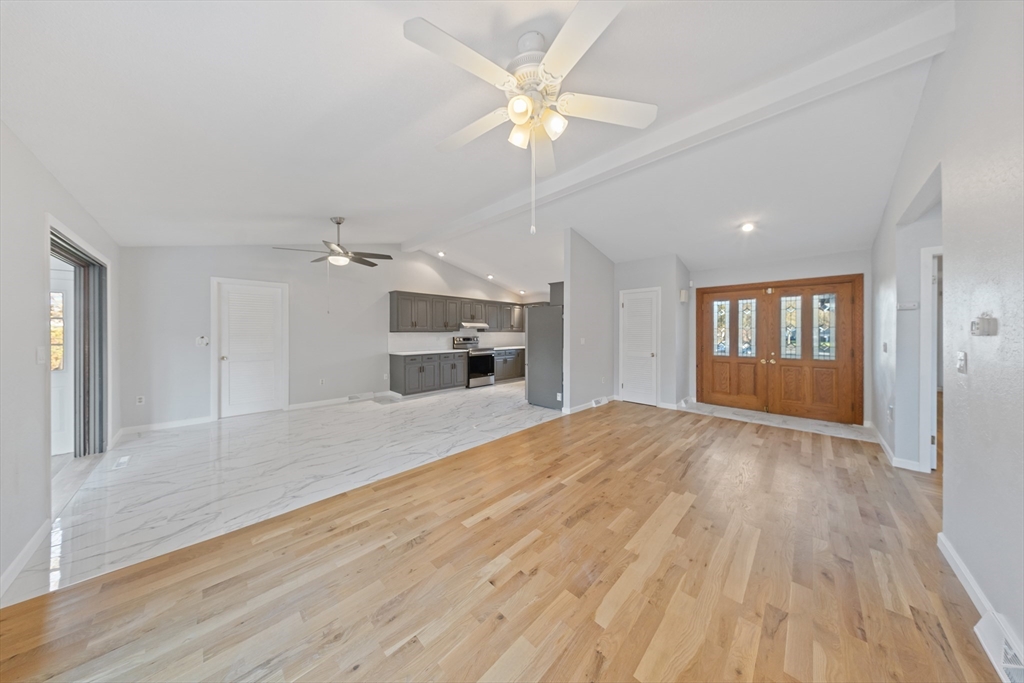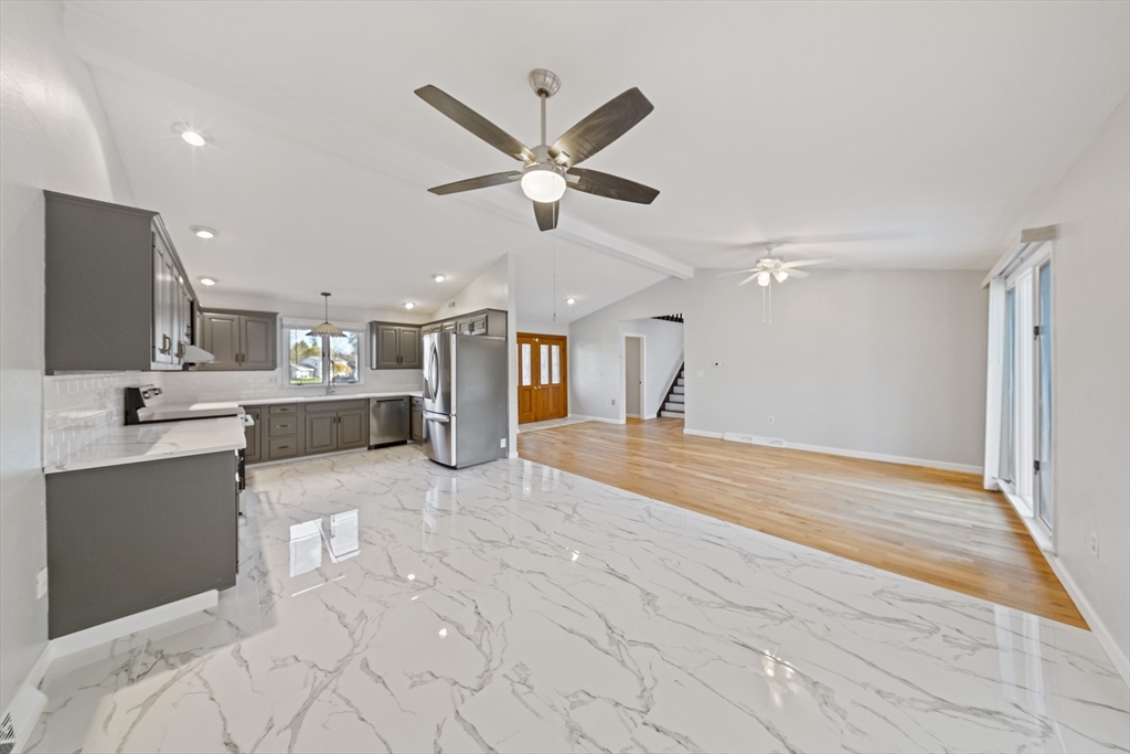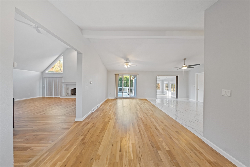 Stunning Custom-Built Contemporary Ranch! Set on a private 0.78-acre double lot, this stone-front home offers 3,494 sq. ft. of beautifully designed living space just minutes from Route 57 and Bradley International Airport. The open floor plan features a spacious kitchen with quartz countertops, new stainless steel appliances, and ceramic floors overlooking a serene brook. The sunken living room boasts floor-to-ceiling windows, a wood fireplace, and double sliders to the deck. The primary suite includes a sitting area, walk-in closet, and Jacuzzi shower. Two additional bedrooms share a Jack & Jill bath. The finished basement offers a full bath, and brand-new hardwood floors run throughout. A rare opportunity to own a private, one-of-a-kind home combining comfort, luxury, and natural beauty!
