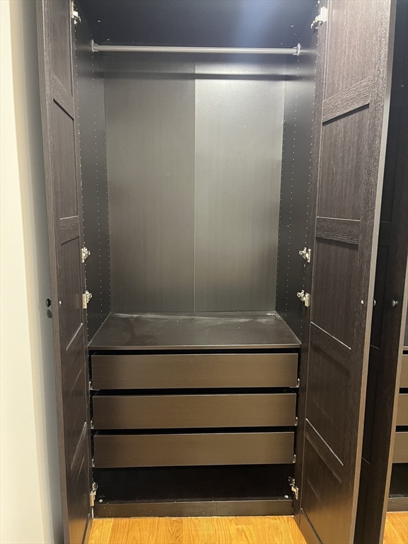 Luxurious one-bedroom apartment offering modern comfort and convenience. This bright and spacious apartment features gleaming hardwood floors throughout, stainless steel appliances, in unit laundry, and central air conditioning and ceiling fans for year-round comfort. The bedroom also boasts custom closets providing excellent storage space. Tenants have access to a shared patio area featuring two gas grills, a fire pit, and a dog play space. One garage parking spot is included. Located close to restaurants, shops, and public transportation, this apartment combines luxury and lifestyle in one of West Roxbury’s most desirable neighborhoods.