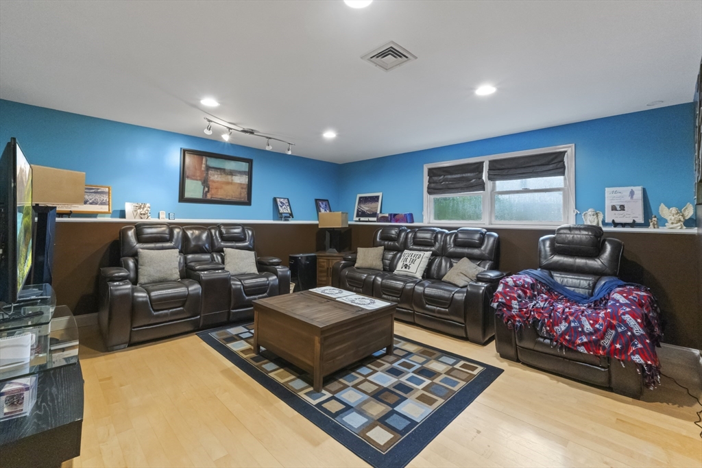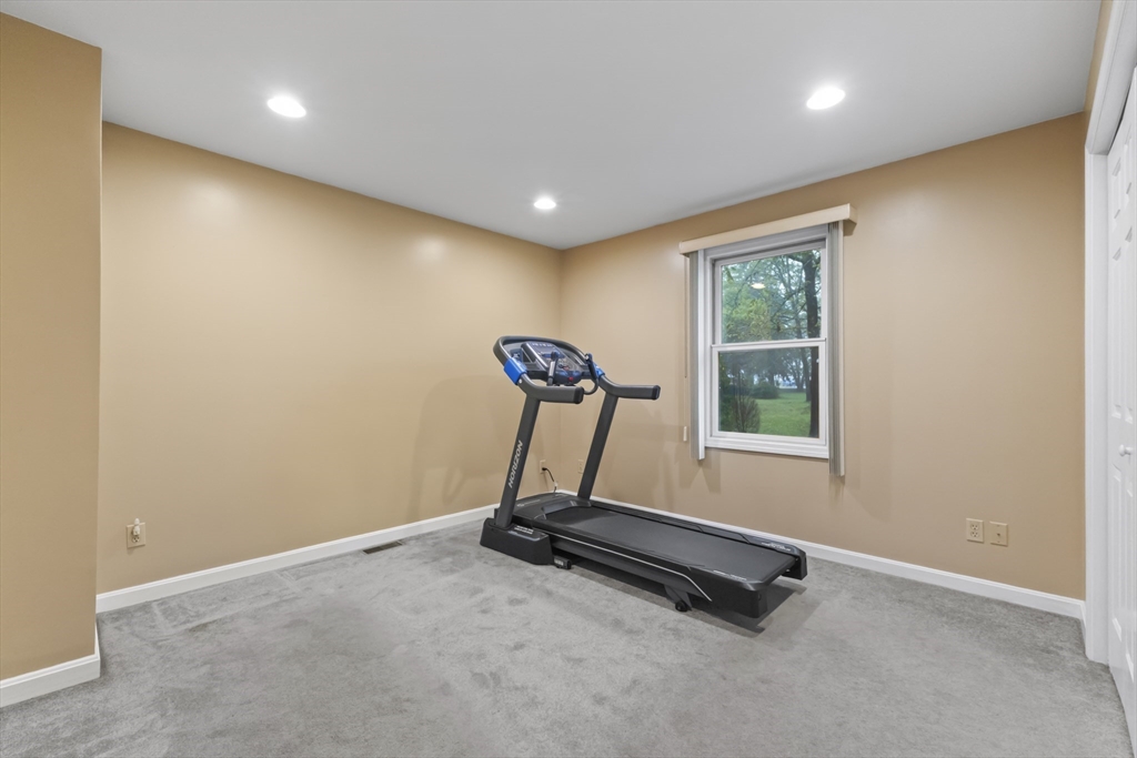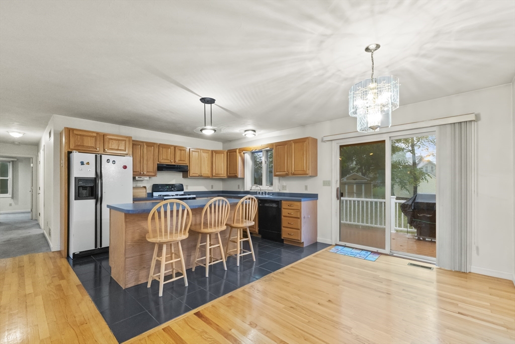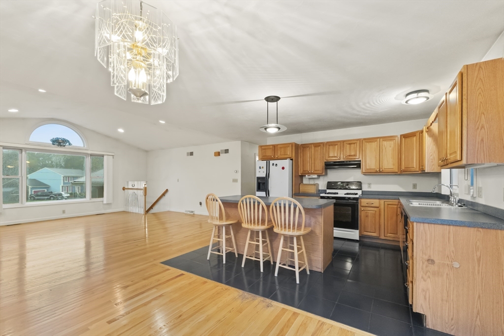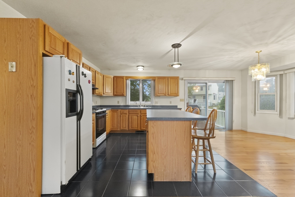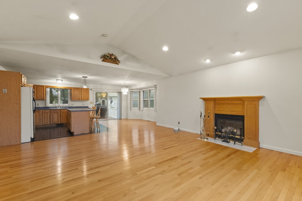 Tucked away on a quiet cul-de-sac, this spacious 4-bedroom, 3-bath home offers a flexible floor plan perfect for today’s lifestyle. The main level recently Painted with new recessed lighting, welcomes you with soaring cathedral ceilings, a fireplace, and an open layout that seamlessly connects the living, dining, and kitchen areas. The kitchen features a center island, gas cooking, and direct access to the deck for easy indoor-outdoor living. The primary suite includes a private bath, while two additional bedrooms share a full bath with soaking tub. The finished walk-out lower level expands your options with a fourth bedroom, full bath, and versatile living space complete with kitchenette—ideal for guests or extended family. Outside, enjoy a composite deck, porch, sprinkler system, and storage shed, all set on an oversized lot with mature landscaping. Central air, a 2-car garage, and convenient access to highways, schools, and local amenities make this home an excellent opportunity.