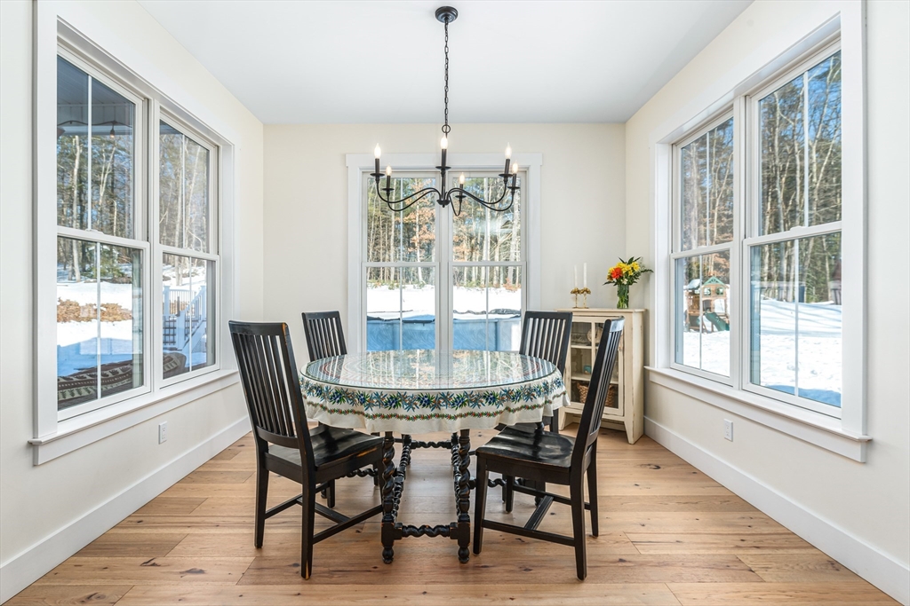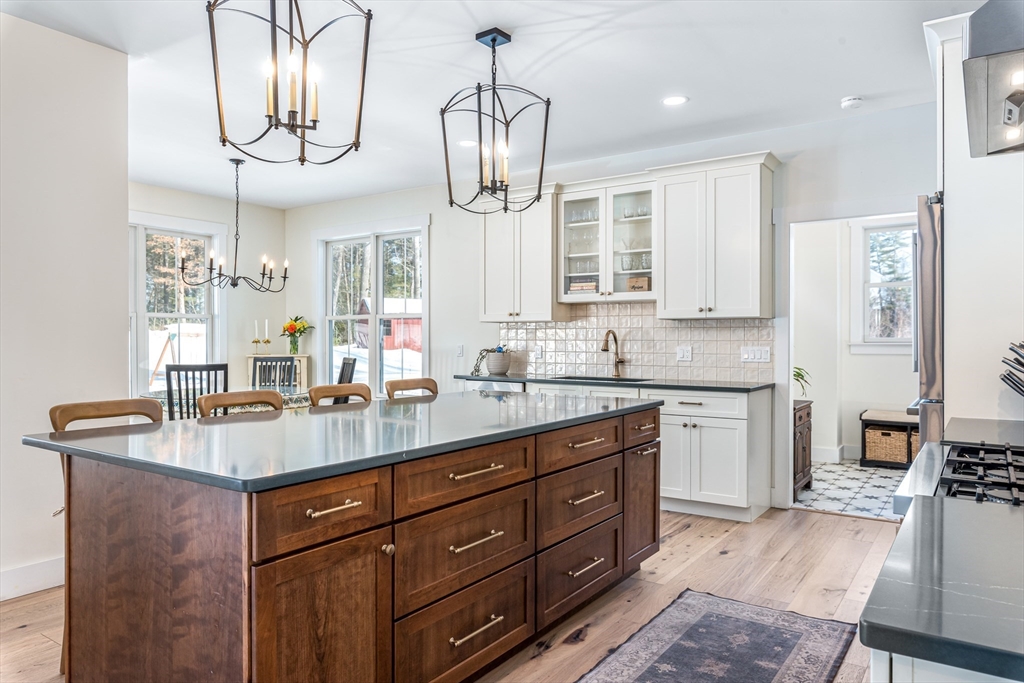 Experience the perfect blend of Colonial stature and Modern Farmhouse soul in this nearly-new home. The stunning open-concept main floor features soaring 10ft ceilings and a Designer Chef’s Kitchen anchored by a massive entertaining island and a super walk-in pantry with all the bells and whistles. This sun-drenched heart of the home flows seamlessly into a fireplaced family room, complemented by two versatile office spaces perfect for remote work, school, or hobbies.The upper level offers 3 spacious bedrooms, including a primary suite with a full bath, walk-in closet, and access to expandable attic space for future growth. Bonus living awaits in the finished, heated lower-level family room.Set on nearly 2 acres, the exterior is framed by a stately covered front porch with massive timber beams and an equally impressive covered rear deck. From the custom millwork to the sprawling grounds, this home is built for those who love to gather yet also enjoy the quiet and peace of the woods.