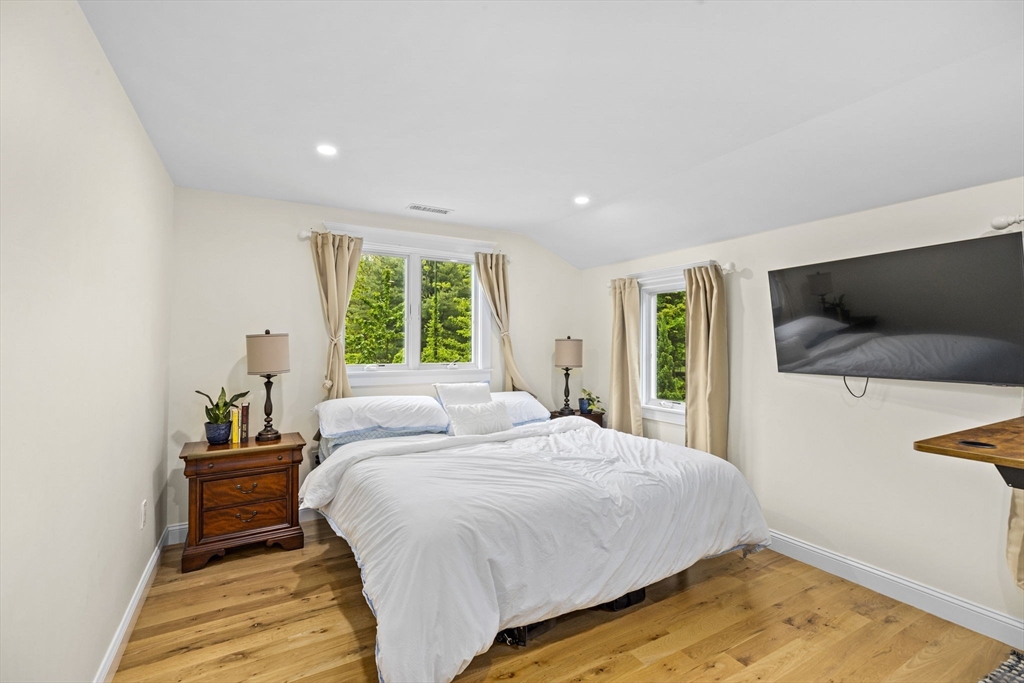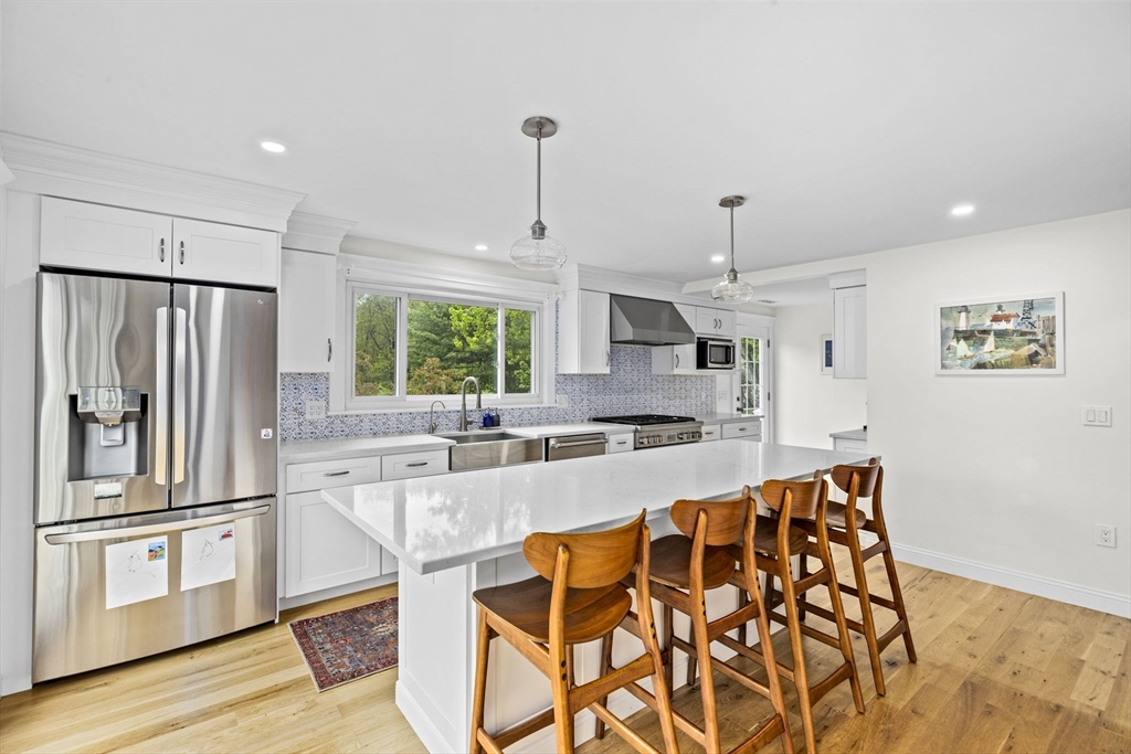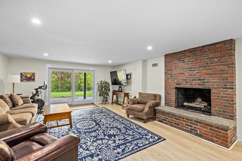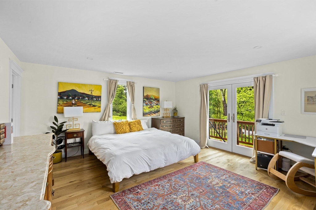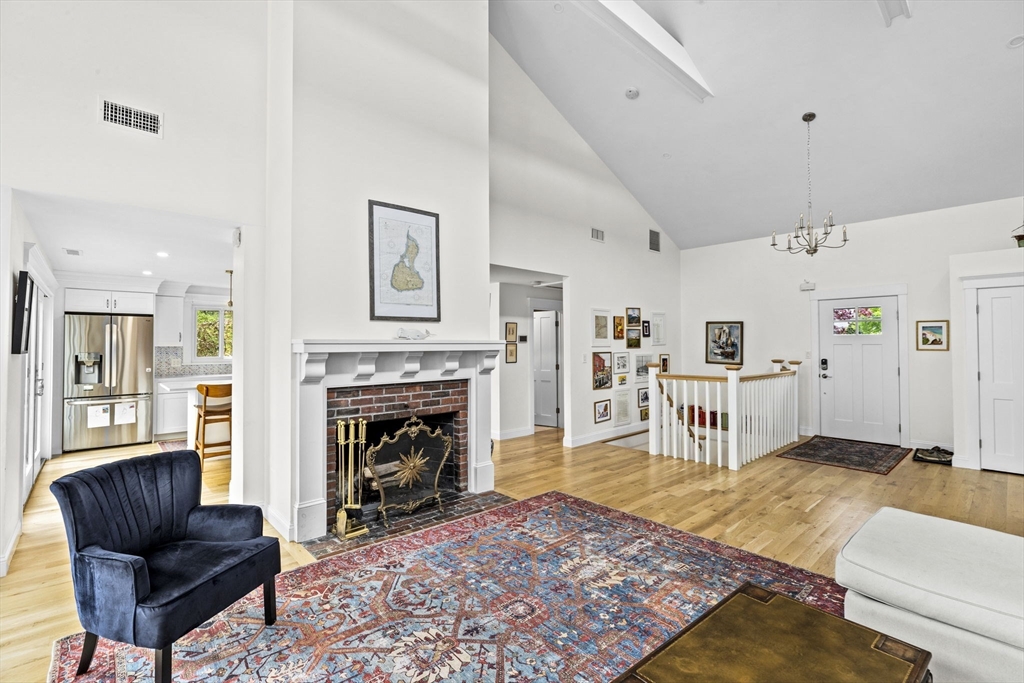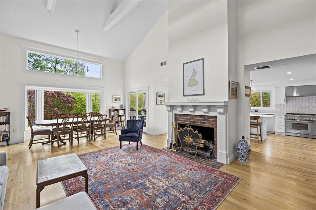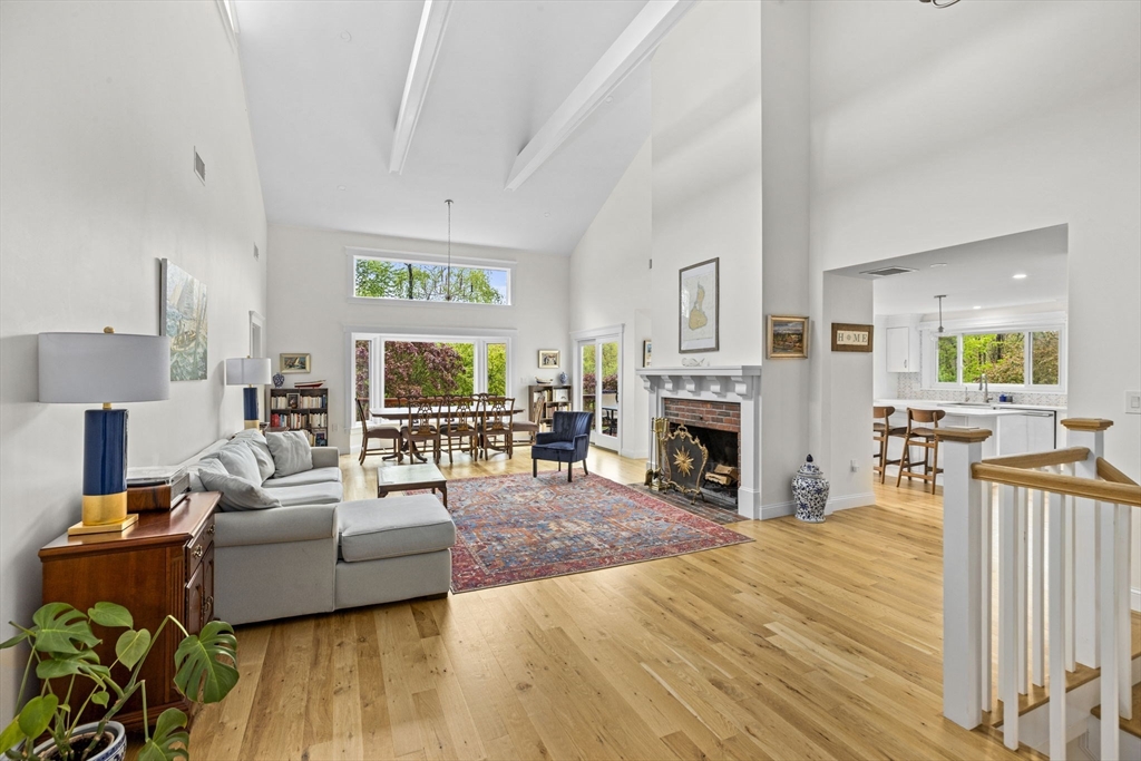 All renovated throughout in 2021, this fully updated 4-bed, 4-bath Contemporary sits on a spectacular 8+ acre estate in a prime in-town location. Surrounded by nature with private trails and a private tennis court, the property offers both space and privacy. The main level features unique cathedral ceilings, an open floor plan filled with natural light, and a cozy wood-burning fireplace. The modern chef’s kitchen offers stainless steel appliances, quartz countertops and a large island for entertaining, flowing seamlessly to a spacious deck overlooking conservation land. The primary suite includes deck access, a walk-in closet and en-suite bath. The lower level adds a large family/playroom with fireplace, walk-out to the backyard, full bathroom, laundry, and a versatile bonus room for guests or office. An oversized two-car garage and all-new systems, windows, roof, ductwork, and insulation make this unique efficient property. *Deck/Driveway newly painted/paved*