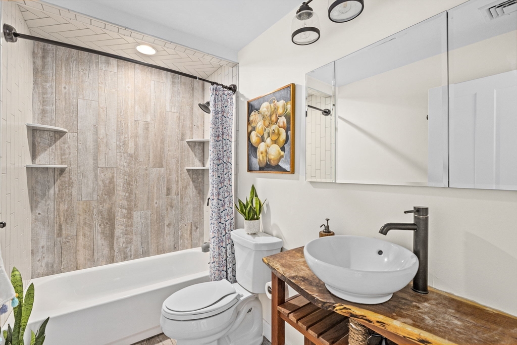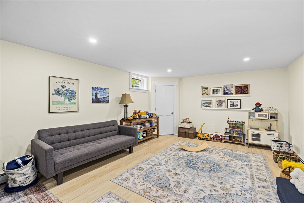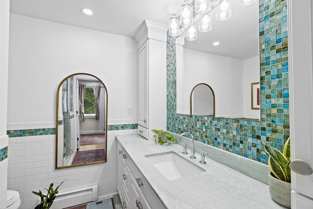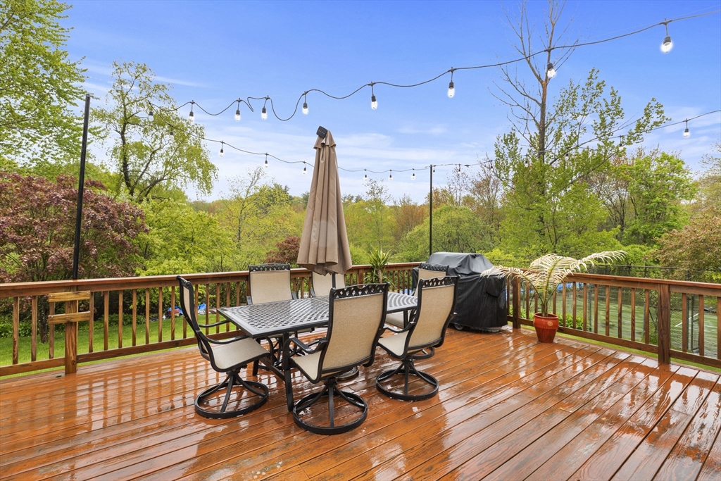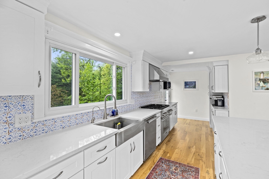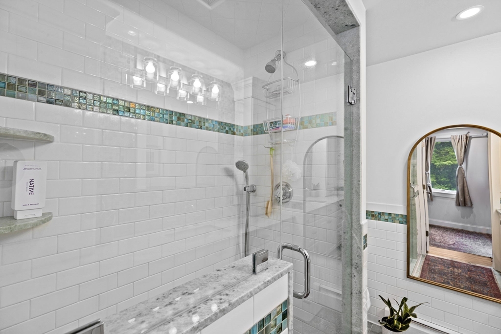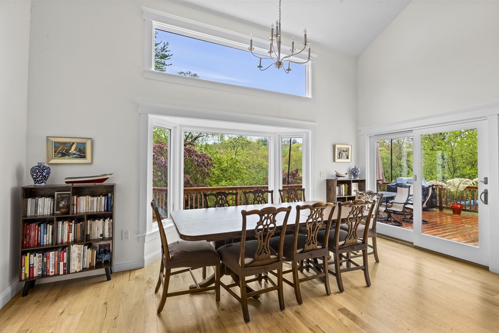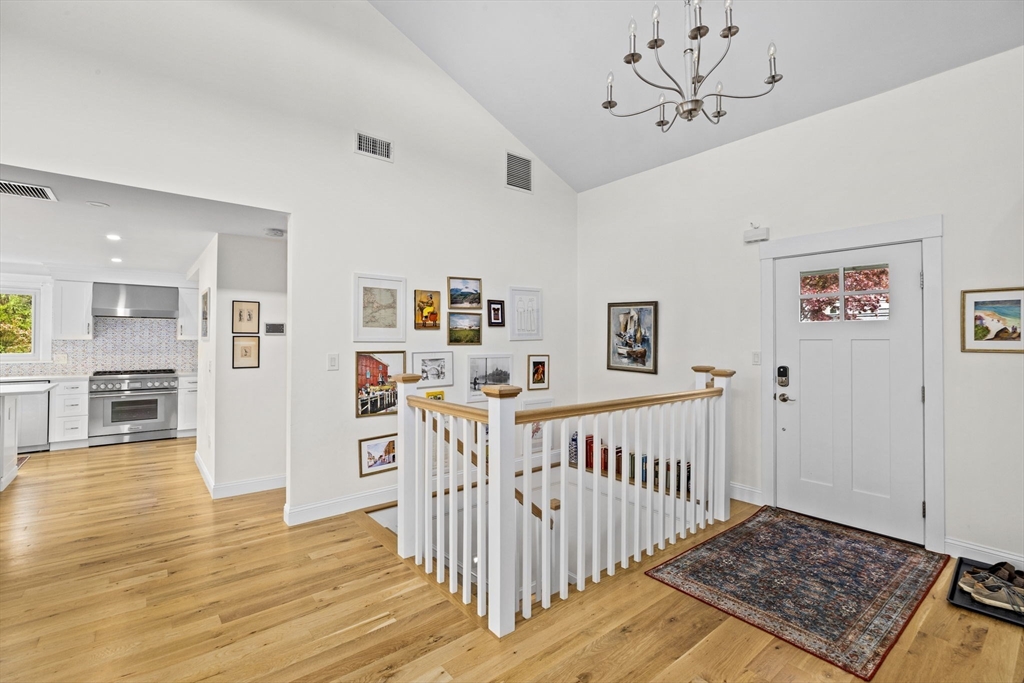All renovated throughout in 2021, this fully updated 4-bed, 4-bath Contemporary sits on a spectacular 8+ acre estate in a prime in-town location. Surrounded by nature with private trails and a private tennis court, the property offers both space and privacy. The main level features unique cathedral ceilings, an open floor plan filled with natural light, and a cozy wood-burning fireplace. The modern chef’s kitchen offers stainless steel appliances, quartz countertops and a large island for entertaining, flowing seamlessly to a spacious deck overlooking conservation land. The primary suite includes deck access, a walk-in closet and en-suite bath. The lower level adds a large family/playroom with fireplace, walk-out to the backyard, full bathroom, laundry, and a versatile bonus room for guests or office. An oversized two-car garage and all-new systems, windows, roof, ductwork, and insulation make this unique efficient property. *Deck/Driveway newly painted/paved*