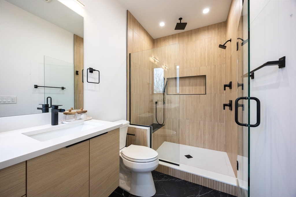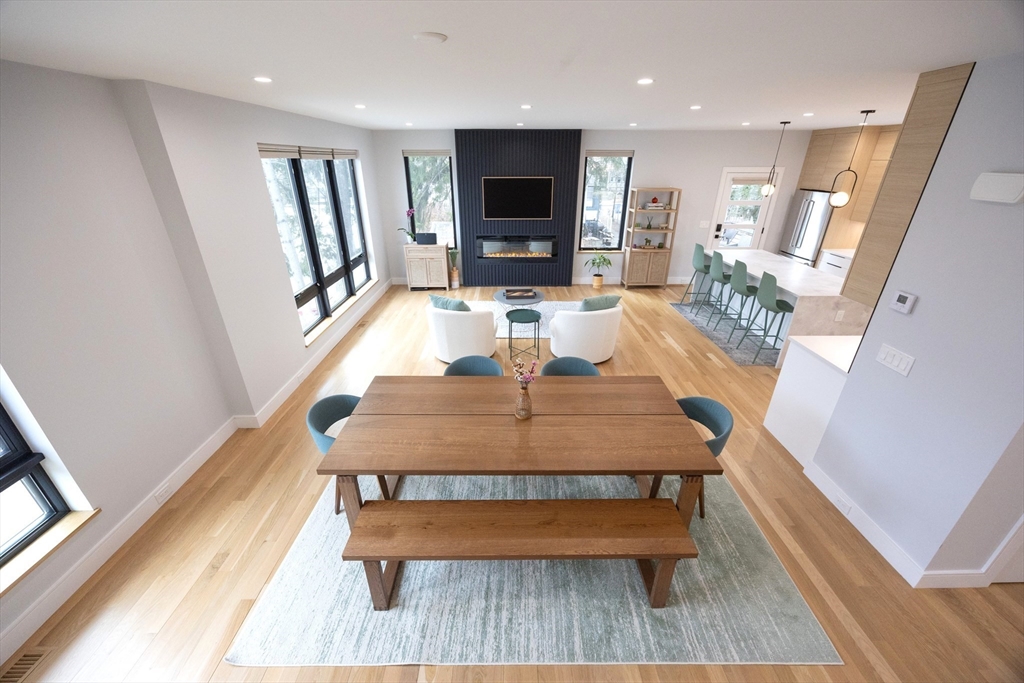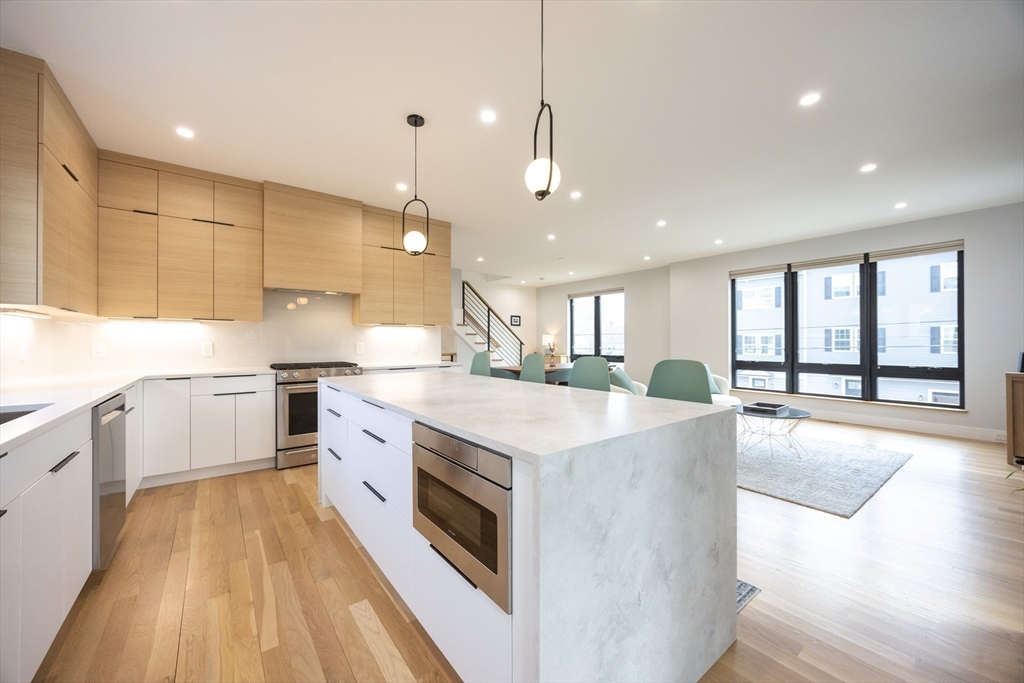 Sophisticated new construction 4 bed/3.5 bath townhome on the coveted Newton line features high-end finishes throughout. Chef's kitchen w quartz counters, plentiful cabinet space, premium SS appliances, & oversized island opens to formal dining area & sun-filled LR w fireplace. Laundry & half bath complete the main level. The primary suite is a serene retreat w spa-like tiled shower & a custom walk-in closet. 2 additional bedrooms & 2nd full bath complete the upper level. The entry level includes a versatile bonus room ideal for an office or guest suite, full bath & access to a private/unfinished basement for storage/additional flex space. Highlights: hardwood floors throughout, massive windows, two-zone gas heat & CA, 1-car garage, private deck, patio, & nicely sized fenced yard. Minutes to shops/dining on Moody Street & Charles River recreation. First showing at the first Open House on Sat, 3/14 & Sun, 3/15 from 11:00 AM-12:30 PM - No exceptions. Offers due Wed, 3/18 by 12:00 PM.