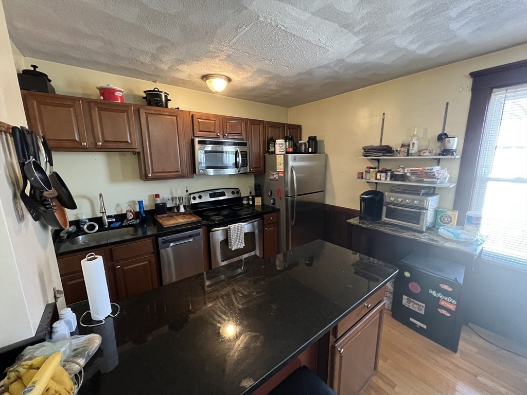 Davis Square. Closest train = Davis Square (Red Line T). 3 bed/1 bath (second floor). Updated kitchen. Open living room/kitchen concept. Hardwood floors. Landlord willing to add in-unit laundry. Great sized bedrooms. Street parking with permit. Off-street parking available for rent.
