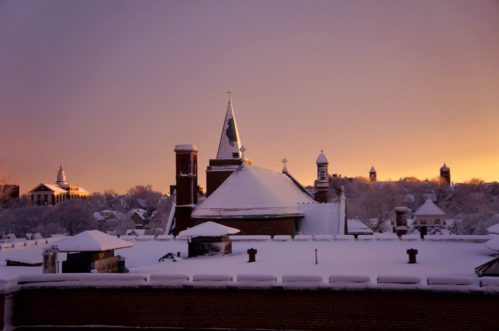 Welcome to the beautifully appointed and sophisticated living at the transformed St. Ann's Convent. The exclusive use 330+ sf rooftop deck in Somerville, not unheard of but something to see! Your foyer is it's own living space outside your front door. Once you enter, the space is breath taking with open living space, hardwood flooring, custom built-ins, fire placed living room, custom metal subway back splashed kitchen with oversized island, dining area, specialty art lighting, 9' ceiling height, deep ledge windows, and a home office. Down the extra wide hallway to continue your journey. The Primary retreat includes two closets with en-suite bathroom showcasing shower, tub, double sink and stone tiled floors. Main full bath with mosaic-like stone flooring, laundry area, 2 spacious bedrooms and up to the private roof top deck. Exclusive use patio at ground level. Private basement storage 13'x17'. Two car parking, close distance to Gilman Square, Green Line, restaurants, cafes and more