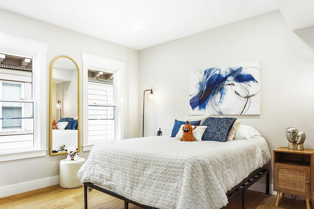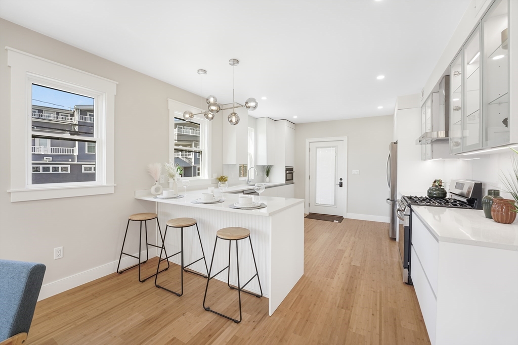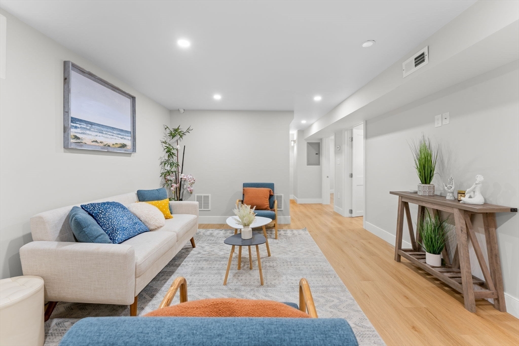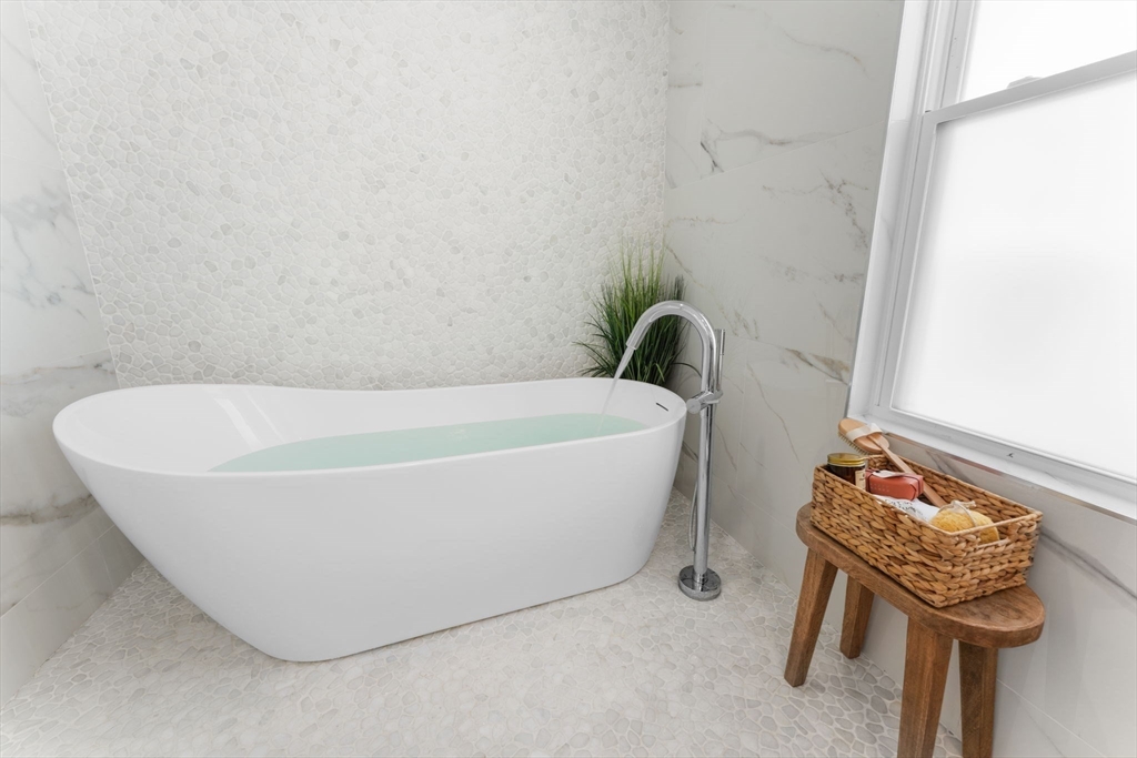 State of Art, sun splashed designer Condo just finished! Everything is sparkling new! Every detail thought through for luxury, comfort and functionality. Sunny open concept living room, dining room and designer European kitchen is perfect for entertainment and every day living. Pristine master suite completed with grandiose master bathroom with stand alone tub, shower and double sink as well as spacious walking closet. Second master suite is in the lower level completed with full tiled bathroom with shower. Additional two bedrooms and full bathroom are in the lower level as well. Spacious and cozy family room in lower level makes it perfect family space. Gleaming eco bamboo floors throughout main floor and engineering wood floors in the lower level. 2 parking spots and green lawn complete this modern professional renovation to the studs. Steps to Arsenal Mall, Charles River, Storrow drive and Watertown Square.