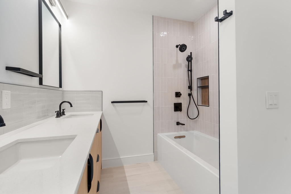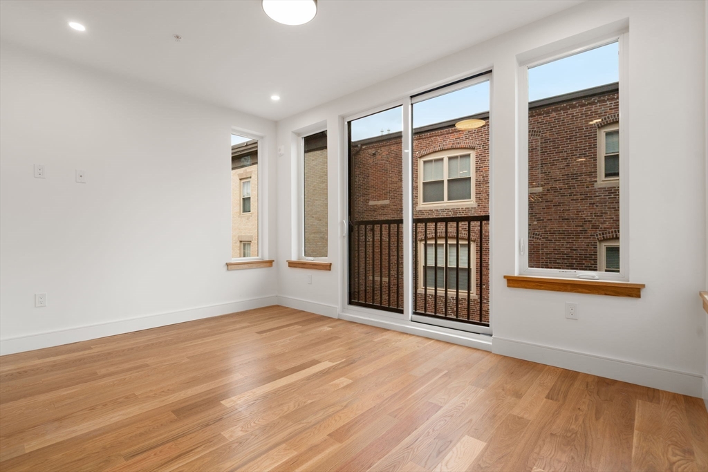 This front-facing two-bedroom blends thoughtful design and effortless style in one of Brookline's most sought-after addresses. Natural light floods in through oversized windows, and a Juliette balcony brings fresh air and an open, connected feel. Nine-foot ceilings and rich hardwood floors set an elevated tone throughout. The kitchen features marble countertops and a full Thermador appliance package, while the bathroom impresses with designer-selected tilework and a dual vanity. Two well-proportioned bedrooms offer flexibility for modern life, whether that means a home office, guest room, or simply room to breathe. Residents enjoy a landscaped backyard and automated valet parking, two amenities rarely found at this price point. Brookline Village is consistently ranked among the best places to live in the United States, where exceptional dining, local boutiques, and the energy of one of Boston's most beloved neighborhoods surround you.