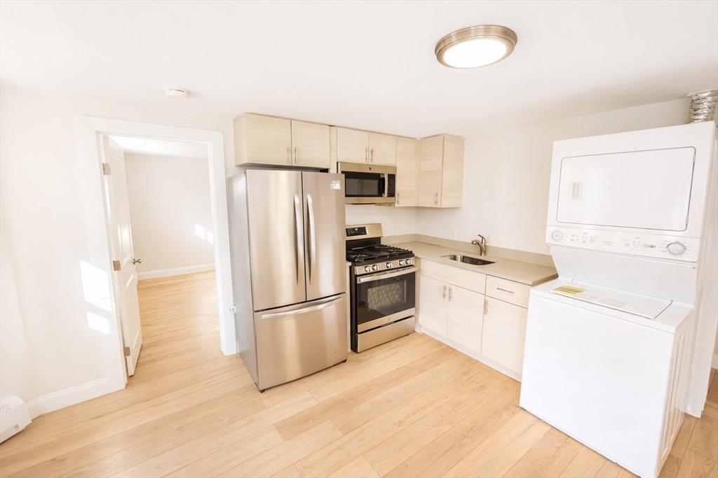 Beautifully renovated 2 bedroom 1-bath apartment in East Boston's Eagle Hill. Featuring a bright, versatile layout with wide-plank flooring, fresh neutral finishes and windows that flood the space with natural light. The modern kitchen is outfitted with quartz countertops, stainless steel appliances, and sleek cabinetry, opening seamlessly into the living area. Additional highlights include in-unit laundry, updated bathroom with modern tile and fixtures, and efficient baseboard heating. Ideally located near public transportation, parks and plenty of dining options nearby.