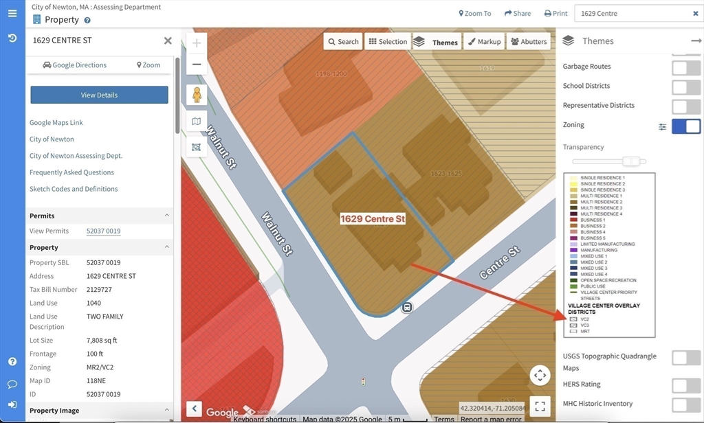 Classic 1920 stucco two-family in the heart of Newton Highlands Village about a one-minute walk to the D-line MBTA. Each generous residence is ~1,700± SF with 3 bedrooms and 1 full bath (one unit with fireplace). Detached two-car garage plus driveway parking for up to seven more, rare in-village capacity. Unfinished basement offers excellent storage and future finishing potential. Asphalt shingle roof replaced in 2008; additional improvements over the years. Zoning note: Located within the newly adopted VC2 Village Center Overlay, which encourages higher-intensity village housing. Buyers and developers: explore footprint coverage, minimal front/side setbacks, and up to 3.5 story building heights. Buyer to verify all zoning/use, parking, and compliance requirements. An appealing opportunity for end users, investors, or future redevelopment.