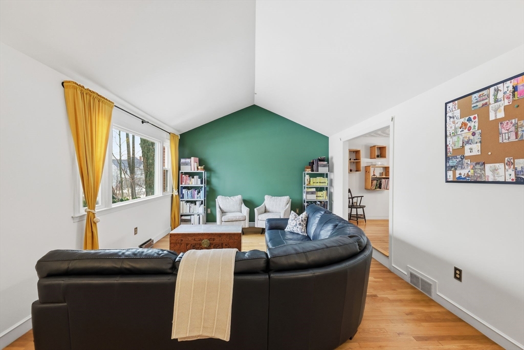 Step into this beautifully maintained tri-level home offering 4 bedrooms and 3 full baths across thoughtfully designed living space. A double-entry doorway welcomes you into a grand foyer that sets the tone for the home's inviting layout. The kitchen flows seamlessly into the dining room, ideal for everyday living and entertaining. A striking sunken living room with cathedral ceiling creates a dramatic gathering space, while the spacious three-season room with vaulted ceiling and walls of sliding glass doors overlooks the manicured backyard. The lower level offers a large fireplaced family room with sliders to a patio, a full bath, and a home office with built-ins and direct garage access. The third level hosts four bedrooms with hardwood floors, a cedar closet, and two full baths. Central air and lawn sprinklers add convenience, all in a location near schools, parks, medical centers, and major routes.