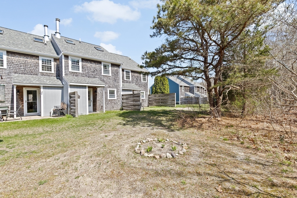 Move-in ready townhouse just off scenic Route 6A offering an appealing blend of comfort, convenience, and Cape Cod charm. The main level features an open floor plan, wood-burning fireplace, laminate wood flooring, a half bath, and in-unit laundry. Upstairs are two spacious bedrooms, including a primary bedroom with direct access to the full bath. The third-floor bonus room provides flexible space for a home office, guest room, or media area. Enjoy professionally landscaped grounds backing to conservation land for added privacy and a peaceful setting. One assigned parking space plus guest parking is included. Pet-friendly association allows one small dog or up to two cats. Convenient to beaches, shopping, restaurants, and everyday amenities. An excellent opportunity for first-time buyers, downsizers, or anyone seeking easy Cape Cod living.