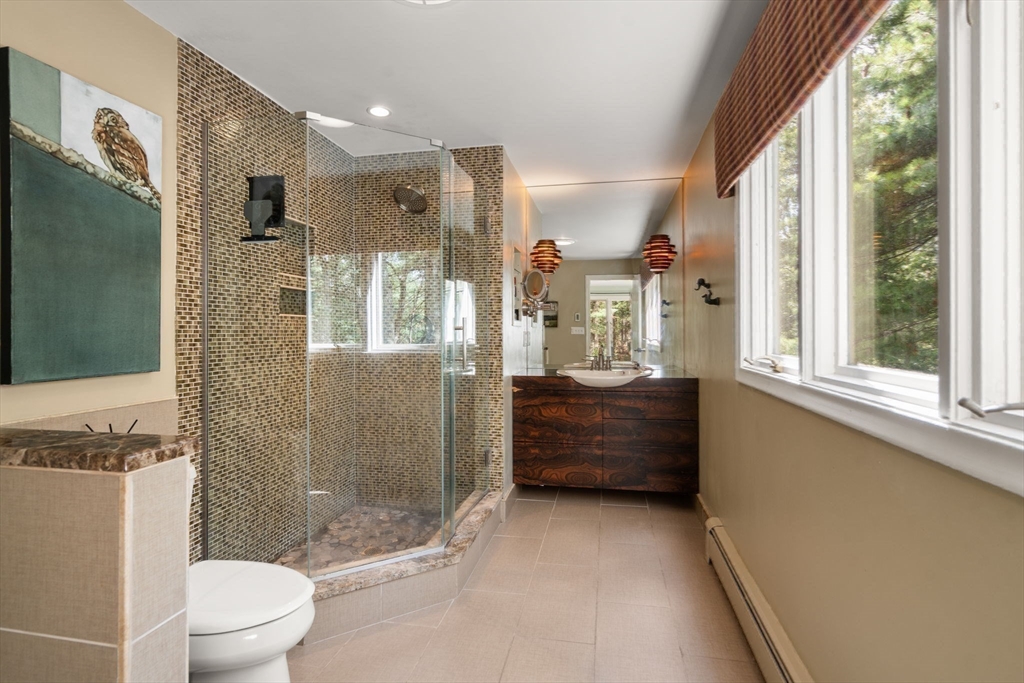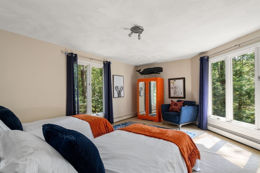 ATTENTION BUYERS: this one-of-a-kind contemporary on 2 magical acres offers a completely renovated interior w/high-end finishes, 5 bedrooms & 5700 sqft for < $1.4M! Located in favorite Sherborn neighborhood but set well off the road, this home is a NATURE LOVER'S DREAM: w/soaring ceilings & walls of windows & sliders, offering stunning views of mature gardens & trees, bringing the outside in! The light filled open concept main level w/great room, kitchen, dining rm & large sunrm w/indoor grill is ideal for entertaining & everyday life; 2nd level includes 4 bedrms w/3 full baths; the lower, walk-out level includes add'l 5th bedrm, cozy den, rec room, mudrm, bathrm, laundry & garage. A bonus 4th floor loft provides an ideal home office. Located on quiet cul-de-sac just ~20 miles west of Boston in an idyllic town known for offering exceptional public schools, extensive trail system & easy access to commuter rail, COME SEE all this property has to offer! Showings start 3/13 @ OH 11-12:30.