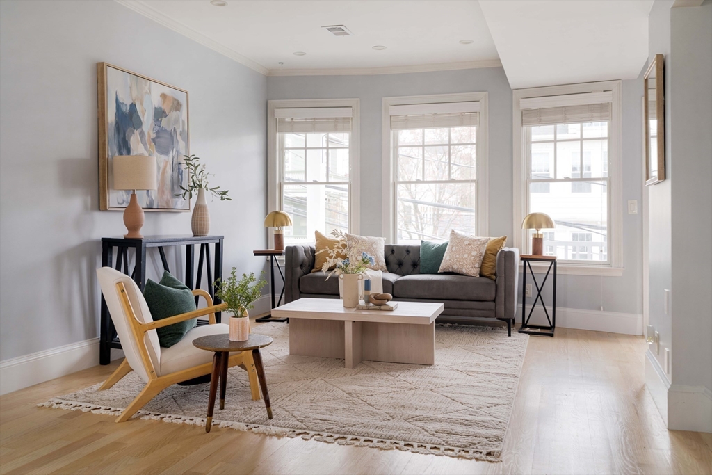 Nested in vibrant Teele Square and just a stone’s throw to Davis Square, this stunning penthouse condo offers modern design and flexible living throughout the top two floors of this well-maintained building. Featuring 3 bedrooms, a home office, 2 baths, and 2 bonus spaces, the home impresses with high ceilings, crown moldings, beautiful hardwood floors, and abundant natural light. The open concept living and dining areas flow into a sleek kitchen with quartz countertops, including a waterfall edge, plentiful cabinets, and JennAir stainless steel appliances. Enjoy your morning coffee on the private front deck or relax in the shared backyard. The primary suite offers generous closet space and a well-appointed marble bath. Additional amenities include central air controlled by Nest thermostats, in-unit laundry, and an unbeatable location near shops, restaurants, parks, and the Red and Green line MBTA stops. This one won’t last! Rental parking spot is on Barton Street.