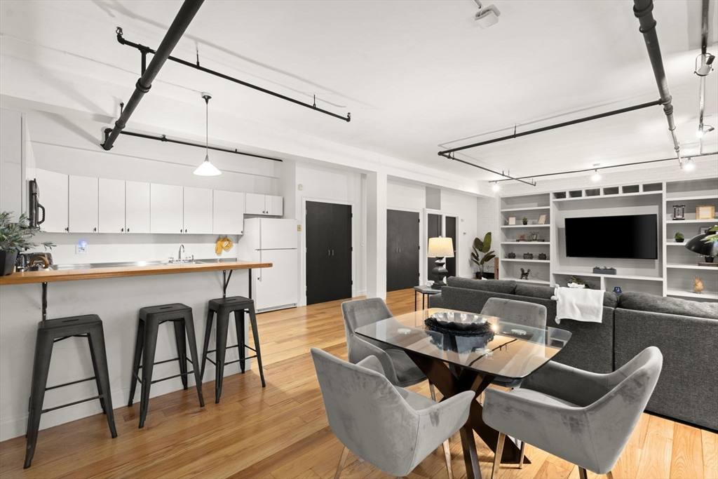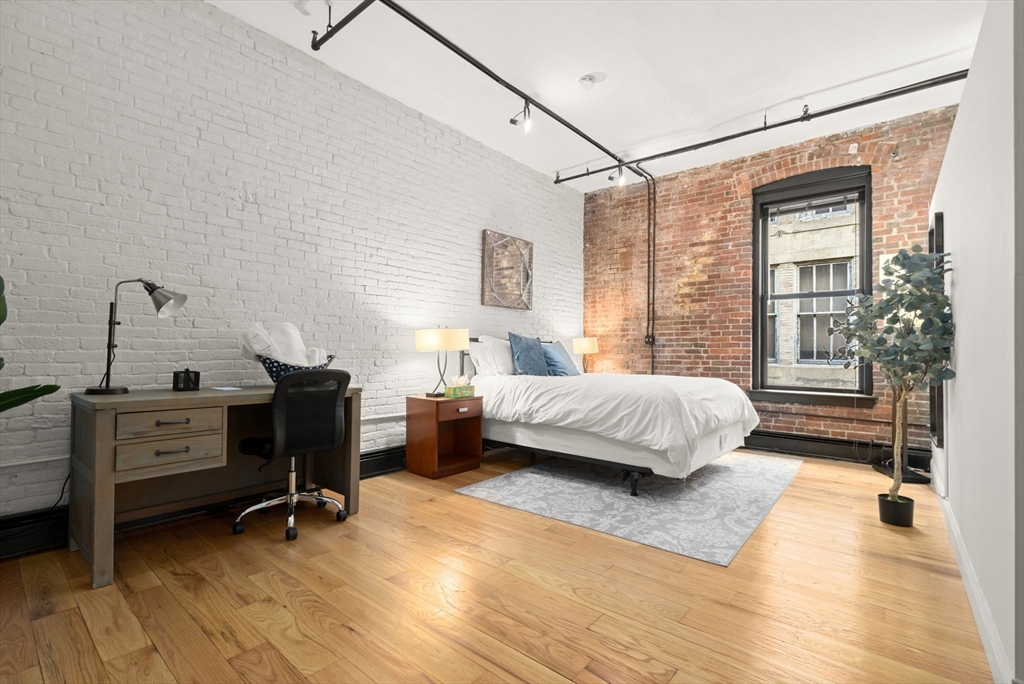 The hunted unicorn: A true loft in Back Bay with an 02116 zip code! And all just moments from The Four Seasons, The Raffles, The Boston Public Garden, restaurants of The South End and Shopping on Newbury St! Enter through your original weight & chain steel door and into a one-of-a-kind open, airy loft space with unique New York flair and southern light. This home full of old-world charm features 10 foot ceilings, exposed brick and antique factory style hardwood flooring. Currently configured as a one bedroom space, the home has a custom bookshelf to designate your sleeping area. The open kitchen has industrial style painted cabinetry and a peninsula perfect for entertaining. In-unit washer and dryer and white tile bath with tub. Building features state of the art monitored security system, virtual doorman, new PVC roof, recnet pointing, upgraded common area and all new windows. A true artists loft feel in the heart of residential Back Bay. Pet friendly. Rentals allowed with 28 day min