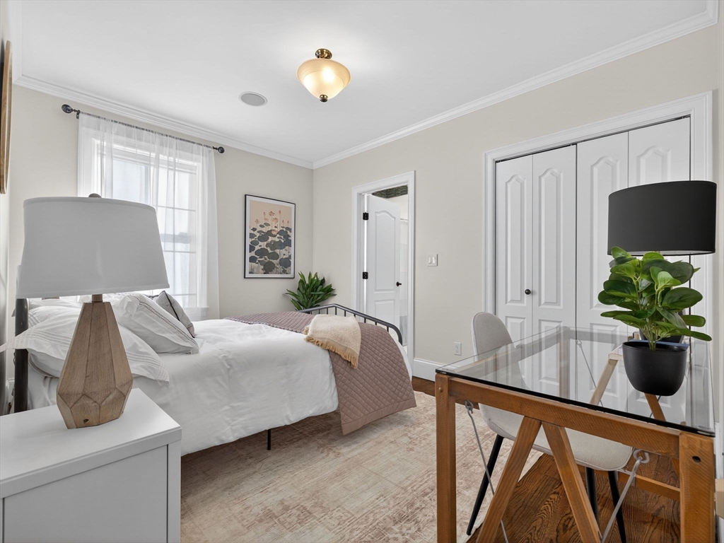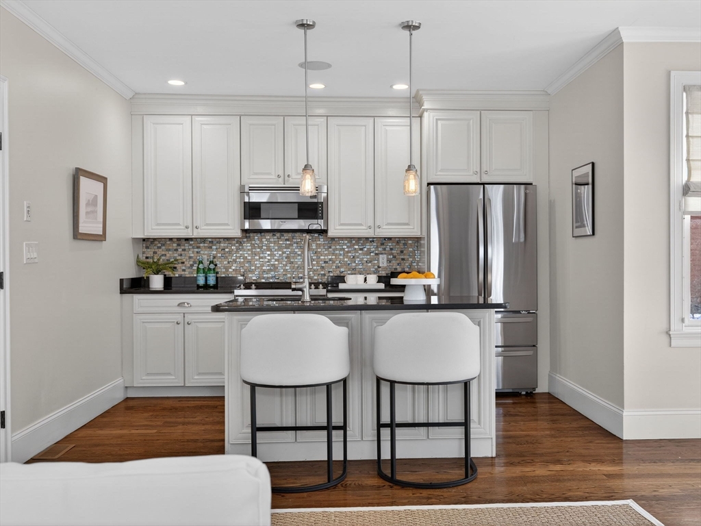 The spacious, light-filled home has an open living and dining area surrounded by windows, making it an ideal space for entertaining or relaxing with a cup of coffee as well as two bedrooms, both with en-suite bathrooms. This beautifully renovated unit offers 1912 square feet of comfortable living including a finished basement providing incredible versatility for distinct spaces like a home office, TV room, guest area, and even a gym. Enjoy living in a quality renovation in this top Jamaica Plain location! Situated on a peaceful street, the home is surrounded by all your favorite pubs, restaurants, shopping as well as transportation! The proximity to Jamaica Pond and the stunning paths of the Emerald Necklace offers year-round natural beauty and easy accessibility to Brookline Village and the Fenway. Completing this exceptional offering are a large private back deck, a private yard, and garage parking. A must-see!