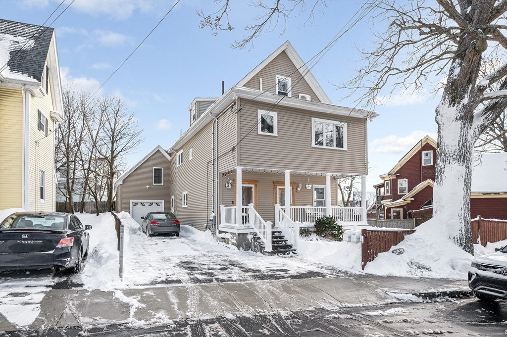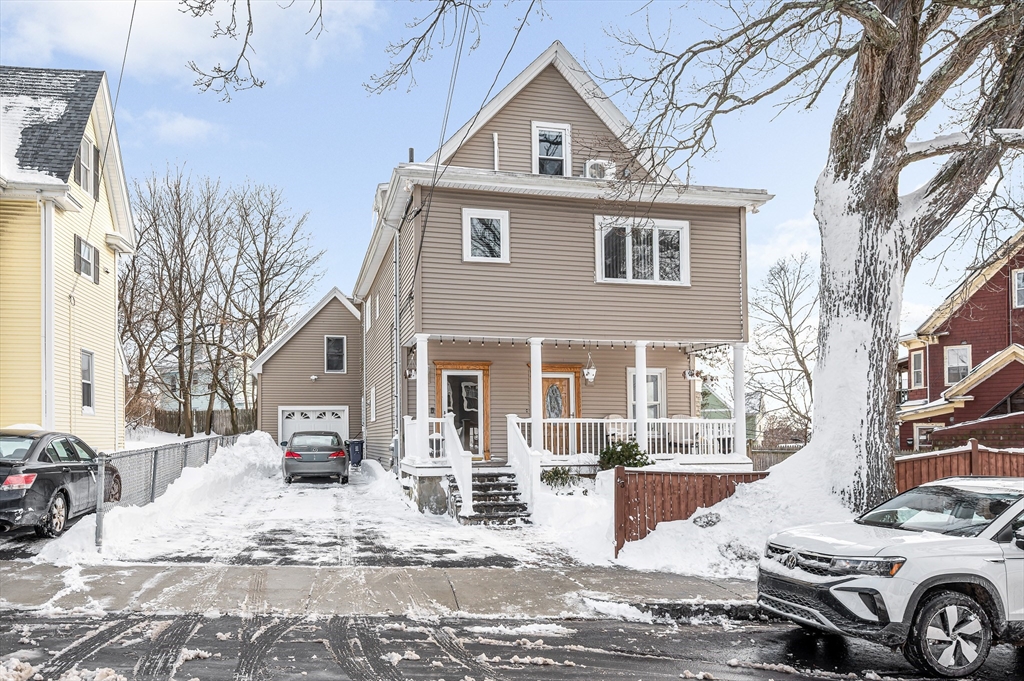 Well-maintained two-family offering space, updates, and versatility in a convenient location. The first-floor unit features three rooms with one bedroom, an updated kitchen and bath, hardwood floors, central air, in-unit laundry, and private storage.The second and third floor unit offers six rooms, three bedrooms, a sunroom, living and dining rooms, and a large eat-in oak cabinet kitchen. Additional features include hardwood floors throughout, a full bath with jacuzzi tub and separate shower, central air plus two mini-splits, and a dedicated laundry room with washer and dryer.Major updates include heating and central air (2019), mini-splits (2024), additional AC (2025), hot water heater (2023), and roof (2009). Exterior highlights include a one-car garage, four off-street parking spaces, a welcoming front porch, and patio.