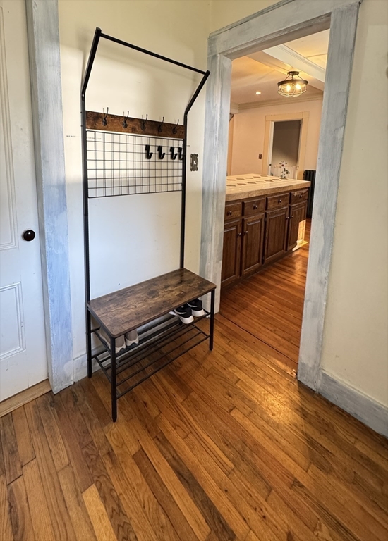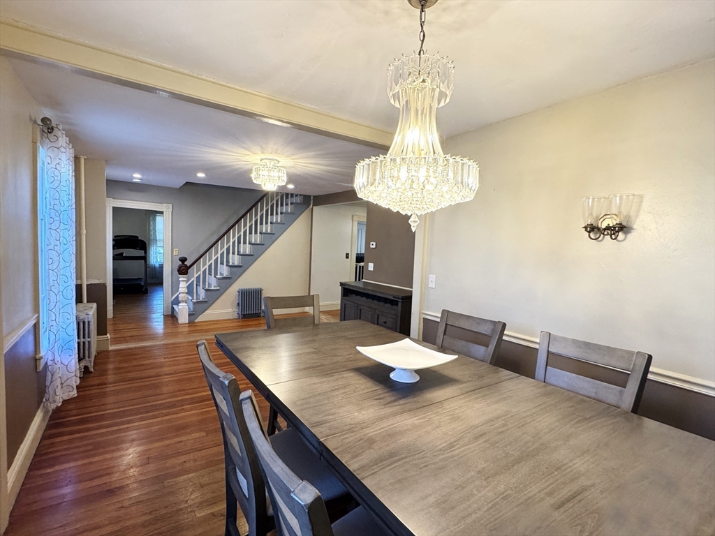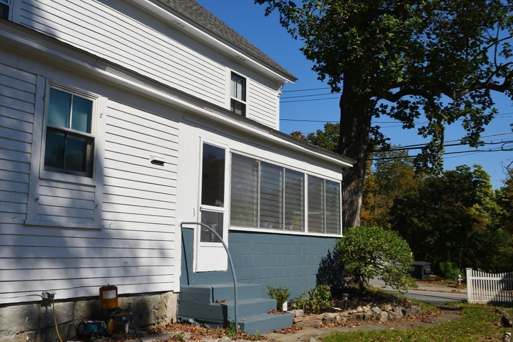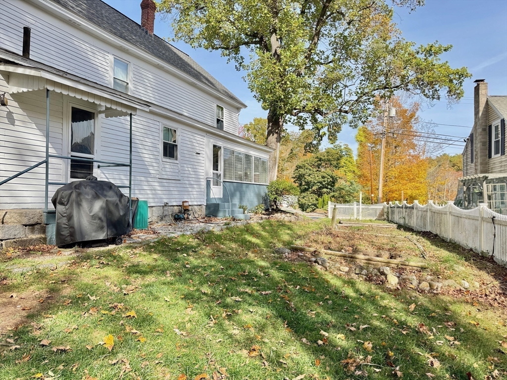 A distinguished Colonial with timeless charm and thoughtful updates. Step inside to find spacious rooms, gleaming wood floors, and a front-to-back fireplace living room with a separate dining room. The center island kitchen features stainless steel appliances, Newer dish washer, gas cooking stove top/ electric oven, a pantry closet, and it opens to a sun-filled three-season porch. The first-floor laundry includes a NEW stackable washer /dryer with a 10-year warranty, and the room offers flexible use—perfect for hobbies or a potential 4th bedroom. A convenient half bath completes the main level. Upstairs showcases wide pine floors, 3 generous bedrooms, and a beautifully updated full bath. Recent updates include a young roof, hot water heater, replacement windows, blown-in insulation, 200-amp electrical service, and new garage doors. Outside, enjoy a level lot with garden space, patio, and private well for watering. Close to highways and shops.
