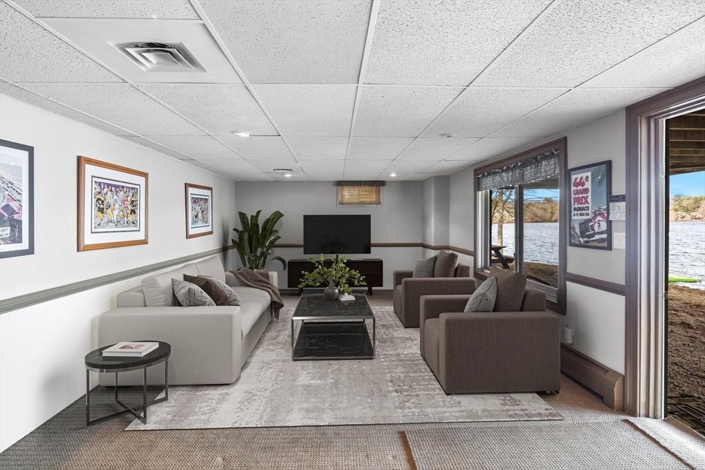 A truly rare waterfront offering in Amesbury, boasting approximately 14 acres of private pond ownership. The property includes a versatile additional dwelling unit—ideal for guests or a sophisticated home office retreat, the choice is yours. Situated along Tuxbury Pond and the Powwow River, the property includes two docks and year-round recreational opportunities. The main residence sits on 2.33 acres and features an open-concept layout with spacious living and entertaining areas overlooking the water, offering scenic sunset views. Outdoor amenities include a deck, firepit, and multi-sport court for endless fun. The accessory dwelling provides additional flexibility for extended family, guests, & more. With expansive land control, water frontage, and outdoor amenities, the property offers versatility for personal enjoyment, long-term holding, and endless possibilities year round. A unique opportunity combining waterfront access, acreage, and flexibility in a highly desirable setting.