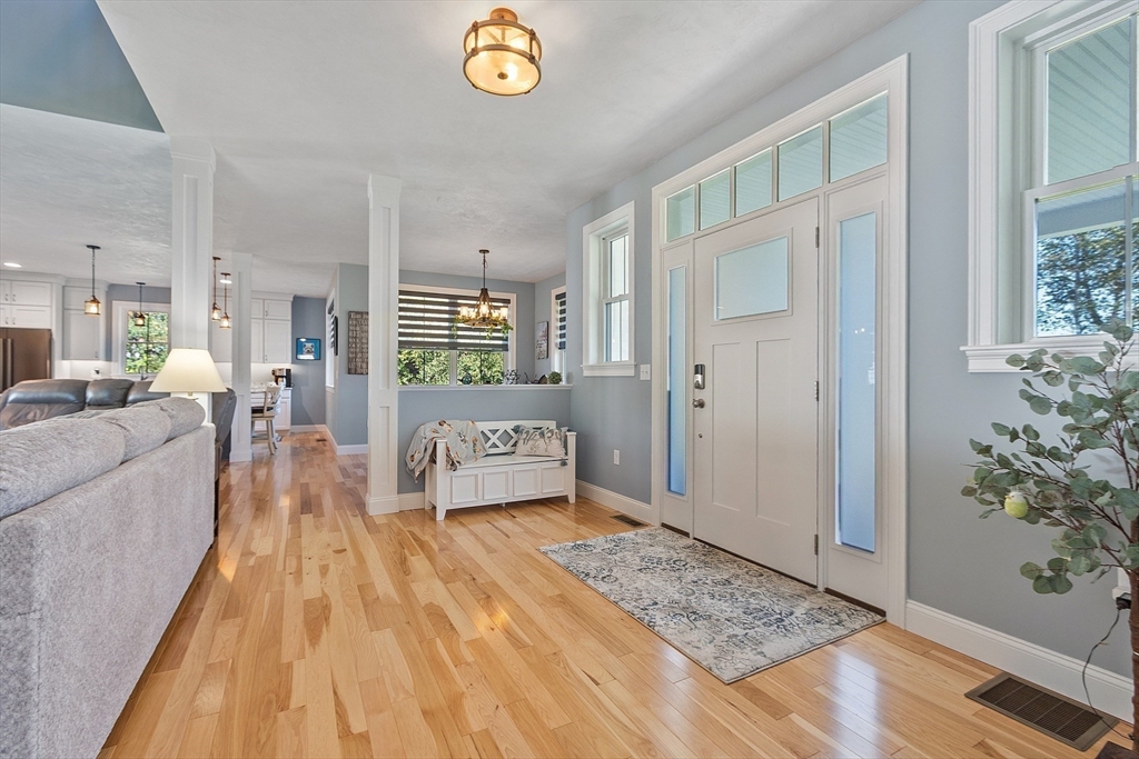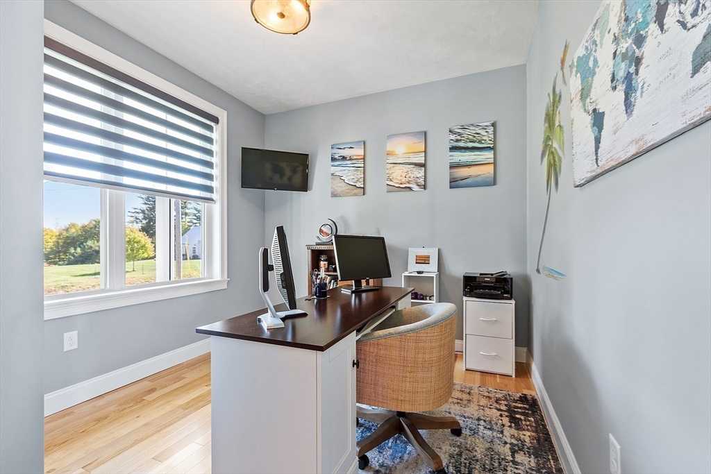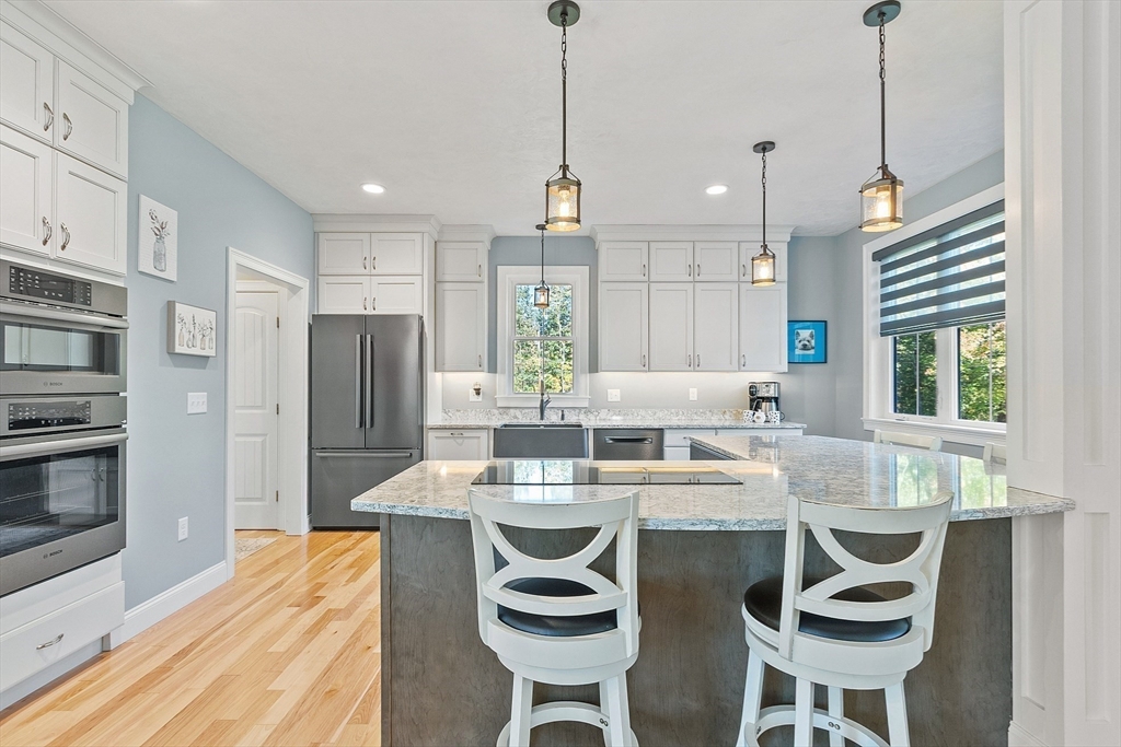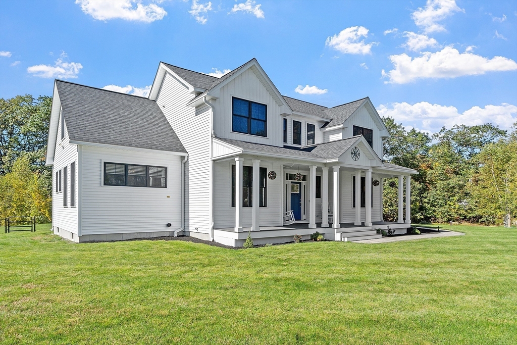 Built in 2022, you will find an extraordinary Modern Farmhouse in the beautiful town of Ashby that stands out among the rest. The 1st floor primary suite features a walking in closet, a soaking tub with jets, marble tile, double vanity with quartz counter-tops, and ample room to rest and relax. The open concept living room, dining room, and kitchen features cathedral ceilings, Hickory Hardwood floors, and plenty of natural light. The kitchen is made for entertaining and offers a large kitchen island with seating, 36 “induction cooktop, Custom Cabinets, a farmers sink, and top brand appliances. 1st floor office with a barn door and 3 Additional rooms on the second floor with a spacious bathroom with a double vanity. Upgraded oversized black windows, Farmers porch with composite decking, Accent Batten Siding, 1st floor laundry, oversized 3 car garage, irrigation, propane fireplace, electric blinds, and a beautiful composite deck for entertaining and grilling. This is a Must SEE!