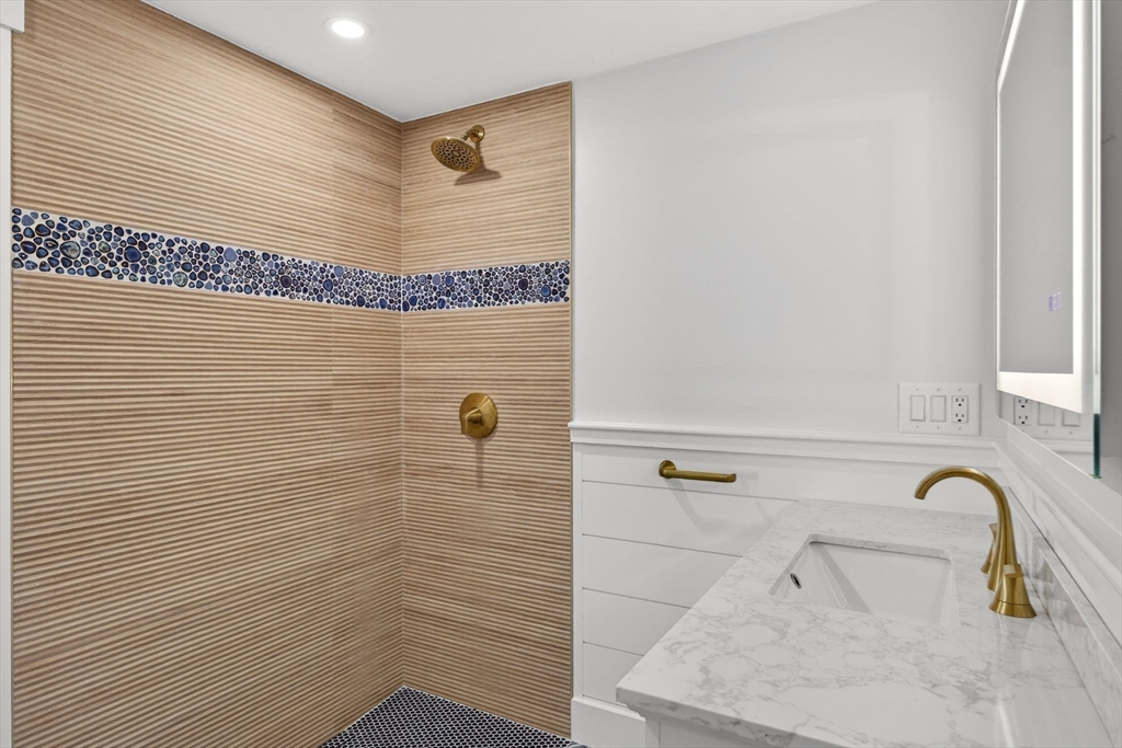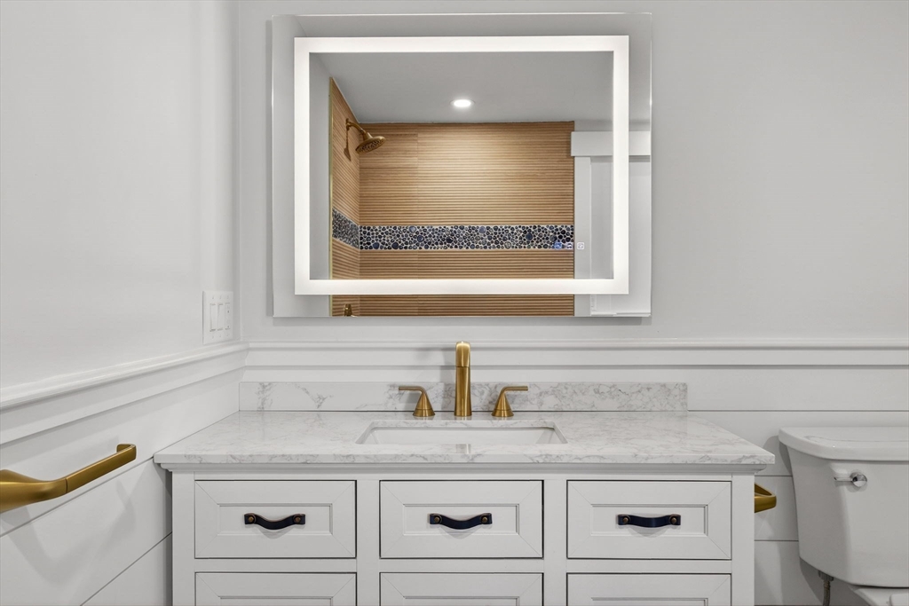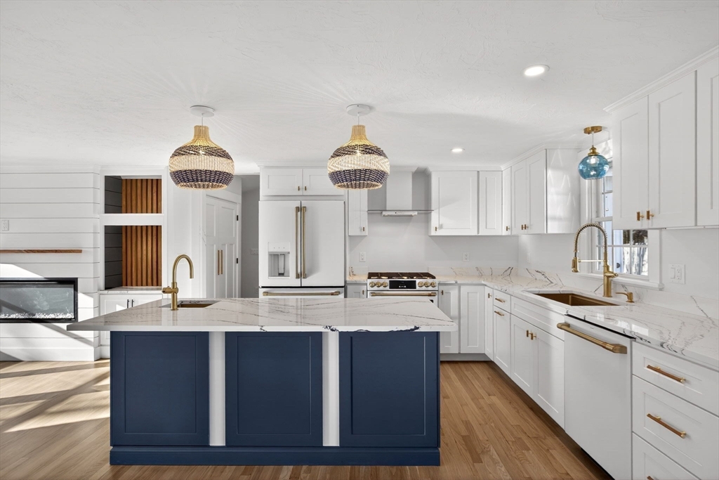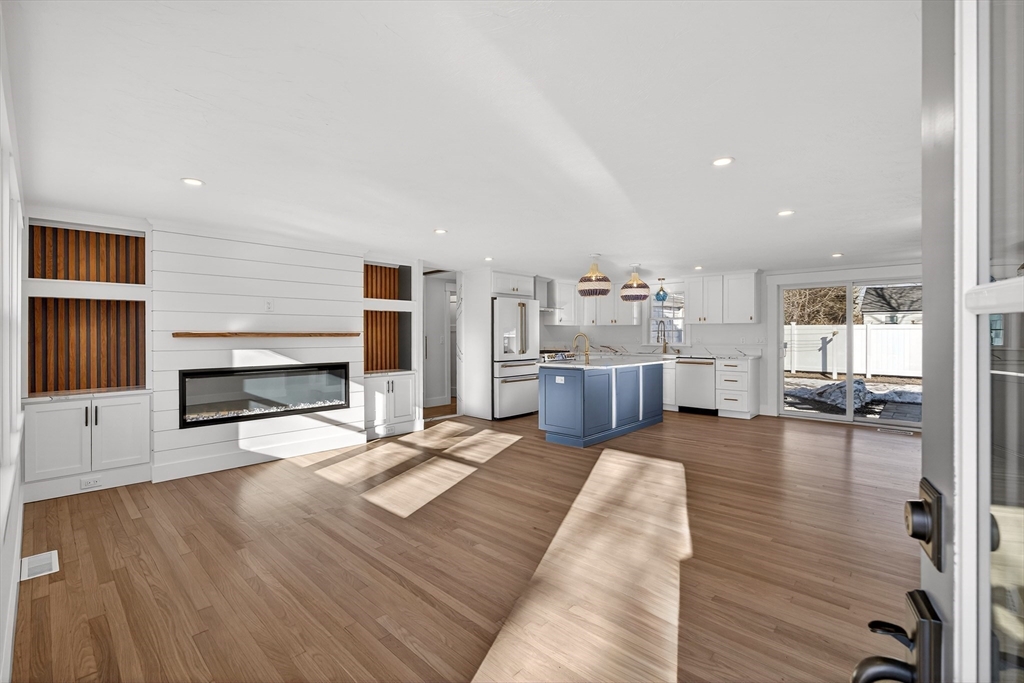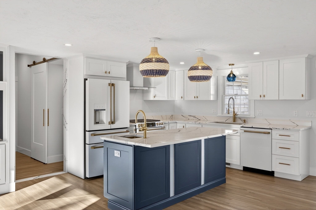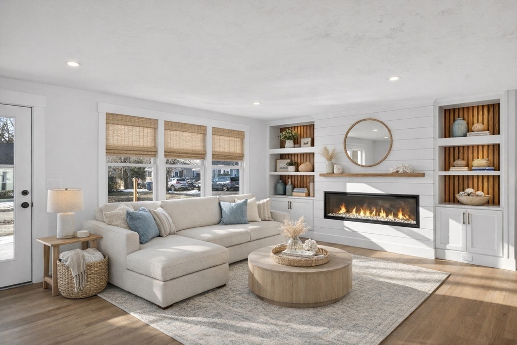 A Magazine-Worthy Transformation sets the tone for this beautifully reimagined Ranch-style home. Tucked within Blue Water Shores, this modern single-level retreat offers the rare privilege of neighborhood access to deep-water boating on Eel Pond. Inside, 3 bedrooms and 2 bathrooms are enhanced by refreshed systems, including 2-zone FHA by gas heating and cooling, while elevated finishes—bespoke built-in cabinetry, nickel-gap paneling, custom lighting, and crisp curb appeal—create a cohesive sense of style. Light-filled rooms open to curated outdoor spaces, including a fenced yard, outdoor rinsing station, and firepit patio ideal for relaxing after a day on the water. An attached one-car garage with direct entry into a mudroom and laundry room addition ensures year-round comfort. With world-class beaches, dining, shopping, golf, and a nearby marina moments away, this beloved waterfront neighborhood delivers the best of Cape Cod living.