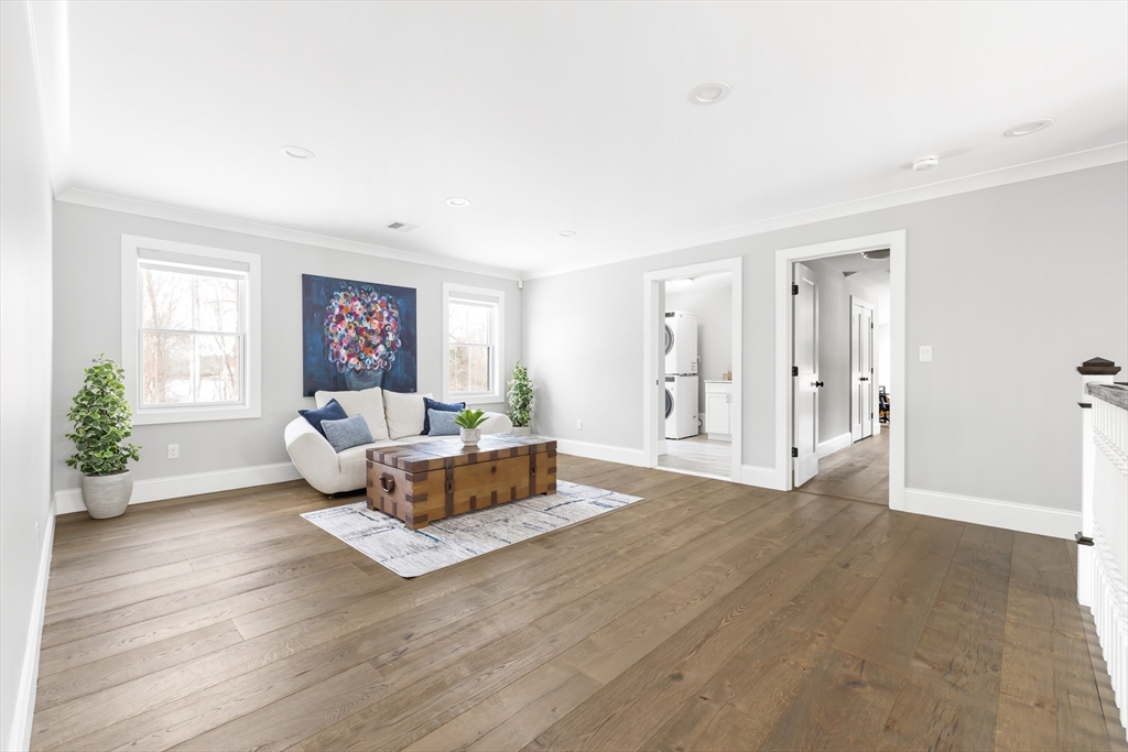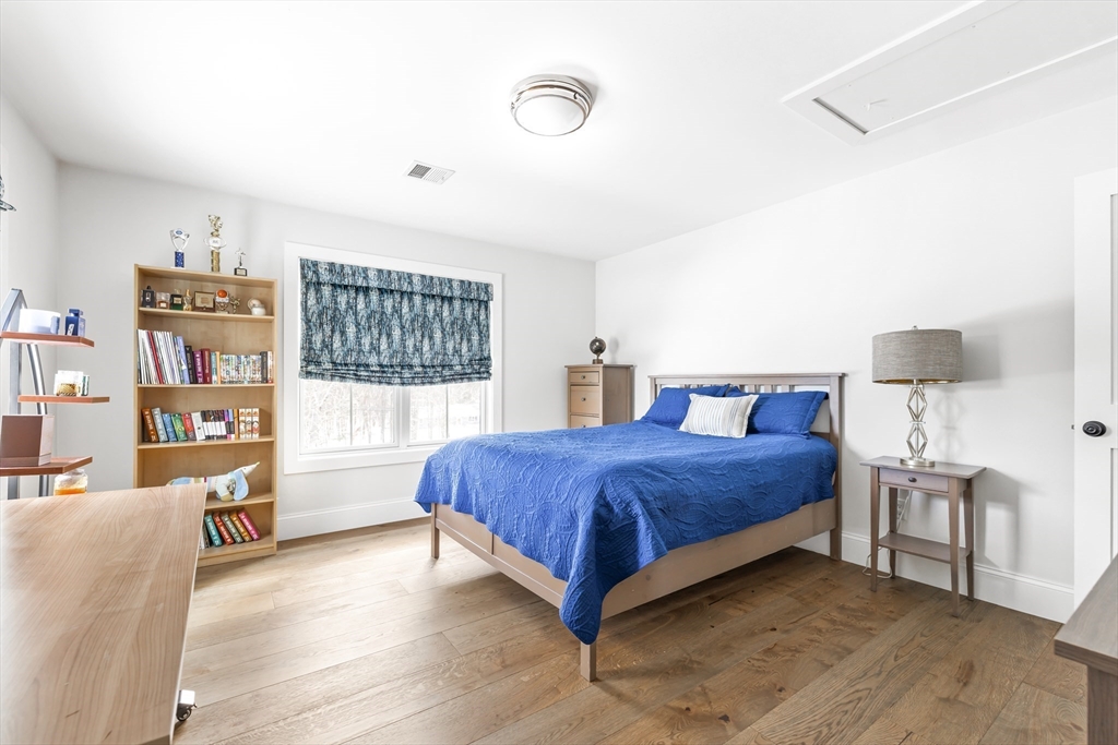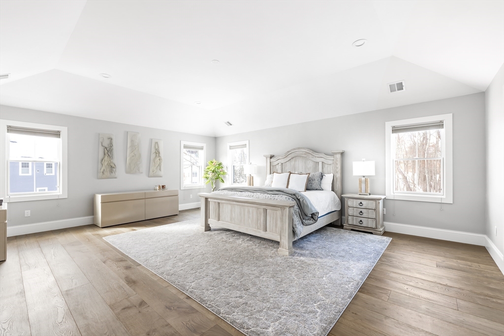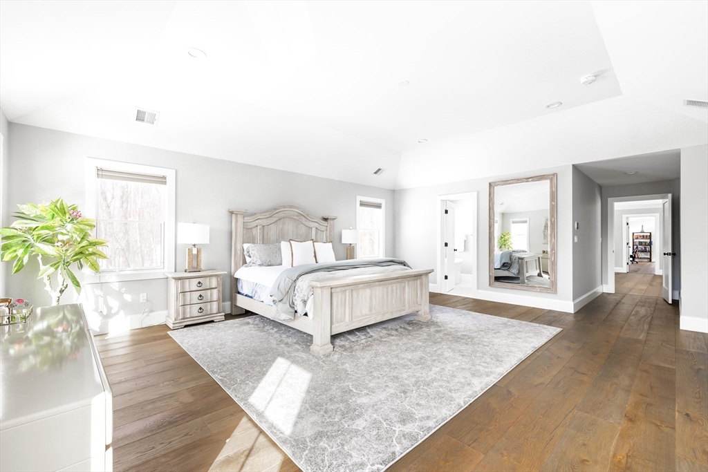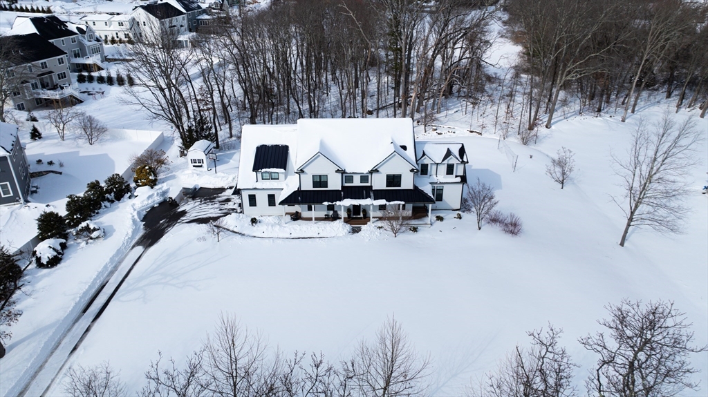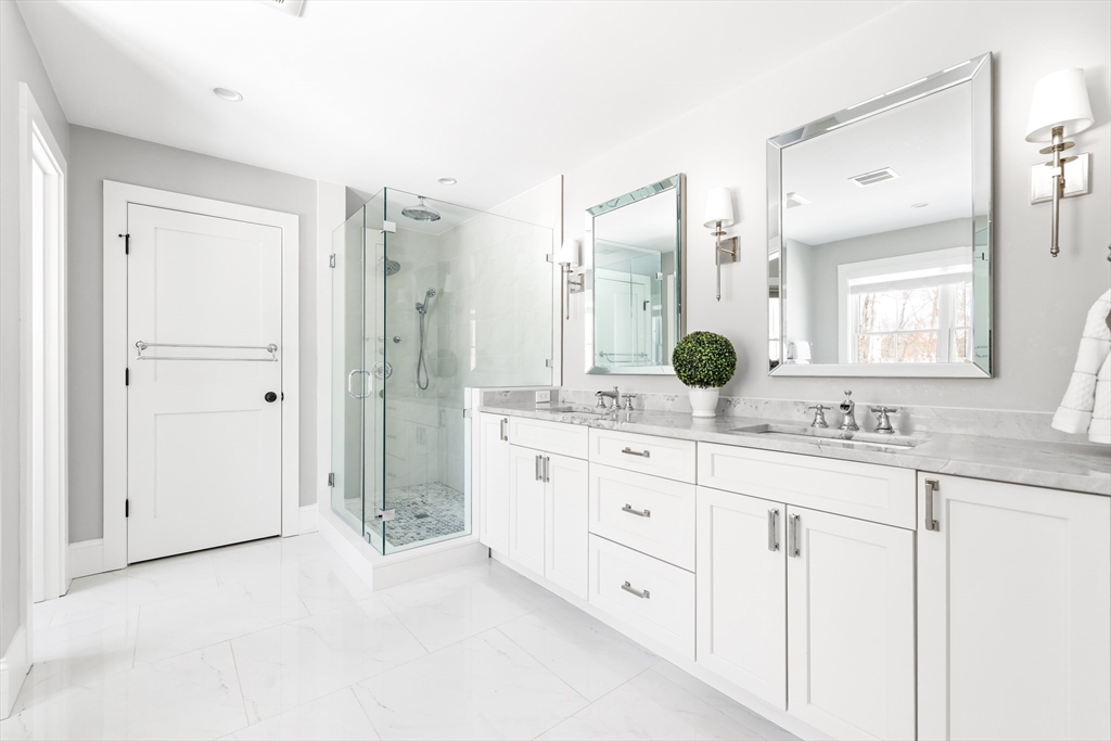 This stunning & luxurious South Natick residence, built in 2019 by Trask, one of the area's top builders, is beautifully sited on a private lot in the Wyndemere neighborhood abutting wooded land. A grandiose porch & soaring entryway welcome you into the home. An open floor plan seamlessly connects the gorgeous eat-in kitchen with quartz counters & high-end appliances to the fireplaced family room. Also on this level are formal dining room w/butler's pantry, living room, powder room & spacious mudroom leading to 3-car garage. Up the elegant staircase, a convenient & generous sitting area greets you. The spacious primary suite offers a walk-in closet & stunning spa-like bath. This level also features an en-suite bedroom plus 2 additional bedrooms w/jack-and-jill bathroom, and laundry room. The finished lower level has a media/game room, gym area, full bathroom & bonus room used as office/guest bedroom. Expansive & beautifully landscaped yard, plus Natick school system - not to be missed!