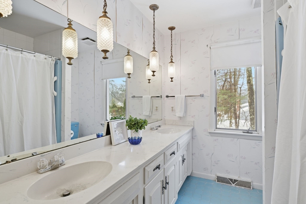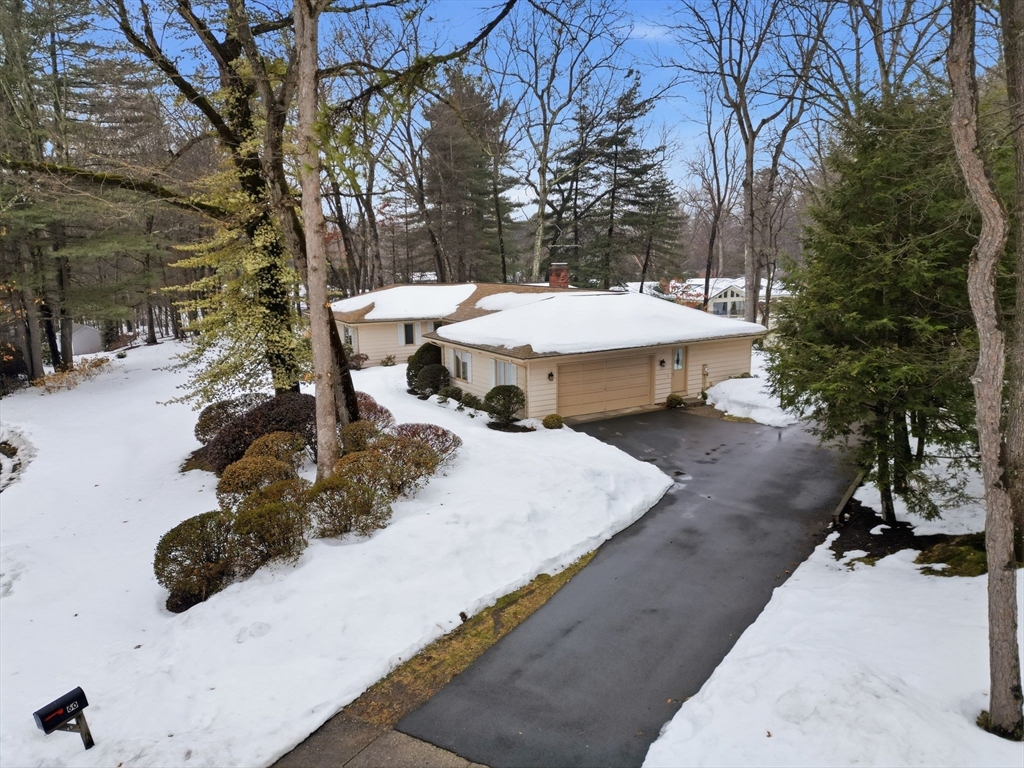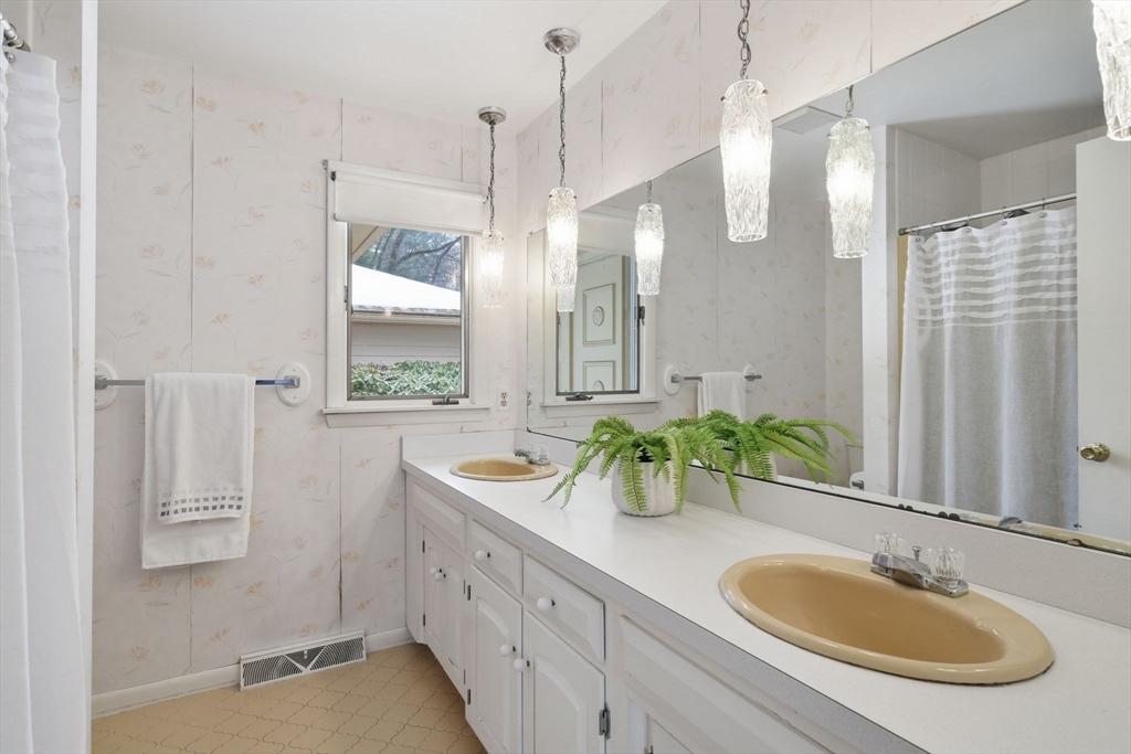 Prime executive ranch offers timeless appeal on a large private lot at the end of a peaceful cul-de-sac. In a neighborhood w/fabulous range of property values, its ample footprint & versatile floorplan provide loads of value & endless potential w/cosmetic updates. Wide front foyer welcomes you w/sight lines to living room & wood-floored dining room. Generous family room is the heart of the home, featuring a brick fireplace, built-in bookcases, large picture window & slider framing backyard views. Kitchen boasts substantial footprint for your vision. Adjacent mudroom/laundry handles daily life w/double closet, powder room & access to 2-car attached garage. Bedroom wing includes 4 bedrooms sharing ample full bath. Oversized primary suite offers loads of closets & full bath ripe for luxurious renovations. Finished lower level offers over 2000 sq.ft. including rec room, home office, 3/4 bath plus unfinished storage. Solid bones, great flow, large lot-the perfect canvas for your dream home.