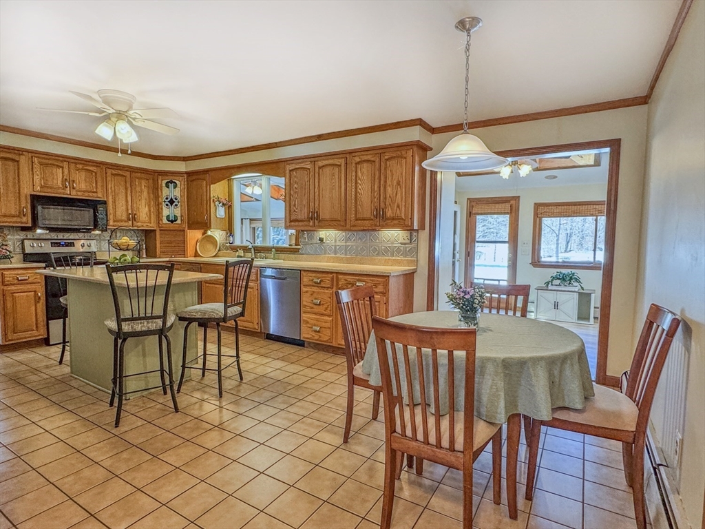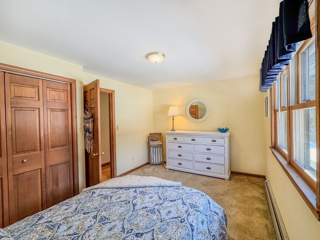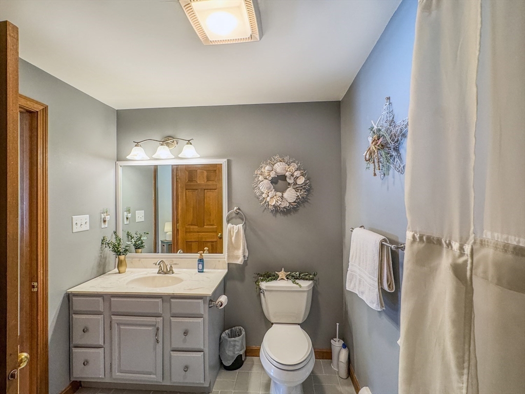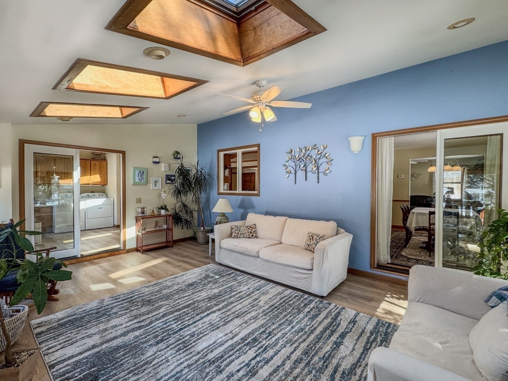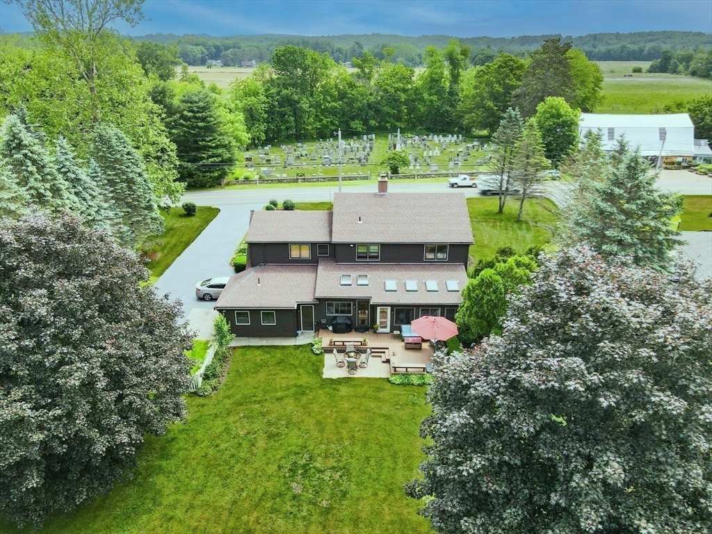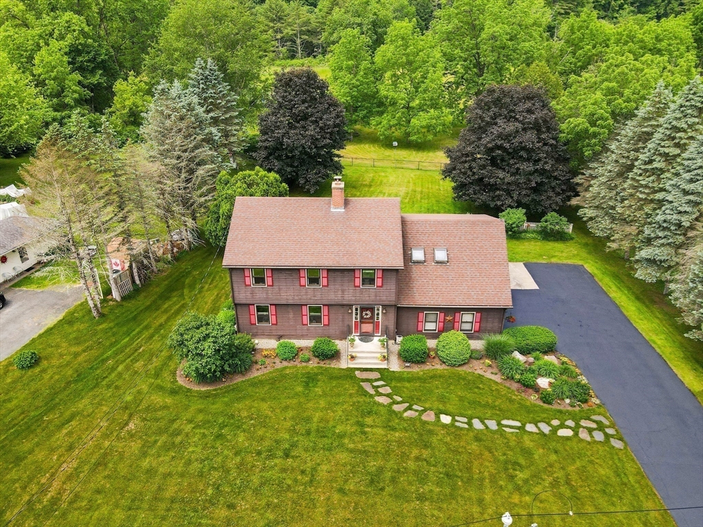 Spring is on the way-offering the perfect opportunity to enjoy the beautifully landscaped grounds surrounding this gracious Colonial in the desirable Meadows neighborhood of Greenfield. A welcoming foyer opens to a bright living room with hardwood floors and a pellet stove, flowing into the dining room and a well-appointed kitchen with center island, abundant cabinetry, and dining area. A conveniently located first-floor bath and laundry add to the thoughtful layout. The home’s centerpiece is the sun-filled, sunken family room with vaulted ceilings, multiple skylights, and expansive windows overlooking the fenced backyard and open farmland beyond, with direct access to an expansive deck and patio ideal for outdoor entertaining and relaxation.The upper level features a generously sized primary bedroom with private bath, two additional bedrooms, and versatile space ideal for a family room, office, or studio. Ideally located less than two miles from the I-91 and Rte 2 Rotary in Greenfield