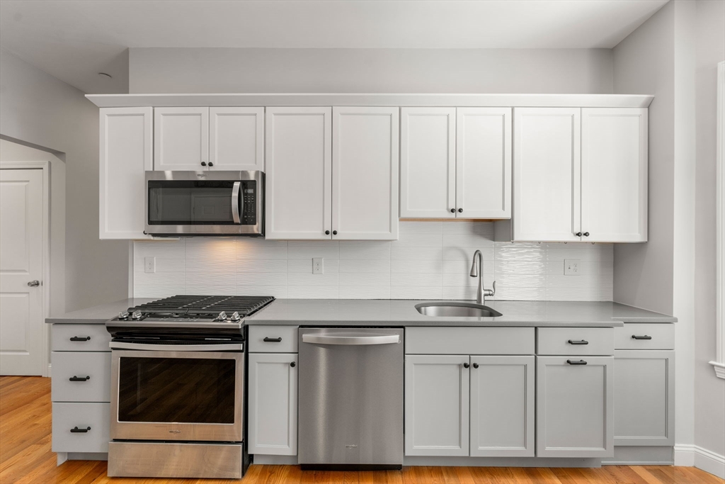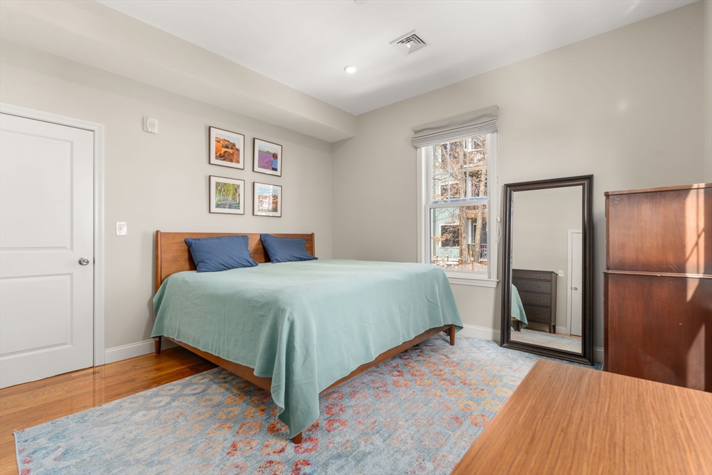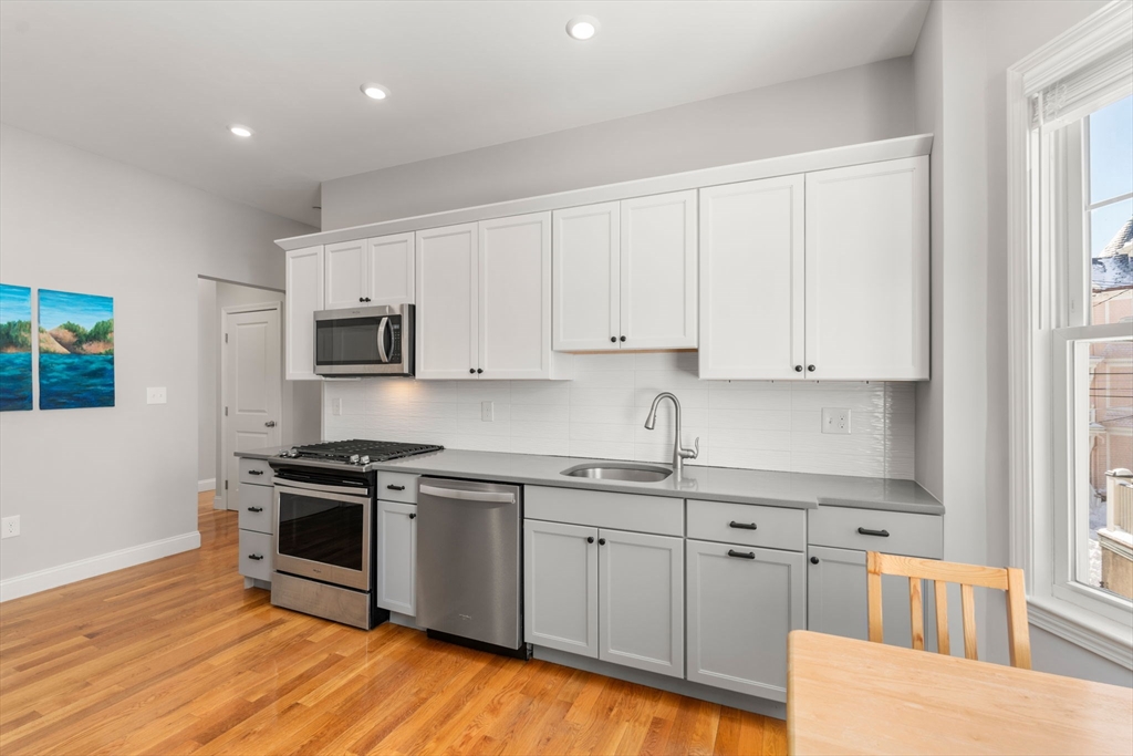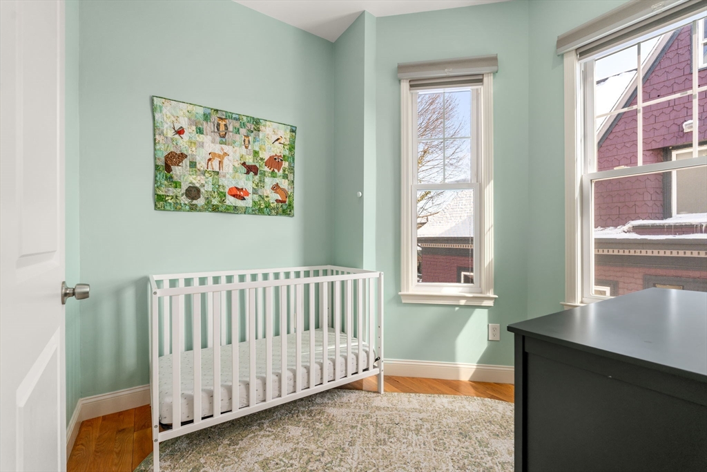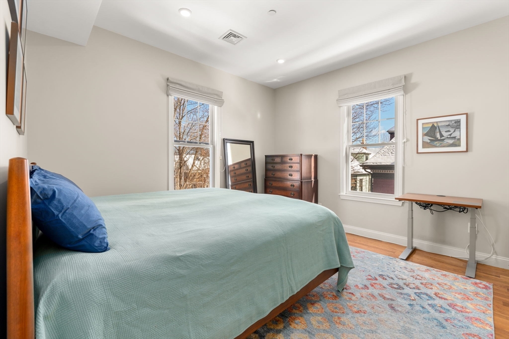 Thoughtfully designed and impeccably finished, this residence offers exceptional flexibility in a convenient Jamaica Plain location. Featuring two full bedrooms plus a dedicated office or nursery, along with one full and one half bath, the home provides a well-balanced single-level layout with generous room sizes and hardwood flooring throughout. The open living and dining areas create an inviting setting for entertaining or comfortable everyday living. The kitchen is equipped with stainless steel appliances including a range, dishwasher, microwave, and refrigerator, complemented by gas cooking and the convenience of in-unit laundry. Central air conditioning and forced hot air heating ensure year-round comfort. Additional highlights include a private porch, one off-street parking space, basement storage, and a well-maintained, owner-managed three-unit association with a $286 monthly condo fee. Ideally located just two blocks from the Orange Line and Southwest Corridor Park.