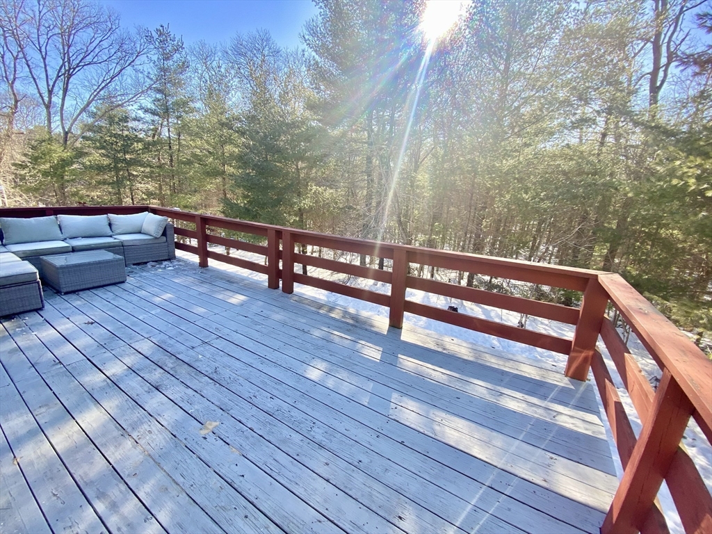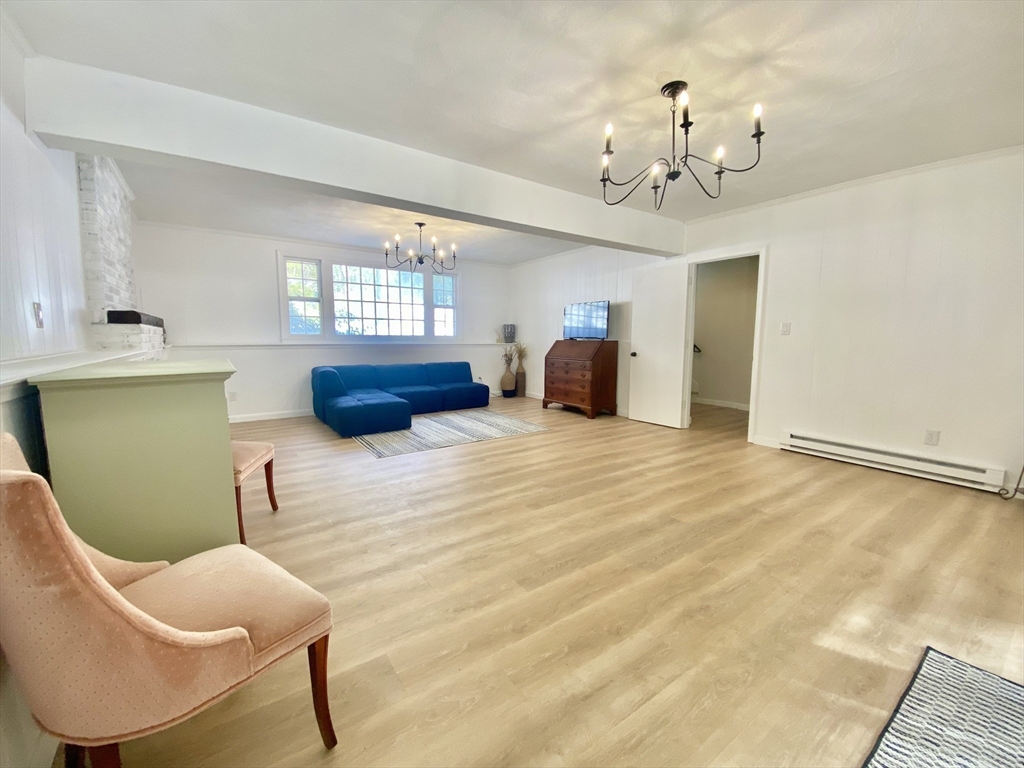Welcome to 15 Thatcher Road, a beautifully renovated raised ranch set on a private lot in the highly desirable Plymouth Estates Association. The main level features a bright open floor plan with a brand new kitchen offering white cabinetry, quartz countertops, and stainless steel appliances. The spacious living room flows into the dining area, which features sliders leading to the back deck. The primary bedroom offers a newly renovated 3/4 bath, while 2 additional bedrooms share an updated full bath with a tiled tub. New red oak hardwood flooring runs throughout the main level. Downstairs features a massive family room with 8' ceilings, fireplace and sliders to a backyard patio, a large laundry room with access to the two car garage, a bonus room perfect for an office, and a renovated half bath. The lower level has new luxury vinyl plank flooring throughout. Enjoy access to the association’s private beach on Long Pond, plus close proximity to golf, restaurants, shops, and The Pinehills