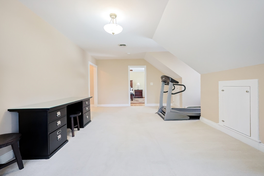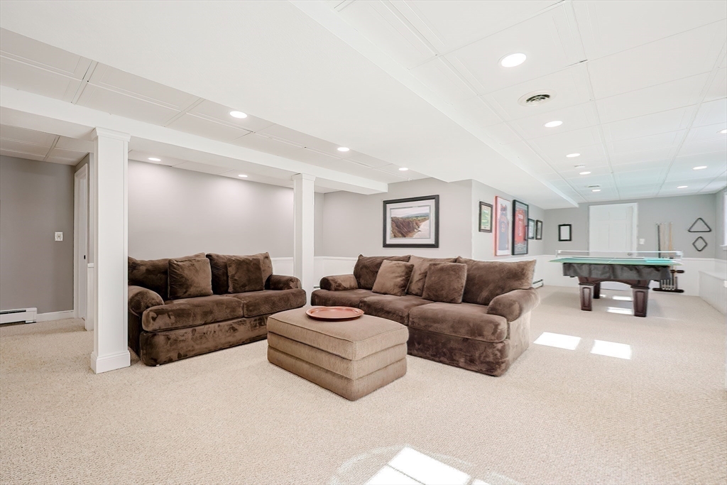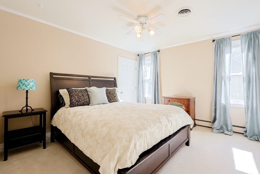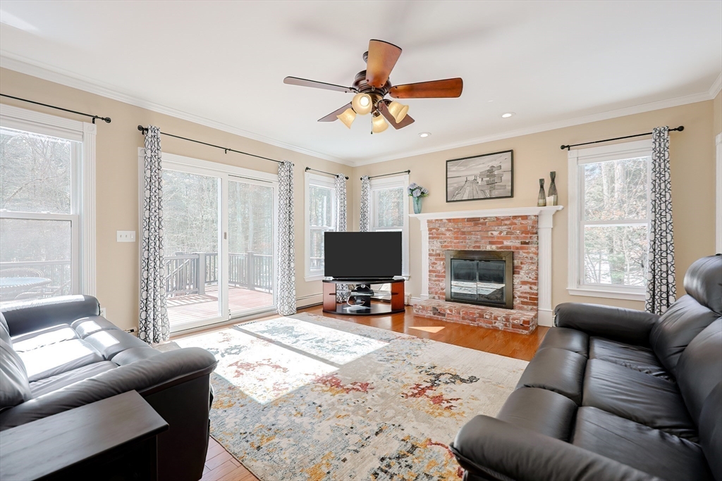 Beautifully maintained 4+ bedroom home set back from the street in charming Witch Pond Estates. This spacious property offers three finished levels plus a walk-up attic and numerous updates (see detailed list). Perfect for entertaining! The kitchen features a large island, pantry, breakfast nook in a walkout bay, double ovens, and opens to a fireplaced (gas) family room with a slider to a huge deck overlooking the brick patio & fenced backyard. An oversized dining room is ideal for hosting holidays, while the formal living room includes a wood-burning fireplace. A private first-floor office adds convenience. Upstairs offers three bedrooms plus a primary suite with private bath, two walk-in closets, and a bonus room for crafts, exercise, or more. The second floor also includes a library with stairs to the walk-up attic. The finished lower level features a private bath, guest room, and large game room. Charming front porch and beautifully landscaped yard with a playhouse out back!