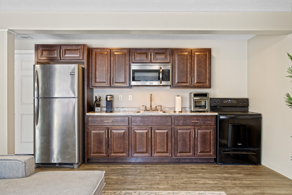 Built in 2017 & designed for easy living, this beautiful ranch-style home offers all the bells and whistles in a thoughtfully designed layout. The main level features an open-concept living room, dining area, & kitchen, perfect for everyday living & entertaining. Sliders lead to a low-maintenance deck overlooking more than a third of a fenced-in acre, providing great outdoor space to relax or play. Two generously sized bedrooms, a full bath, & convenient laundry complete the true one-level living experience. The finished lower level offers a fully equipped in-law apartment with a living & kitchen combination, sliders to the yard & patio, a spacious bedroom, & another full bath. With two dedicated living spaces, this home is ideal for multi-generational living & offers flexibility that is hard to find. Additional features include a one-car attached garage, extra storage in the basement, & easy access to local highways, shopping, & dining. Don't miss this GEM! See you at the Open House!