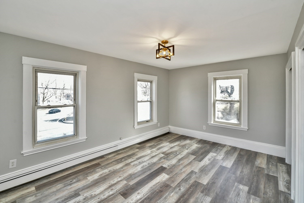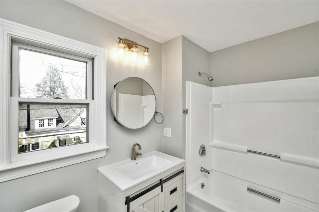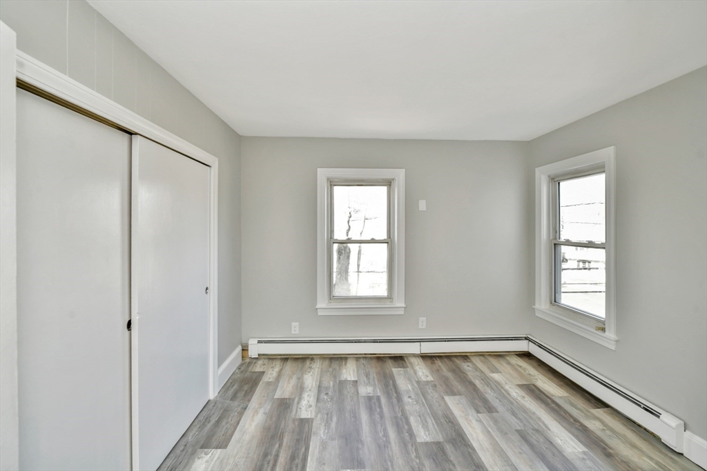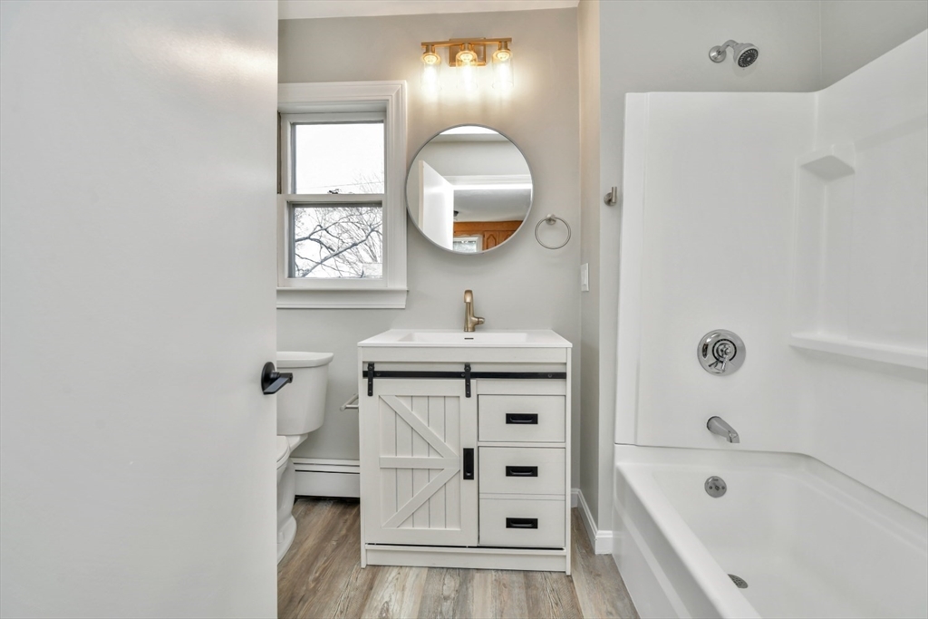 Updated 2 bedroom 1 bath apartment in Weymouth Landing neighborhood. Tastefully remodeled. Newer laminate flooring. Contemporary paint. Modern light fixtures and recessed lighting throughout. Open floor layout. Sun drenched living space. Primary bedroom features double closets. Gas cooking. Ample counterspace and cabinets. Stainless steel refrigerator installed. Gorgeous bathroom boasting beautiful vanity with washer and dryer appliances. So much value! Off street parking. Fenced yard space. No smoking. Small dogs only (under 25lbs.). *Photos taken prior to current occupancy*