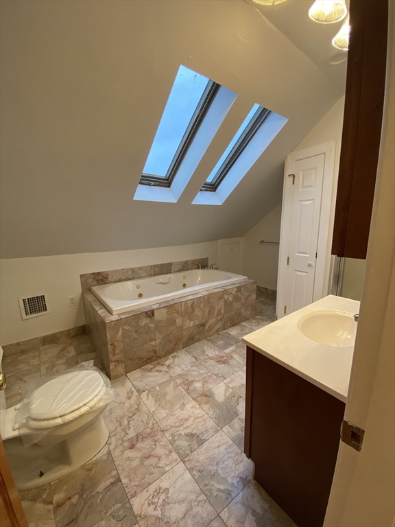 Modern and spacious 2 level 6 bedroom 3 bathroom apartment in Jamaica Plain. This top floor unit features 6 good-sized bedrooms, a large living room. Extra large kitchen with fantastic, award winning fully appliances and custom made cabinets with lights in and under. The latest with Architectural Concrete Countertops also, large island in the center of the room. Amenities galore include: gas stove, over the range built-in microwave, trash compactor, refrigerator w/ice maker, disposal. Intercom system, security system, all rooms cable ready. HVAC High efficiency gas heat/central air, Brinks Security, everything brand new. Hardwood floors, w/marble in kitchen and baths. Six-panel pine solid wood doors. Spacious, lighted closets. Dramatic lighting throughout, meticulous painting with vibrant designer colors. Commuter's dream! Close to Forest Hills Station, the Arboredum, many shops, restaurants/ bars, universities, etc.1 parking space included w/ plenty of permit parking also available.