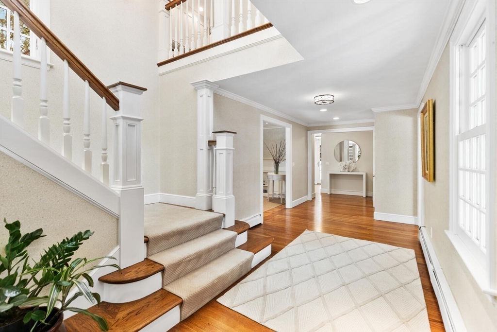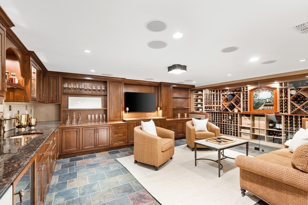 Set on a rolling country road, this extraordinary executive home showcases the highest level of living and entertaining. Every space reflects superior quality and exquisite taste. At the heart is the award-winning kitchen. Reimagined in 2021, this 27’x25’ gathering space combines dining + cooking under a glass atrium skylight. A custom 10 seat banquette and stunning quartz island set this kitchen apart. The main floor also encompasses an elegant living and family room, an office w/ built-in cabinetry, a newly remodeled primary and guest suite. Upstairs, discover 3 bedrooms and 2 full baths. The lower level houses a wine connoisseur’s tasting room w/ 1100 bottle cellar, a large gym and a play area for all. The property offers privacy with mature landscaping and everything for outdoor enjoyment: an all-weather tv, built-in grill and fire pit, hot tub, and dining for 8. Only twenty minutes from Boston, Wayland consistently rates in the top 3 best places to raise a family in MA.