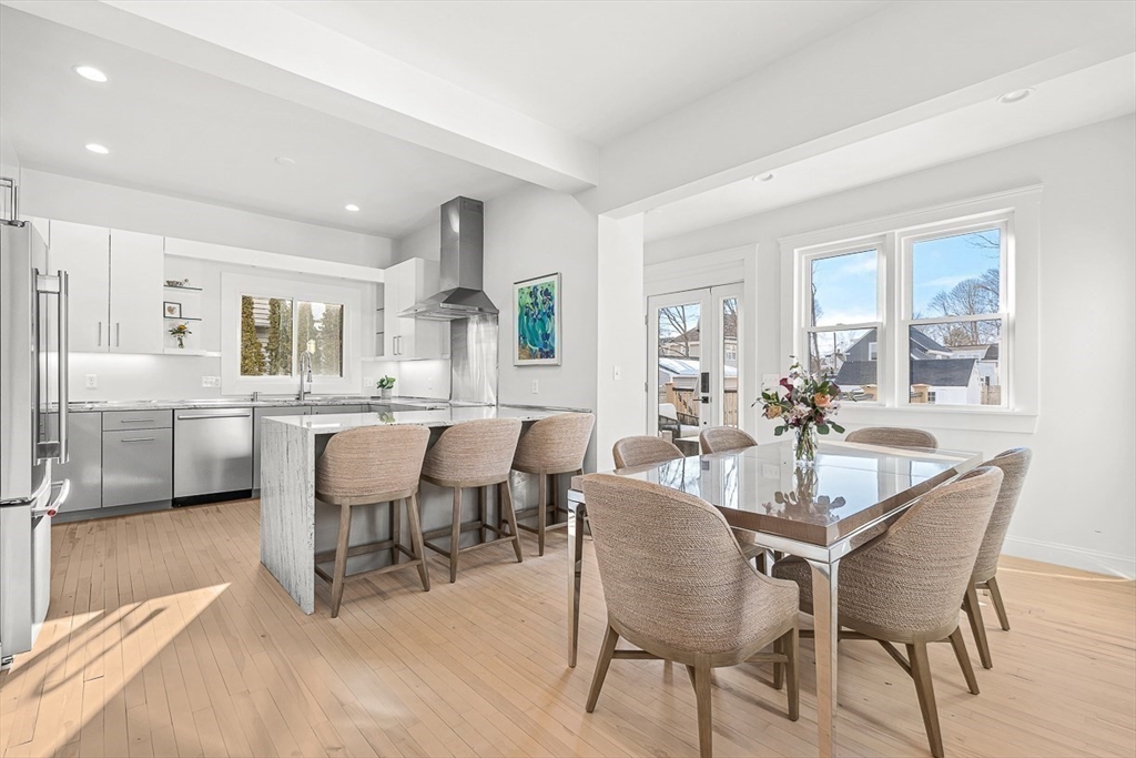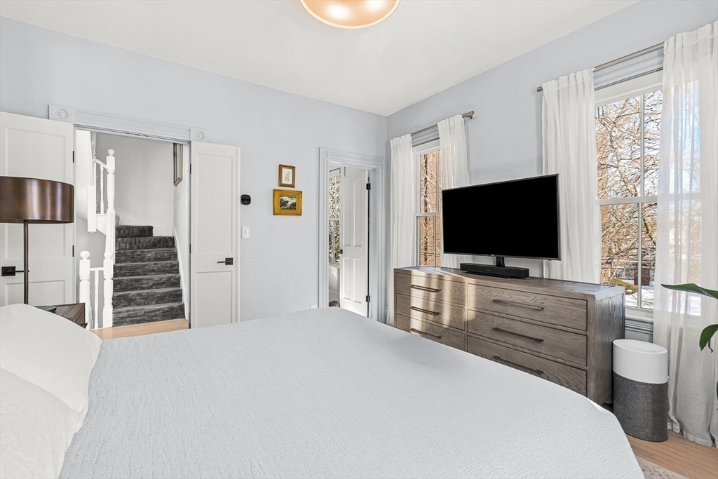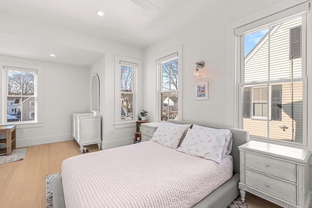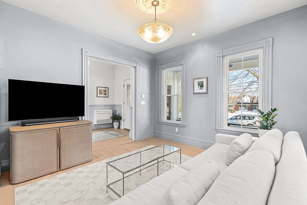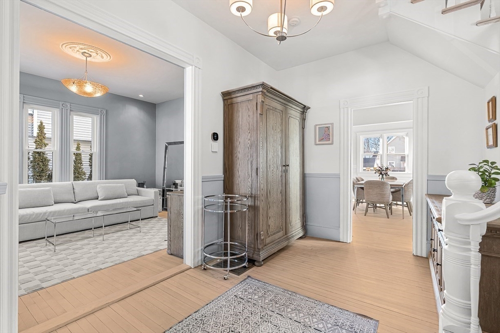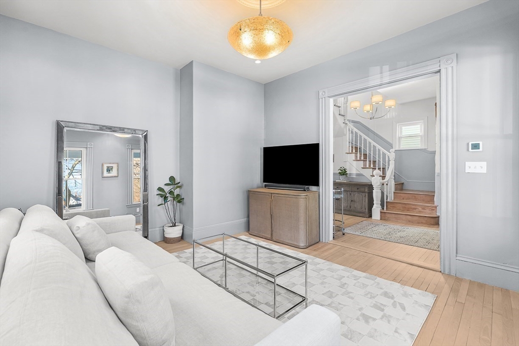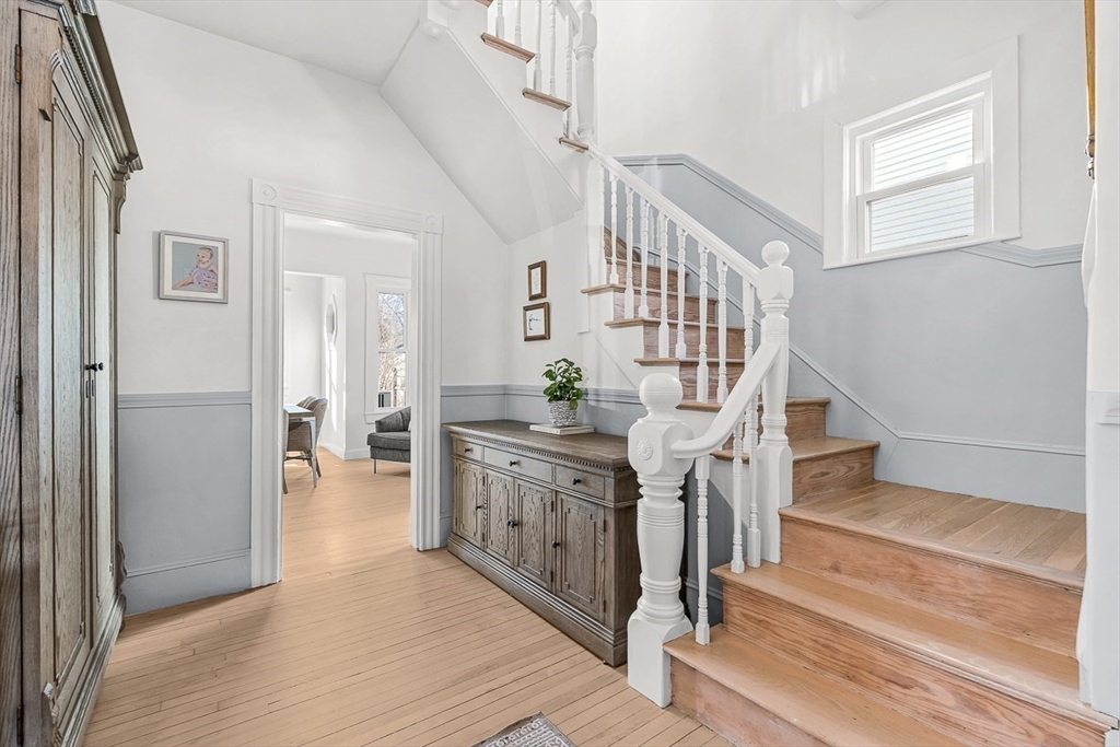 Exquisitely updated Victorian just moments from vibrant downtown Melrose, blending timeless architectural charm with sophisticated modern upgrades. This sun-drenched home features soaring ceilings, oversized updated windows, and beautifully refinished hardwood flooring throughout. The stylishly updated kitchen showcases stainless steel appliances, high-end finishes, and a thoughtful layout ideal for both everyday living and entertaining. The second level was completely redesigned and reconfigured to include two generous bedrooms, convenient second-floor laundry, and a stunning spa-inspired bath featuring a floating soaking tub, designer tile, and an oversized glass-enclosed shower. The third level offers two additional bedrooms perfect for guests, home office, or flexible living space. Outside, enjoy a rare large, flat fenced-in yard ideal for entertaining or play. Minutes to downtown shops, restaurants, parks, the commuter rail, and easy access to Route 93 for commuting into Boston!