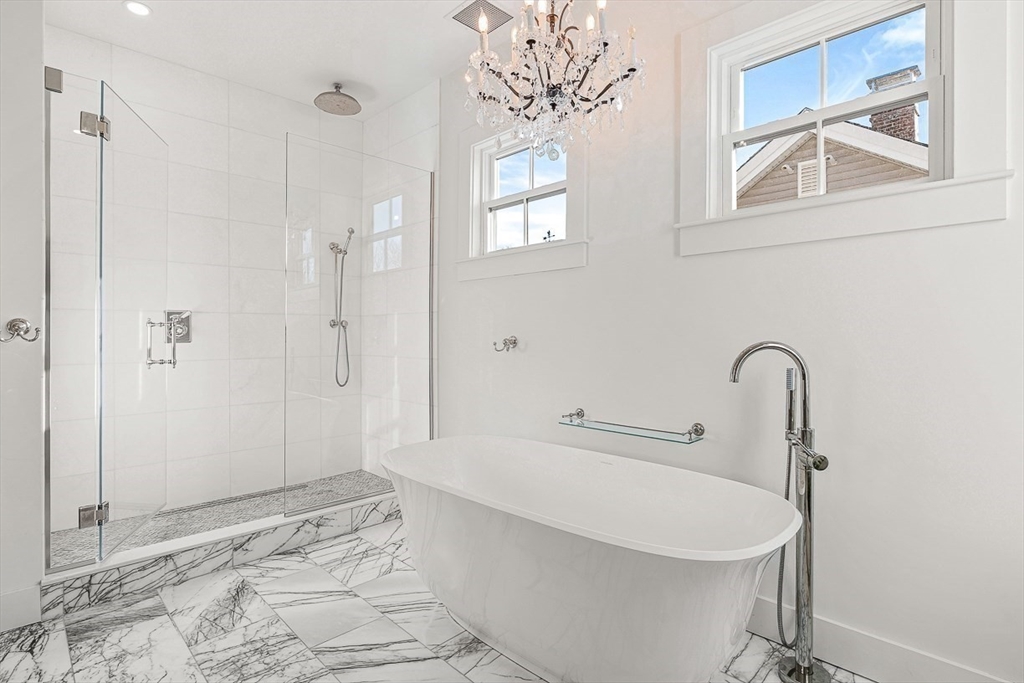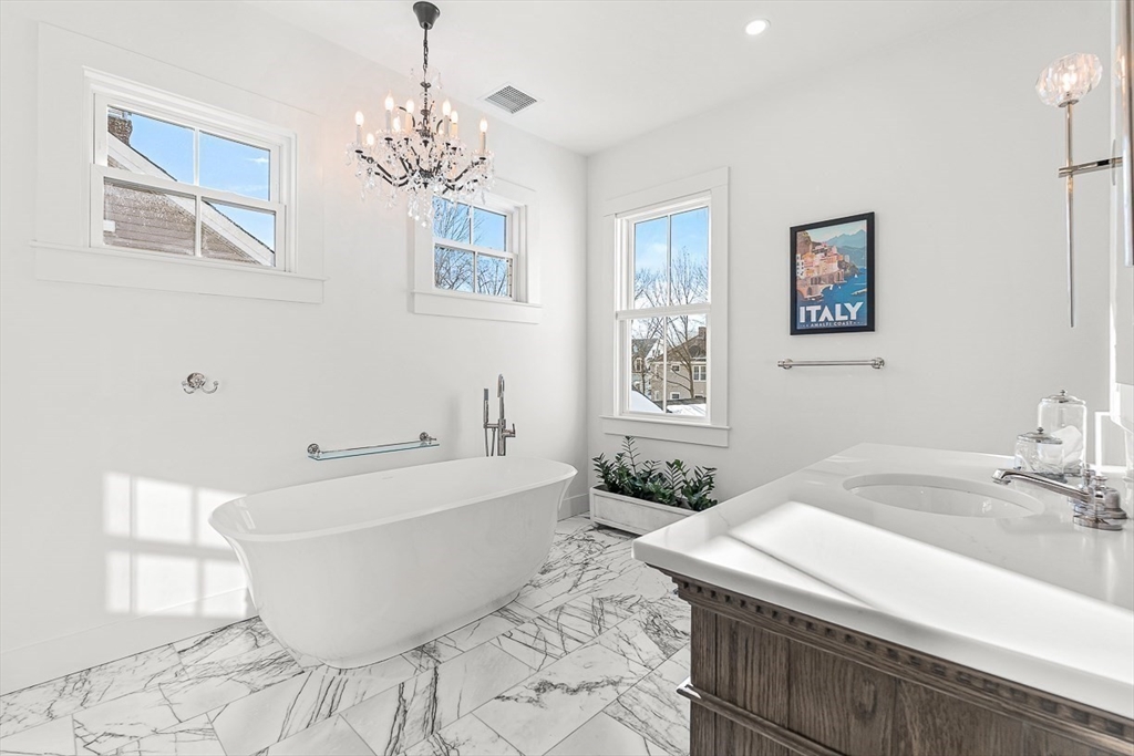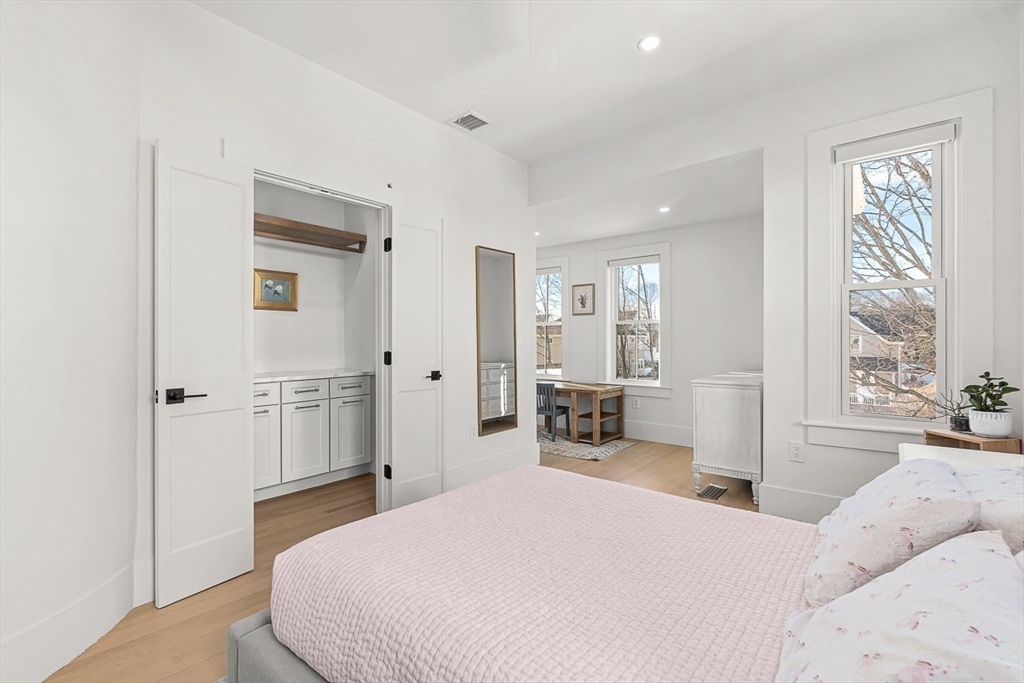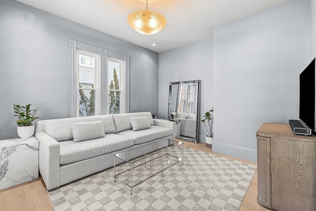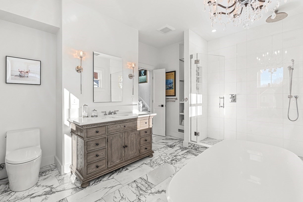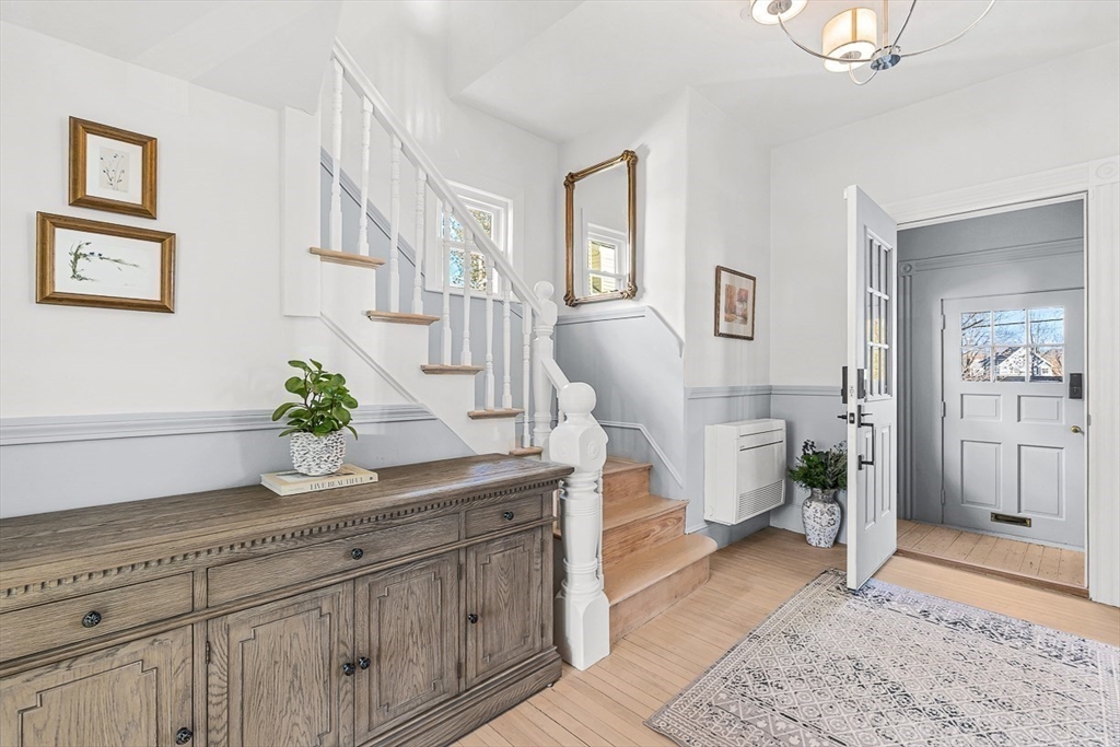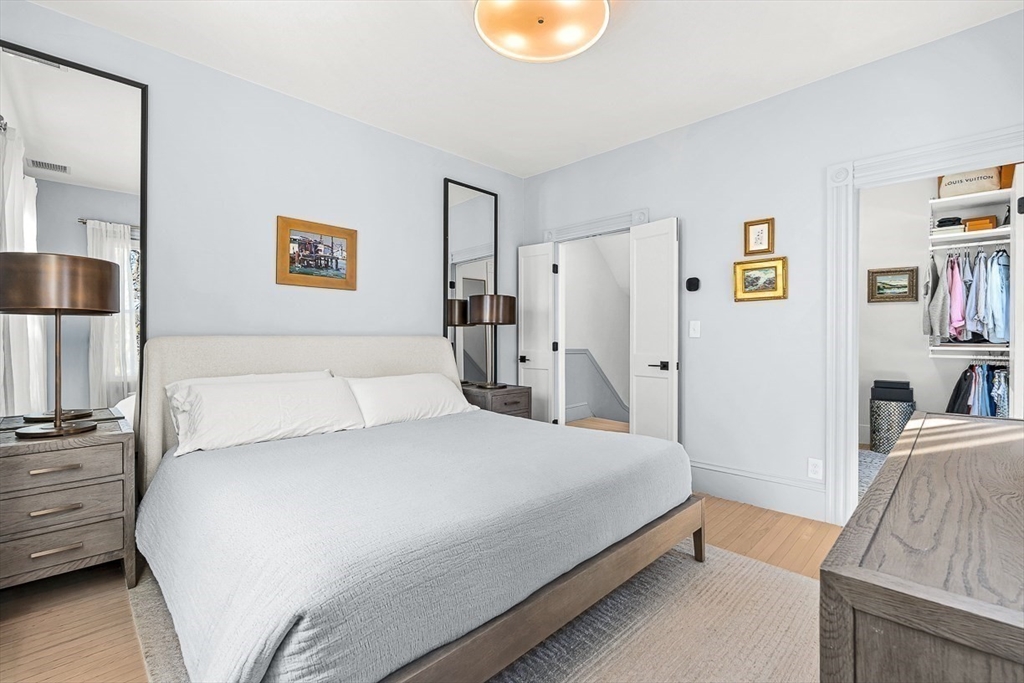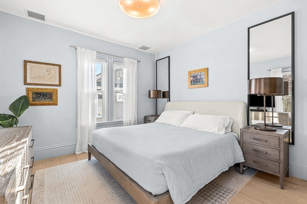 Exquisitely updated Victorian just moments from vibrant downtown Melrose, blending timeless architectural charm with sophisticated modern upgrades. This sun-drenched home features soaring ceilings, oversized updated windows, and beautifully refinished hardwood flooring throughout. The stylishly updated kitchen showcases stainless steel appliances, high-end finishes, and a thoughtful layout ideal for both everyday living and entertaining. The second level was completely redesigned and reconfigured to include two generous bedrooms, convenient second-floor laundry, and a stunning spa-inspired bath featuring a floating soaking tub, designer tile, and an oversized glass-enclosed shower. The third level offers two additional bedrooms perfect for guests, home office, or flexible living space. Outside, enjoy a rare large, flat fenced-in yard ideal for entertaining or play. Minutes to downtown shops, restaurants, parks, the commuter rail, and easy access to Route 93 for commuting into Boston!