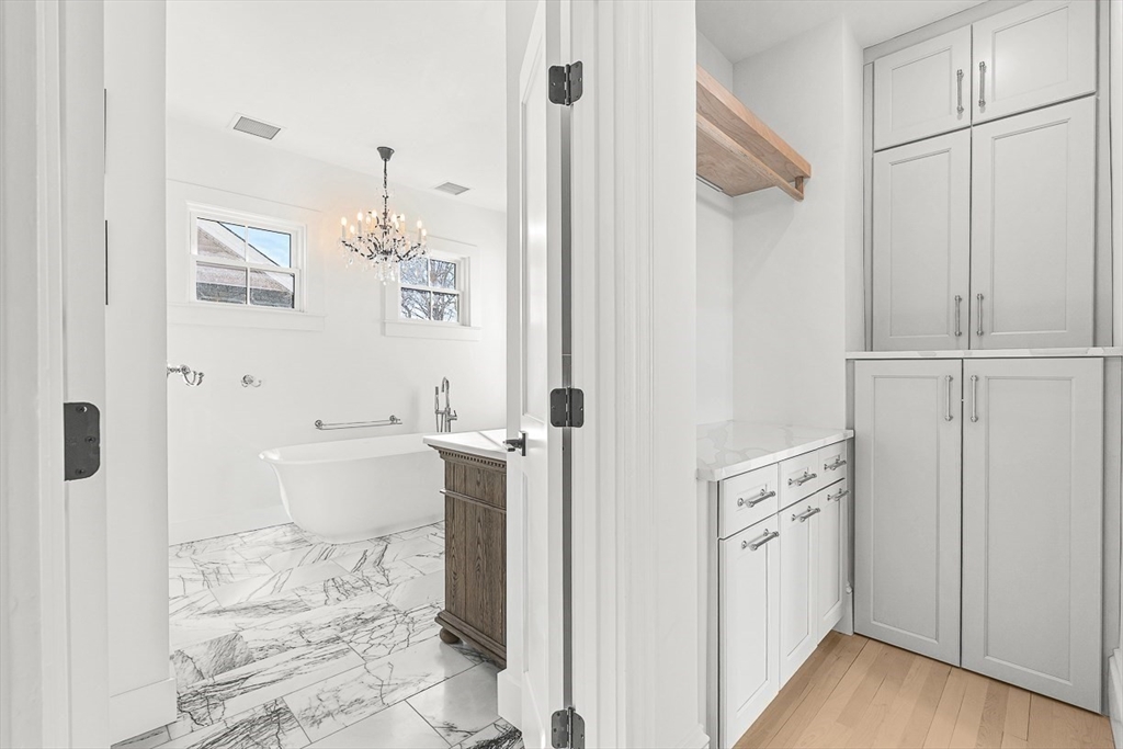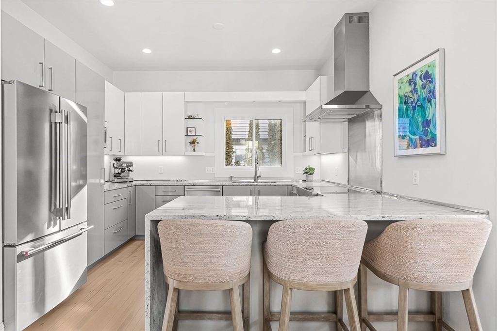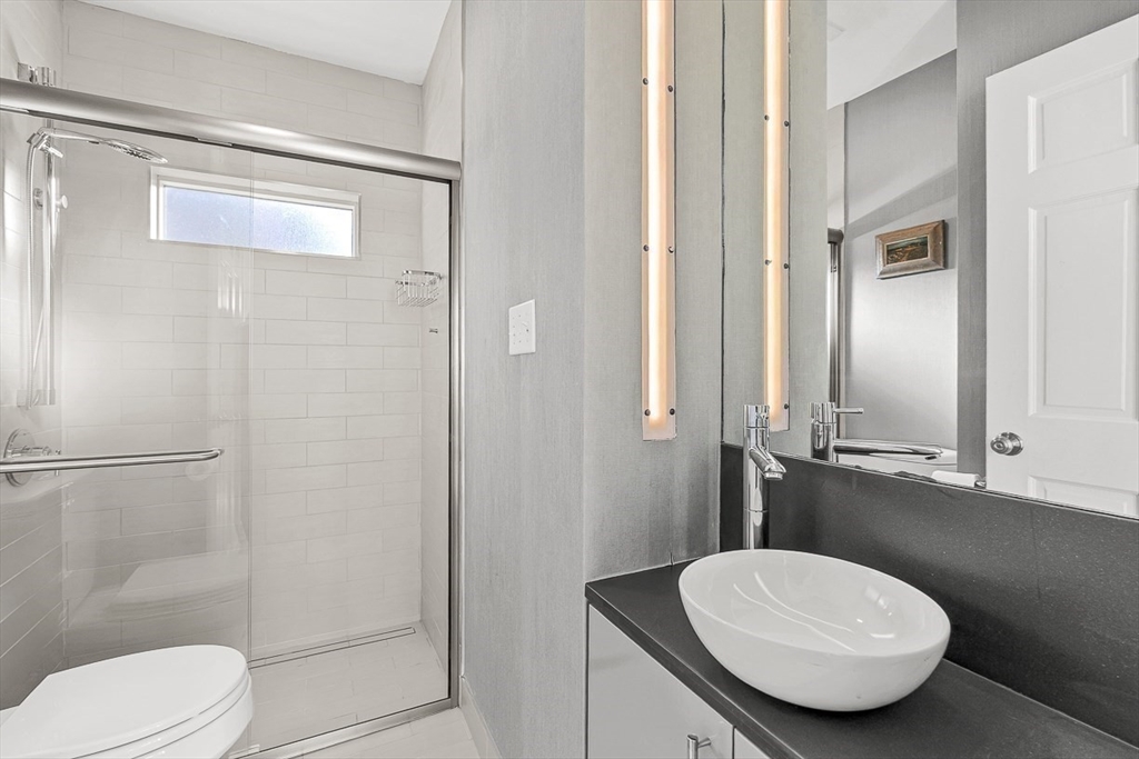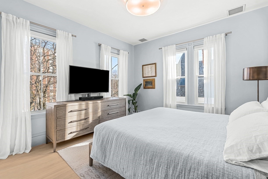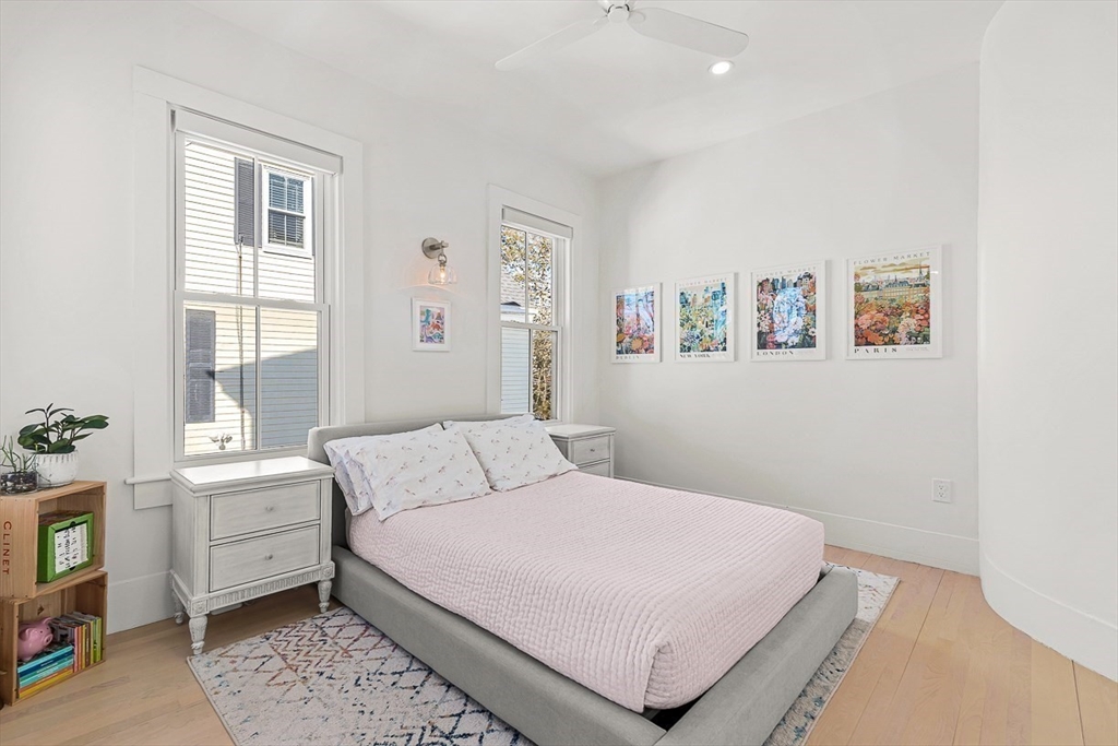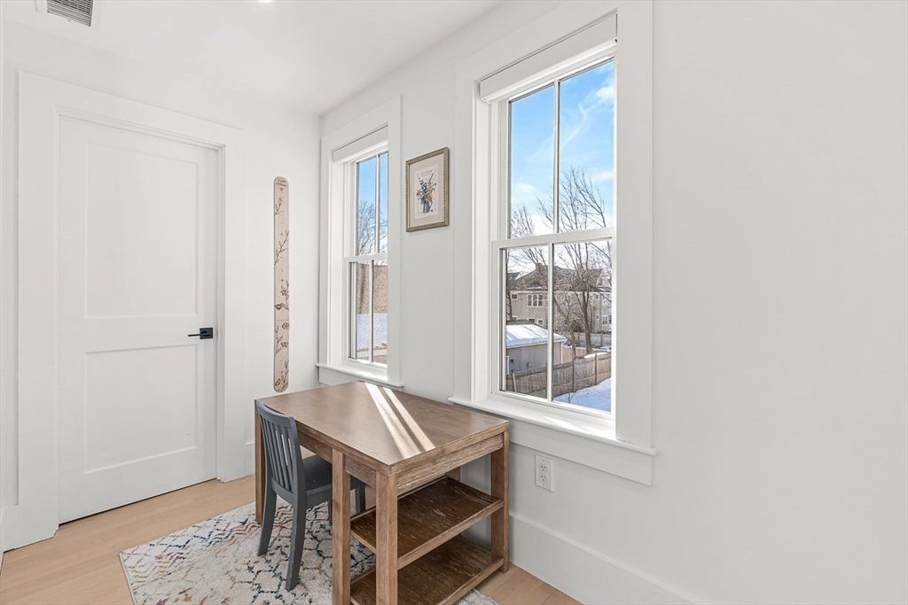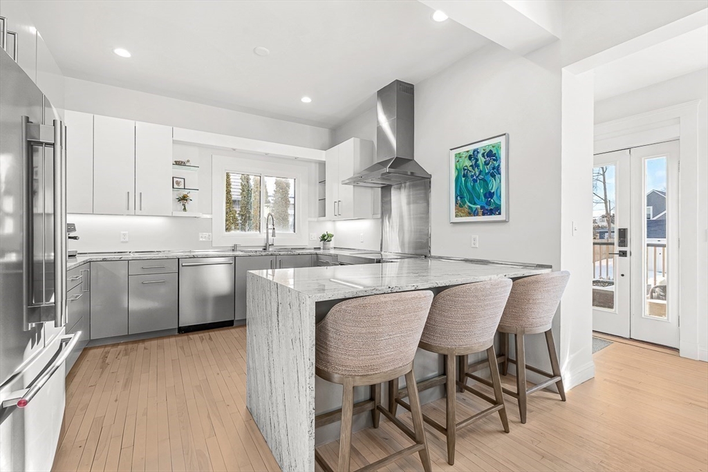 Exquisitely updated Victorian just moments from vibrant downtown Melrose, blending timeless architectural charm with sophisticated modern upgrades. This sun-drenched home features soaring ceilings, oversized updated windows, and beautifully refinished hardwood flooring throughout. The stylishly updated kitchen showcases stainless steel appliances, high-end finishes, and a thoughtful layout ideal for both everyday living and entertaining. The second level was completely redesigned and reconfigured to include two generous bedrooms, convenient second-floor laundry, and a stunning spa-inspired bath featuring a floating soaking tub, designer tile, and an oversized glass-enclosed shower. The third level offers two additional bedrooms perfect for guests, home office, or flexible living space. Outside, enjoy a rare large, flat fenced-in yard ideal for entertaining or play. Minutes to downtown shops, restaurants, parks, the commuter rail, and easy access to Route 93 for commuting into Boston!