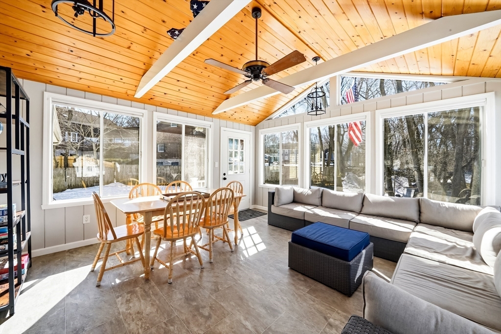 Welcome to this 4-bedroom, 2-full-bath home, perfect for those who want to be close to both the city and nature. Located less than 30 minutes from Boston and Cambridge, this home sits on an expansive cul-de-sac lot, offering a private and peaceful setting while still being just 0.5 miles from Horn Pond Recreation Area. Designed for modern living, the home features an induction range, reverse osmosis drinking water filtration, central AC with heat pump, and EV charging capacity. Enjoy year-round entertaining in the bright four-season sunroom and outdoor patio. The lower level offers a flexible fourth bedroom or home office, along with a spacious family room featuring a working wood-burning fireplace—perfect for gathering with family and friends.